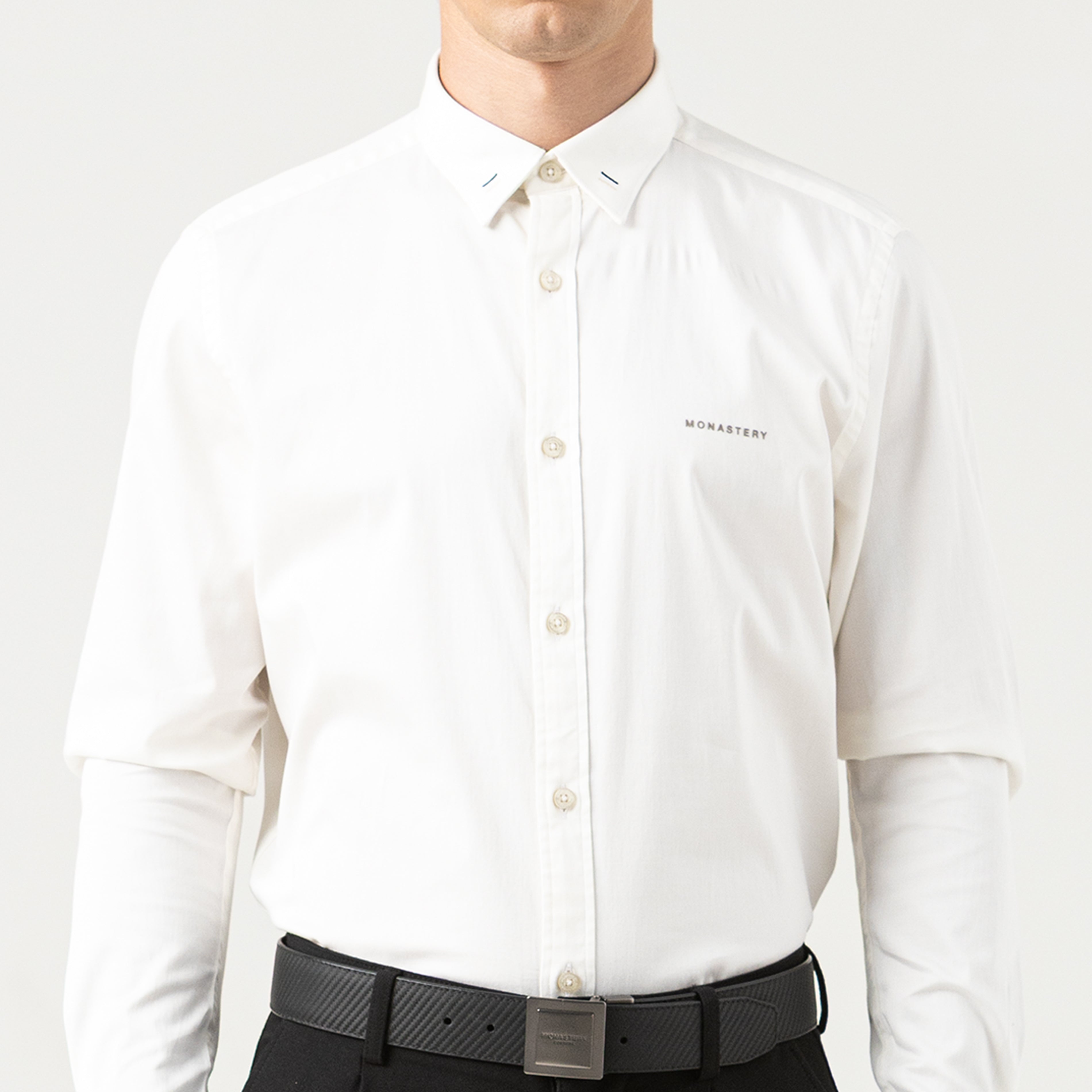 Ali is a men's long-sleeved shirt. Designed for the man who values subtle detail, the Ali shirt is made of soft cotton with elastane, providing comfort and freedom of movement. Its regular silhouette fits naturally, while the high-density print on the front and back adds a contemporary touch. Contrasting embroidered lines subtly decorate the right side of the collar, and the contrasting buttons complete this versatile garment, ideal for both formal occasions and a distinguished casual look.