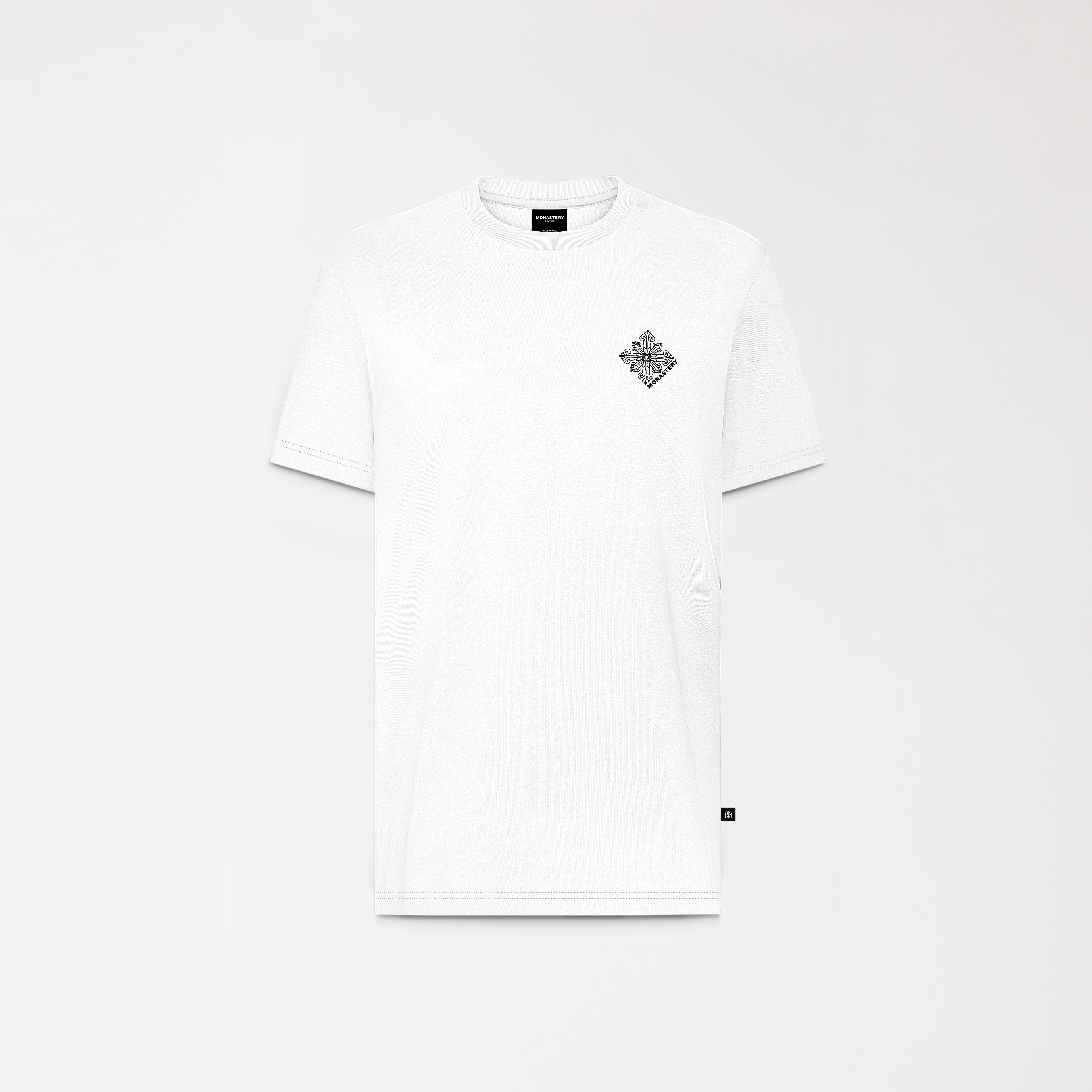 The Catterdale white t-shirt is made in a regular silhouette, made from cotton exclusive to Monastery, this t-shirt offers a soft and comfortable texture. It features a flat cross-shaped embroidery art, located in heart stitch, which provides a modern and meaningful touch. On the back, the signature arts are made in high density, providing a distinctive and elegant finish. Ideal for those looking for a unique and contemporary style.