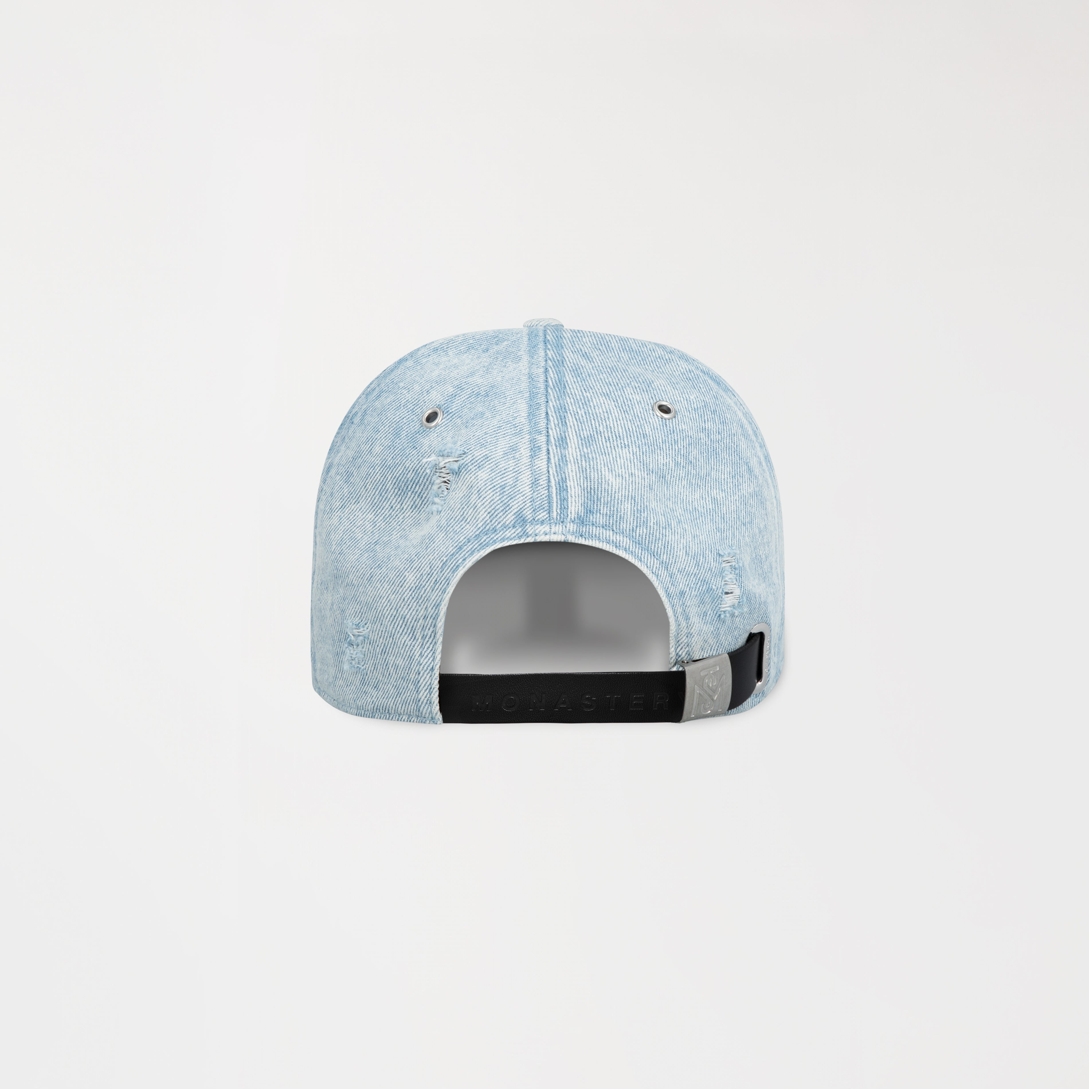 The unisex Dermot cap features a basic silhouette with an innovative approach, crafted from denim