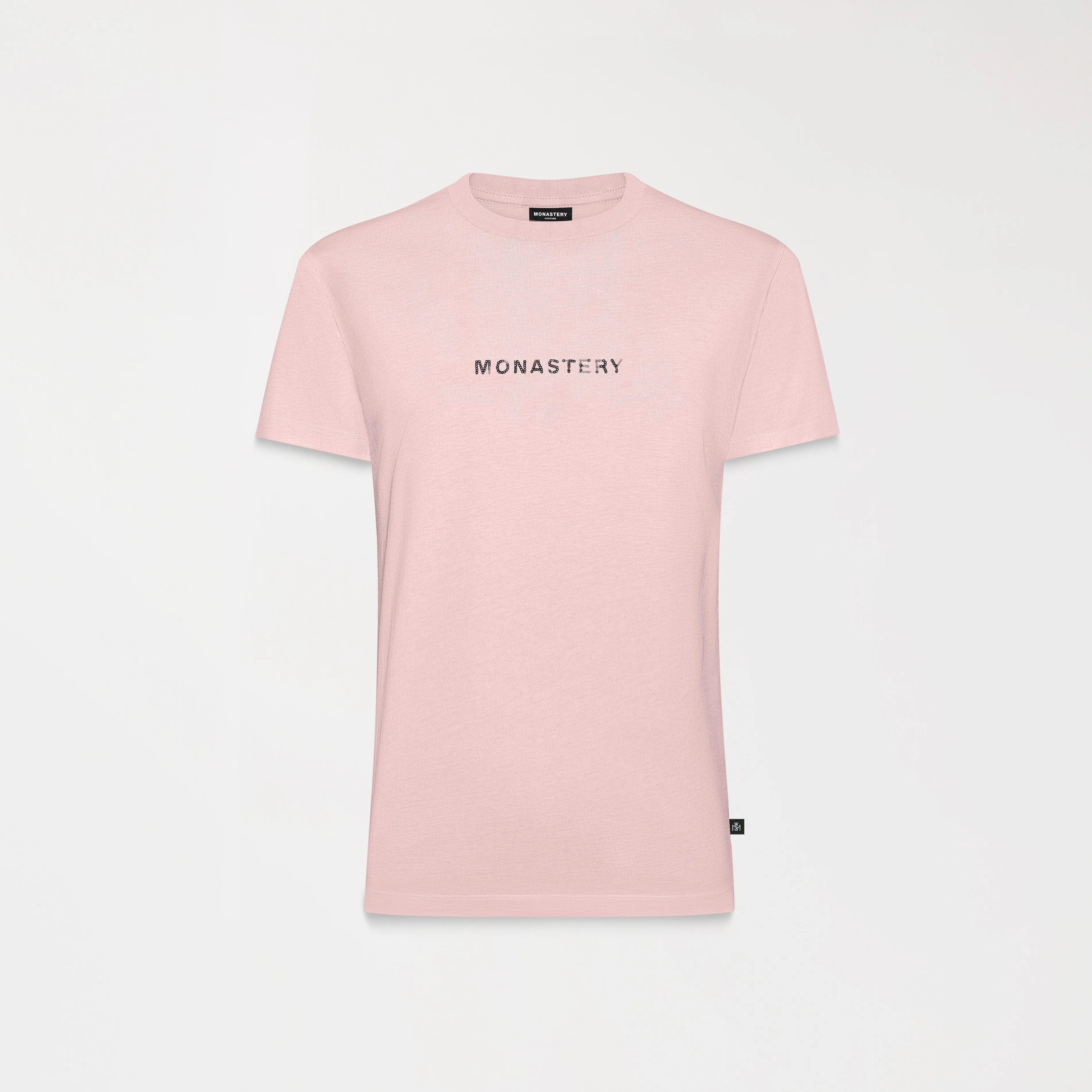 Women's t-shirt, made of premium cotton with elastane for greater comfort and freshness. This item has a fitted silhouette, highlighting the feminine figure, with artwork of our Monastery logo, using a contrasting sequin technique, giving it texture and dynamism. It is accompanied by the classic tone-on-tone logos on the back, making this item a versatile and dynamic garment, ideal for everyday wear.