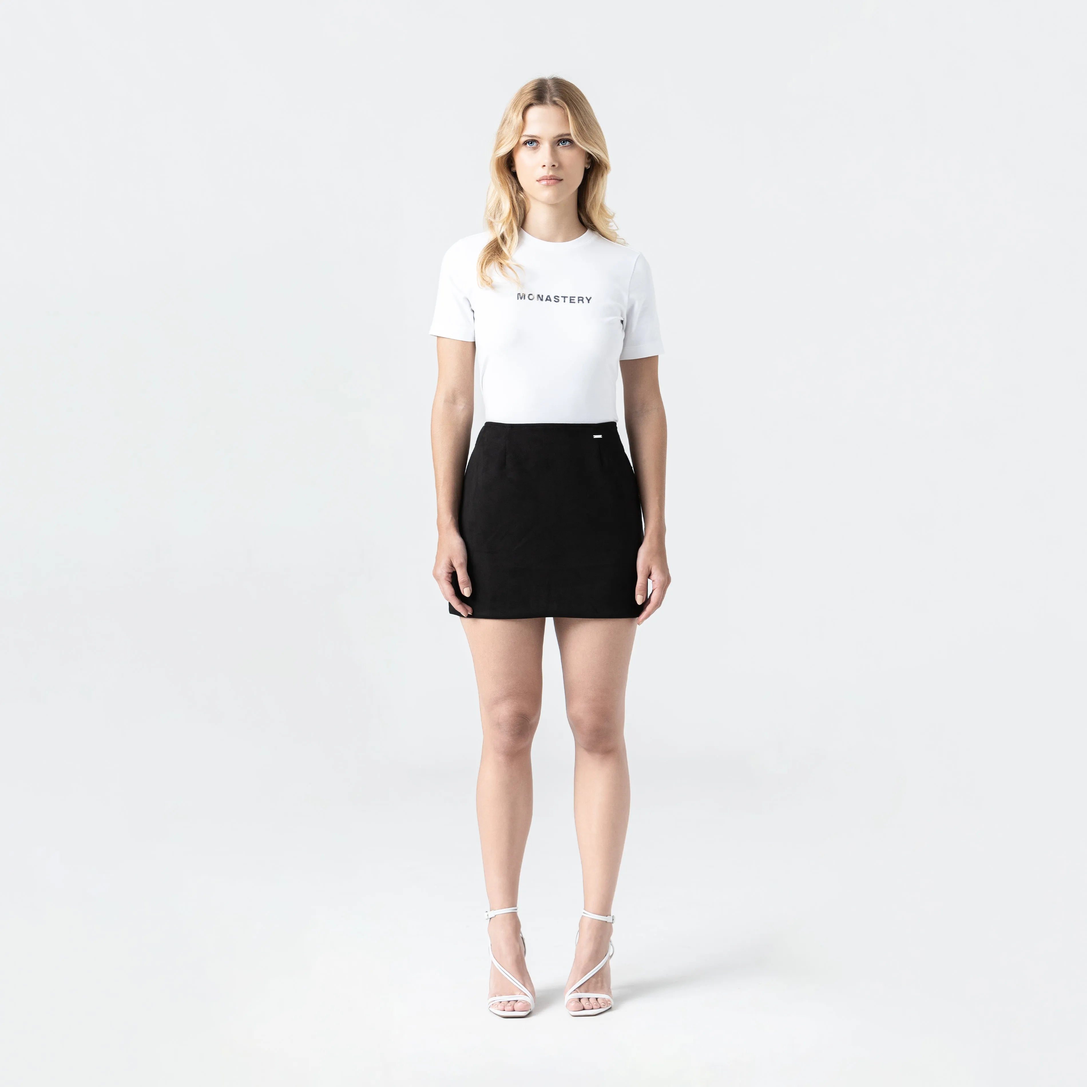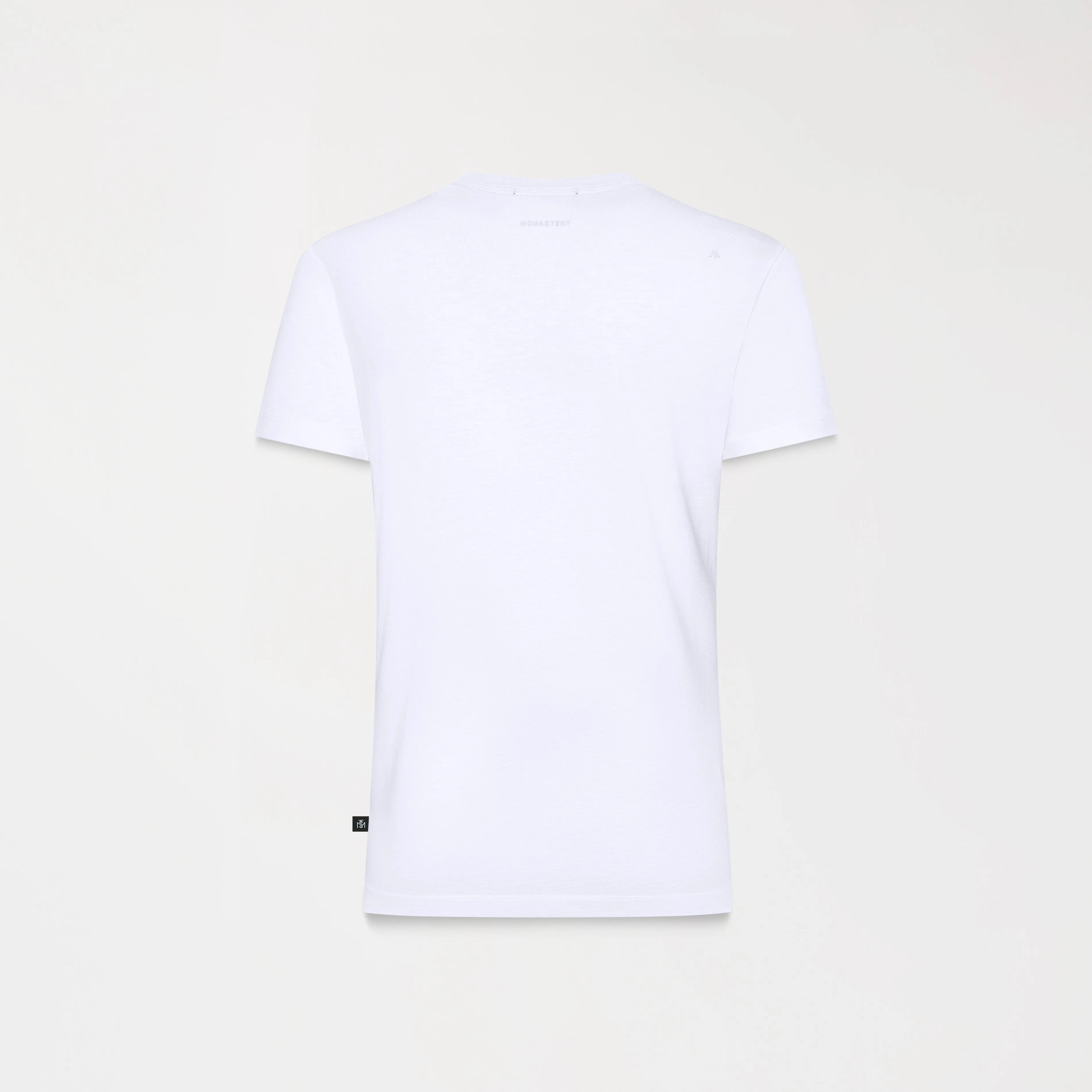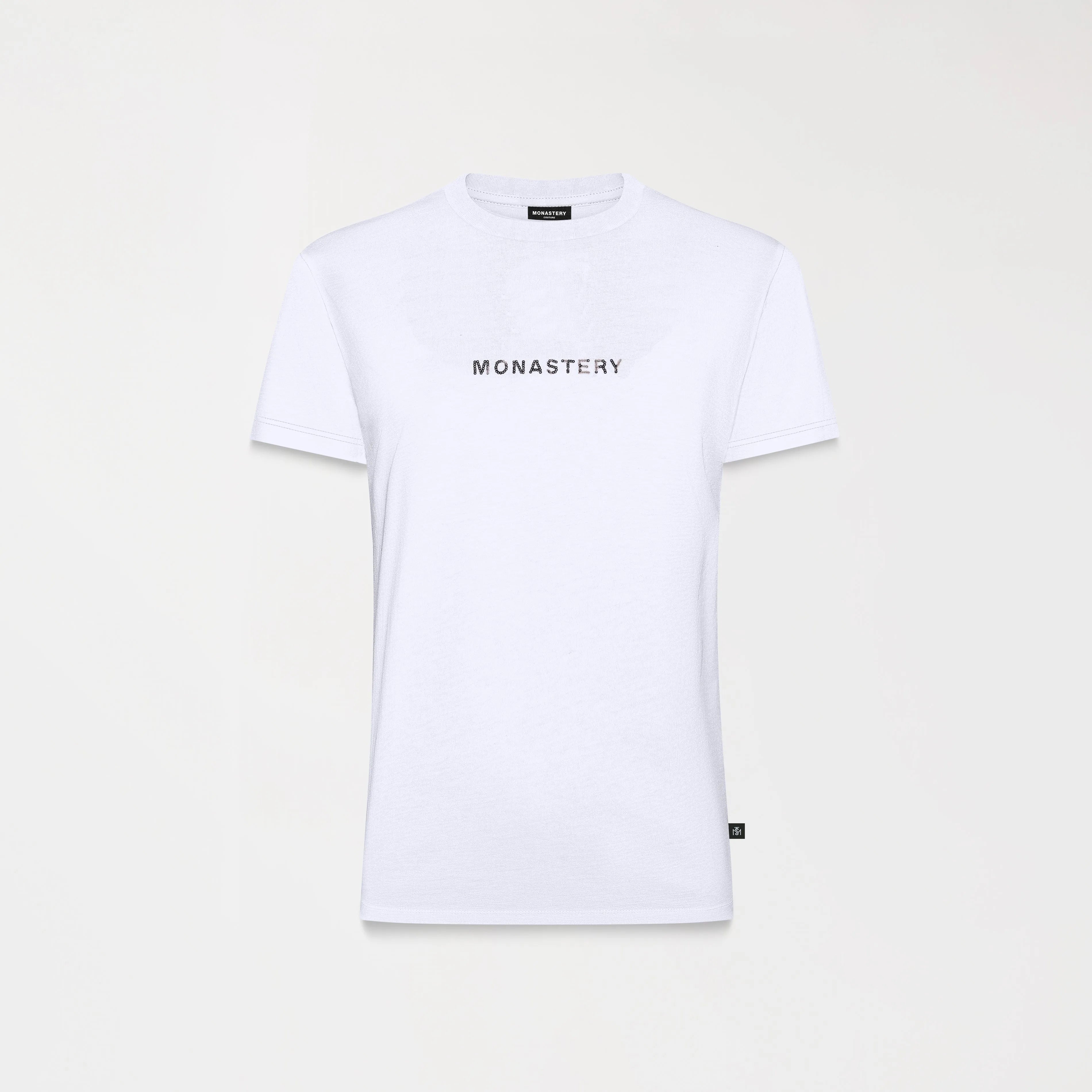 Women's t-shirt, made of premium cotton with elastane for greater comfort and freshness. This item has a fitted silhouette, highlighting the feminine figure, with artwork of our Monastery logo, using a contrasting sequin technique, giving it texture and dynamism. It is accompanied by the classic tone-on-tone logos on the back, making this item a versatile and dynamic garment, ideal for everyday wear.