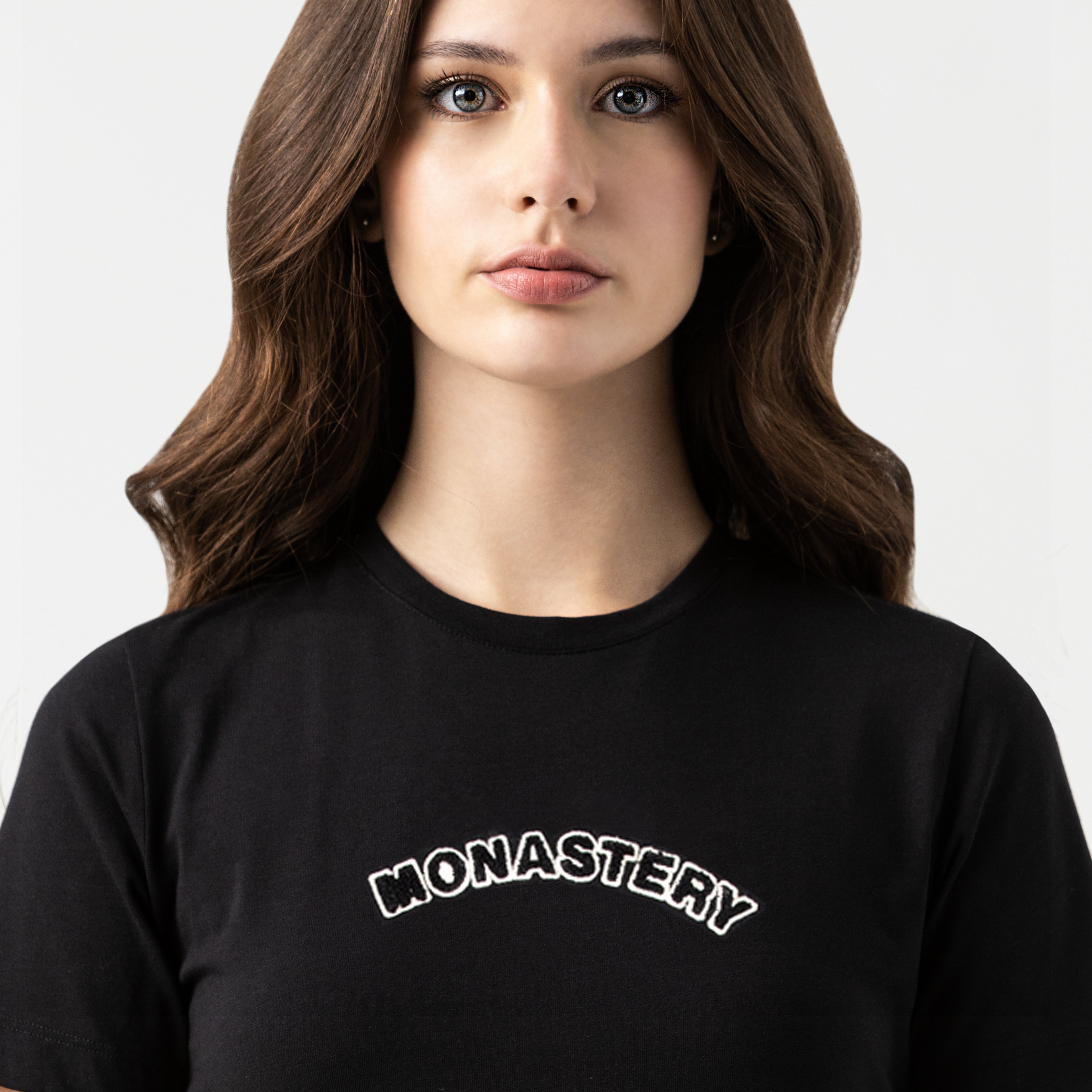 A women's T-shirt with a small silhouette, made from high-quality Peruvian cotton, designed to stand out for its style and quality in the details. The front features embroidered artwork with chenille terry filling, which provides volume, softness, and a unique textured finish. On the back, traditional logos are featured in a flat print with a pleasant touch, balancing the design with a soft and comfortable feel. Issla is a garment that combines technique, identity, and comfort in a single piece.