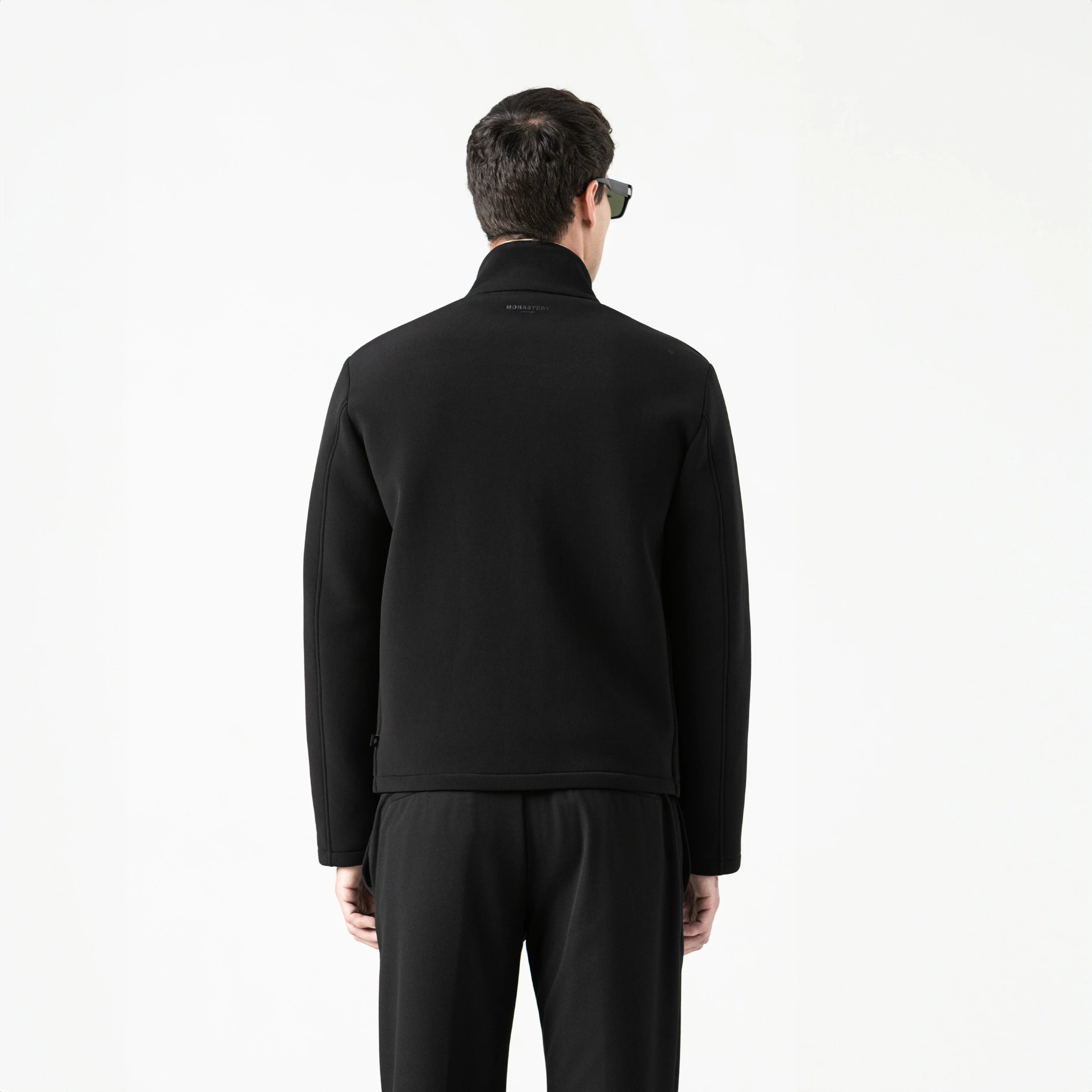 Chaqueta deportiva masculina confeccionada en base textil doble face de alta calidad, que combina funcionalidad y estilo con acabados premium. Los bolsillos frontales con botón de presión contramarcado y la cremallera separable con slider igualmente contramarcado refuerzan la identidad Monastery en cada detalle. En el frente, un aplique metálico sobre cuero aporta sofisticación y presencia, mientras que la espalda luce artes en alta densidad, creando un impacto visual gráfico que resalta carácter y distinción. Una prenda pensada para un look elegante, urbano y contemporáneo, donde cada elemento comunica estilo y actitud.