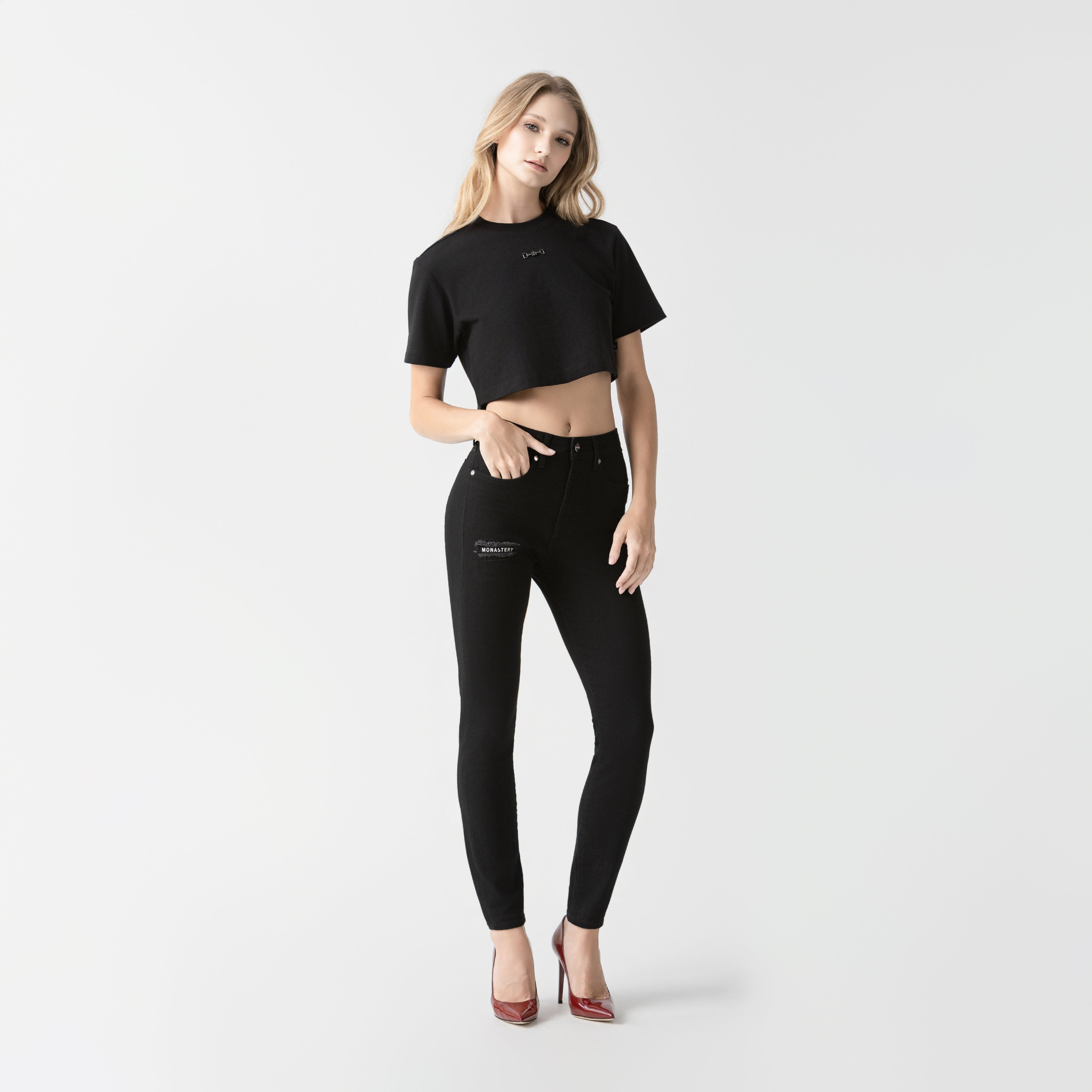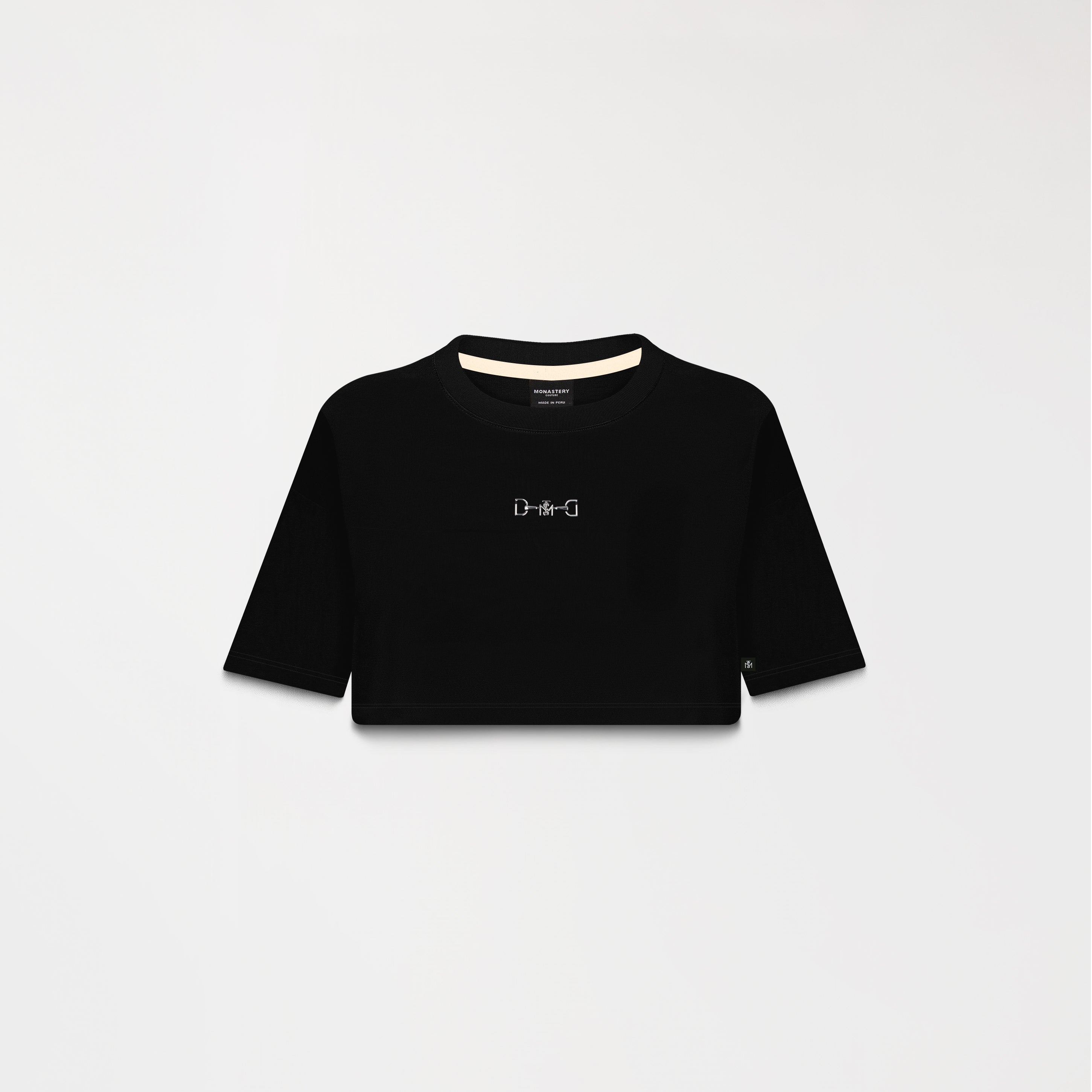Natasha es un crop top confeccionado en 100% algodón ultra siliconado de alta calidad, que ofrece suavidad, frescura y un ajuste preciso. Su silueta pequeña, disponible en dos colores, resalta la figura con elegancia. En el frente, una placa metálica aporta un acento contemporáneo alineado con el concepto de la colección, mientras que las costuras y la cimbra en tono contraste añaden un detalle visual distintivo. En la parte posterior, un estampado plano completa el diseño con equilibrio y estilo.
