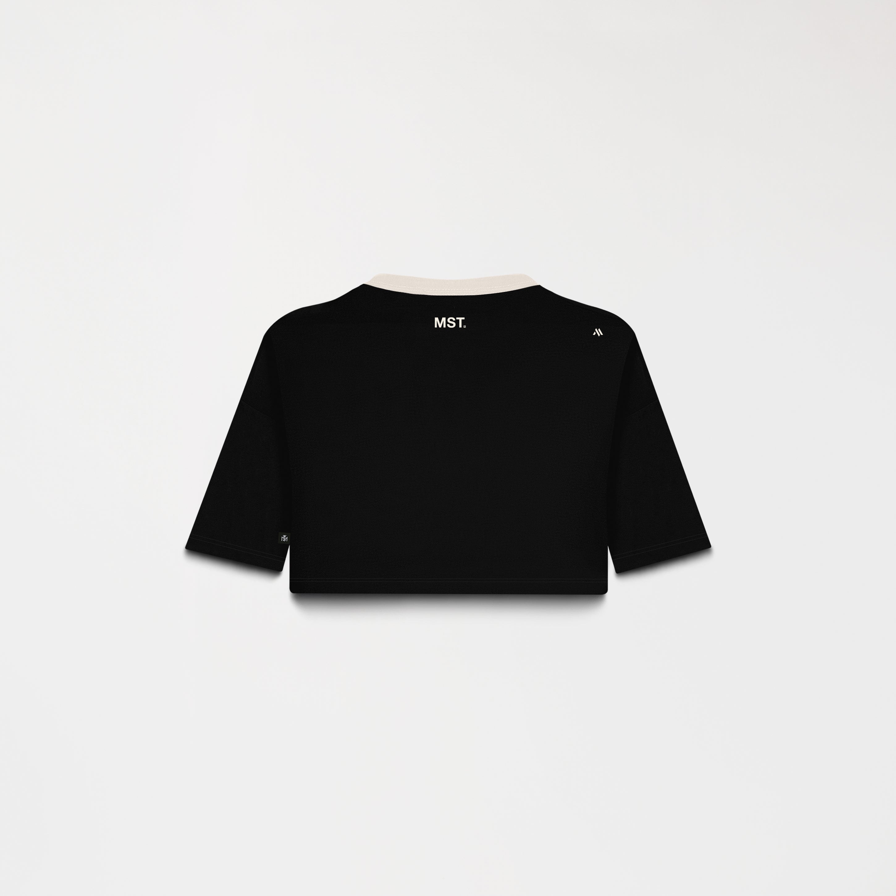 Noora is a crop top made from 100% high-quality, ultra-silicone-coated cotton, with a small silhouette designed to delicately highlight the figure. The front features appliqué embroidery that adds texture and a distinctive artisanal detail, while the back features a flat print that balances the aesthetic. A versatile piece that elevates casual outfits and integrates easily into contemporary and sophisticated styles.