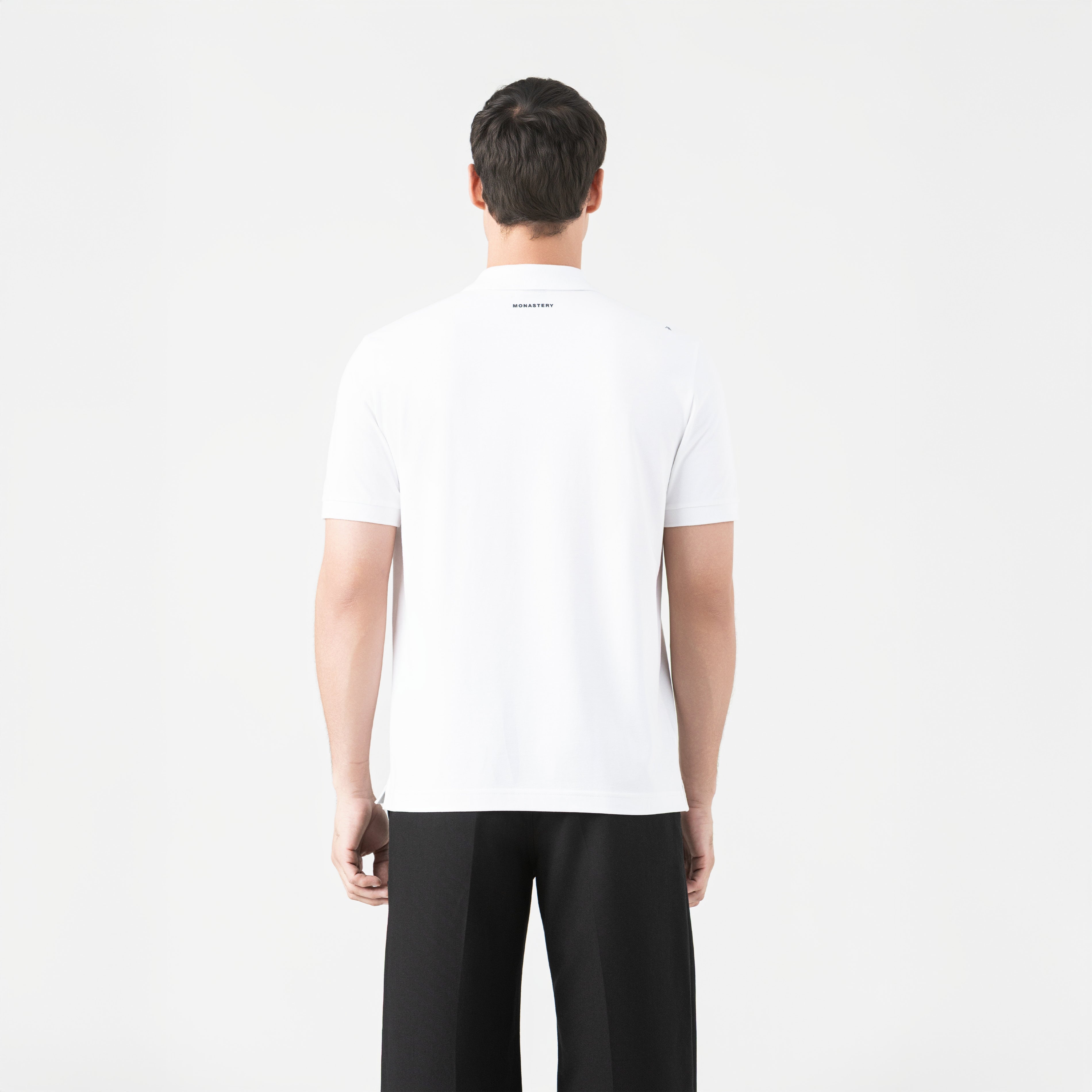 Othar is a men's polo shirt, crafted in a regular fit, from 100% Peruvian Pima cotton exclusively for Monastery. The Othar polo redefines casual elegance with a clean silhouette and high-quality details. Its knit collar and cuffs provide structure, while the hidden button placket and contrasting bias binding add a sophisticated finish. The flat embroidery on the placket and the high-density print on the back enhance its distinctive character. Perfect for those seeking style with discretion and authenticity.