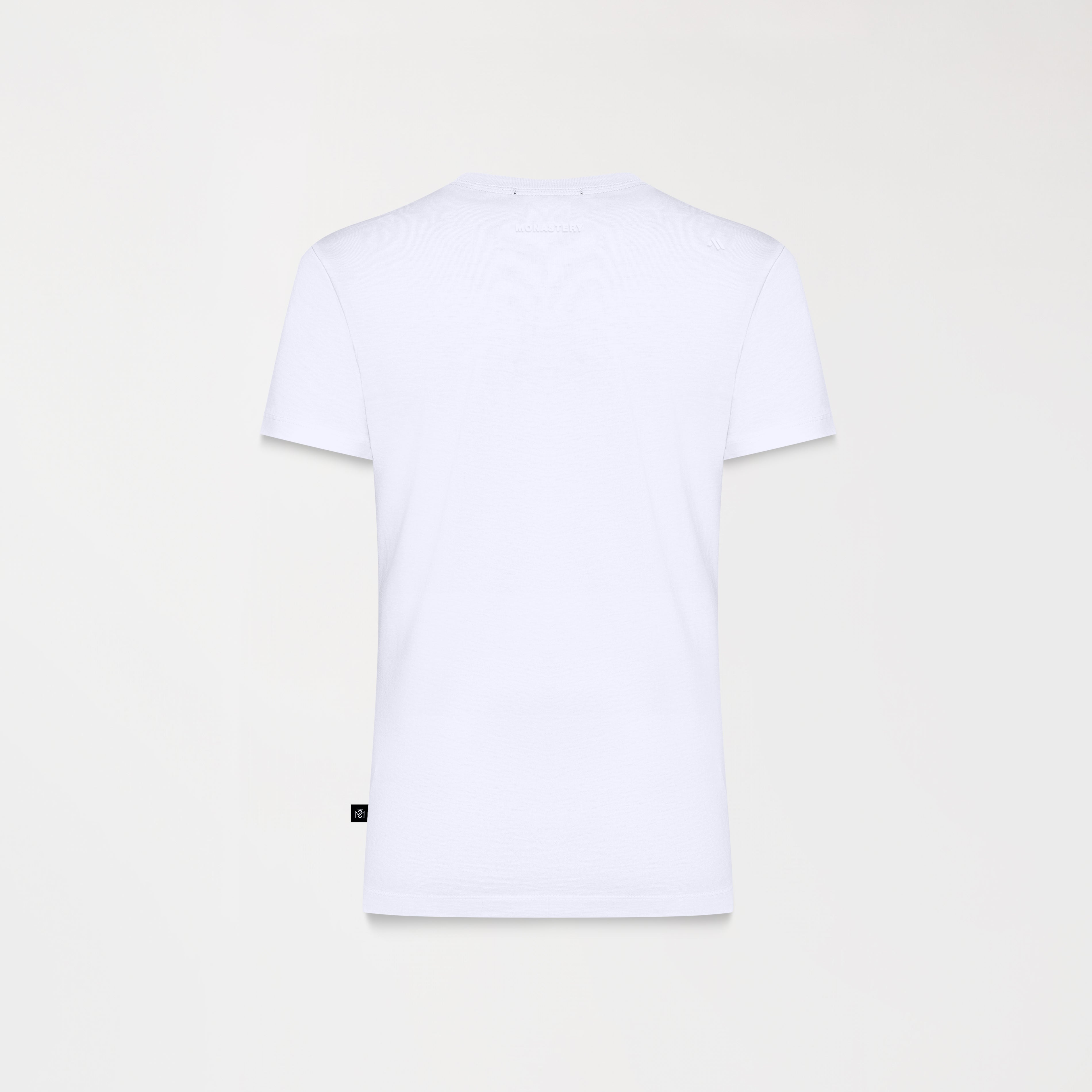 Women's T-shirt with a small silhouette, made from high-quality Peruvian cotton, designed to enhance the figure with style and originality. It features a caviar print on the front, providing texture and a sophisticated finish, while the back incorporates traditional artwork in a high-density print, creating a visual and tactile contrast that highlights its unique identity. The Saylor T-shirt is ideal for those looking for a garment with character, detail, and quality.