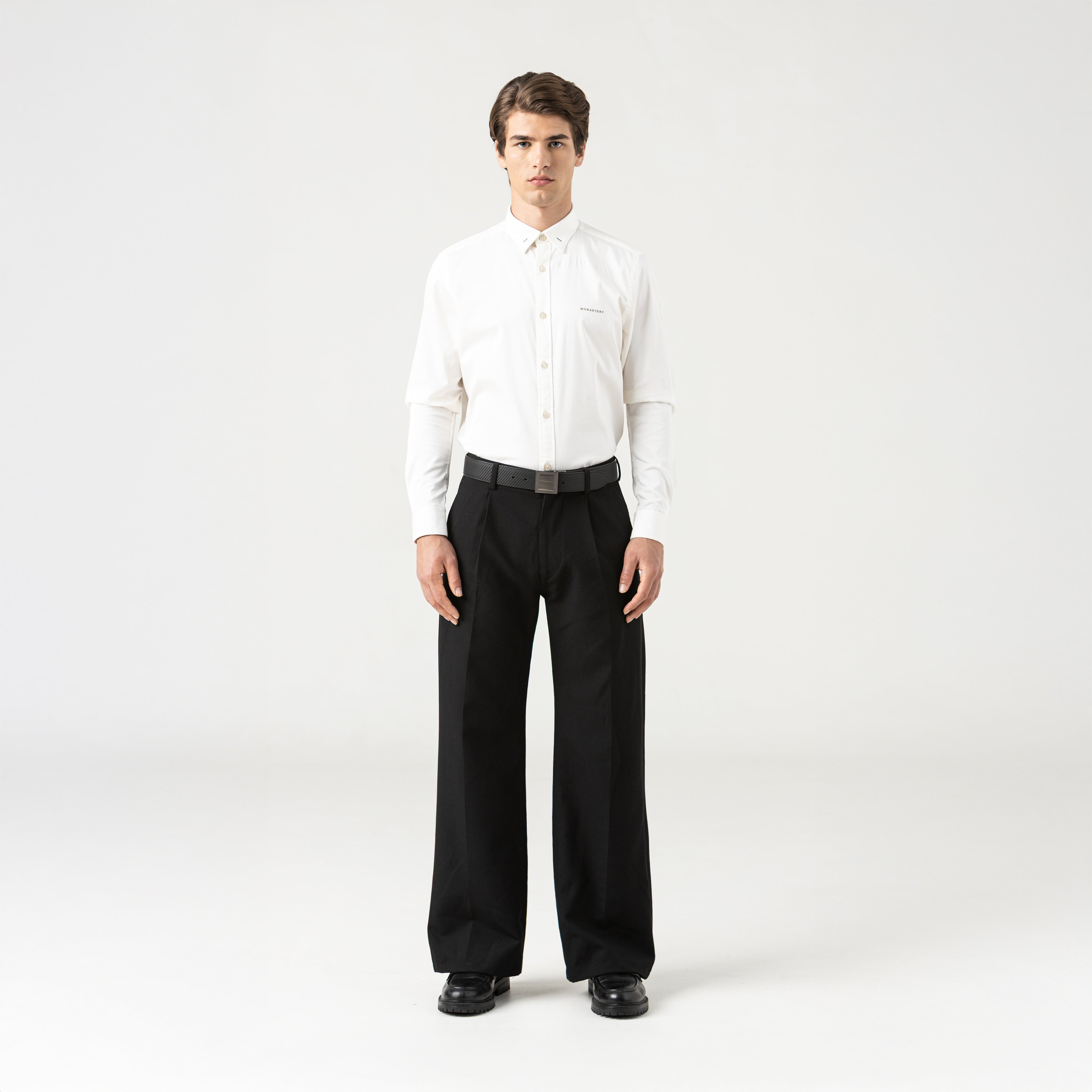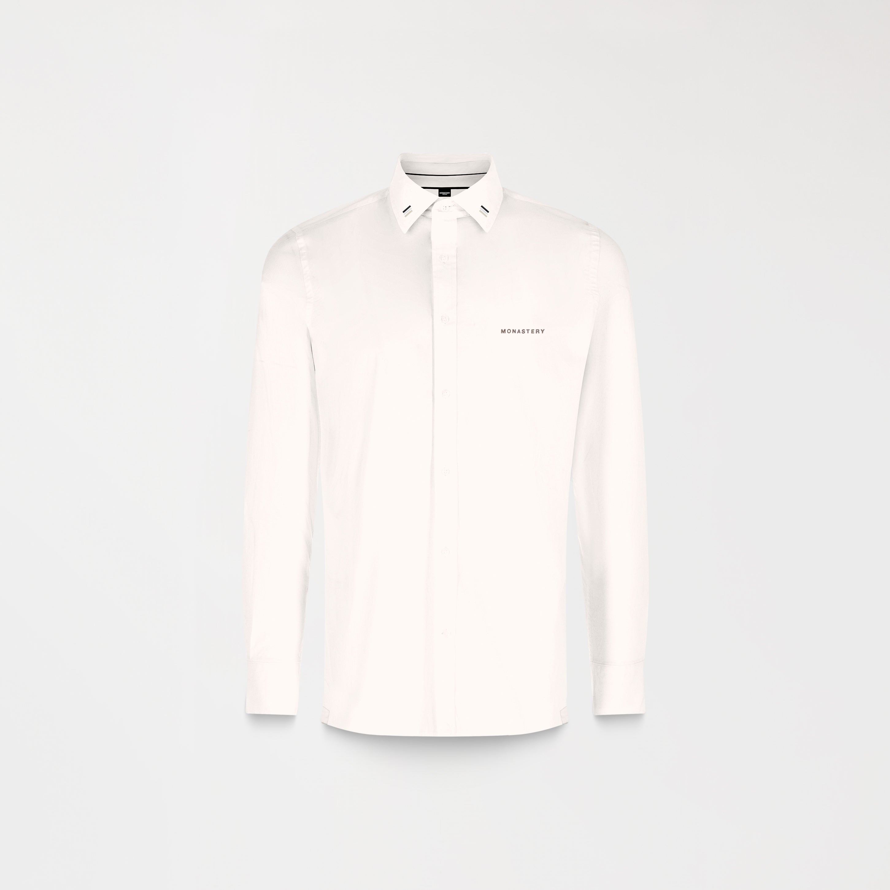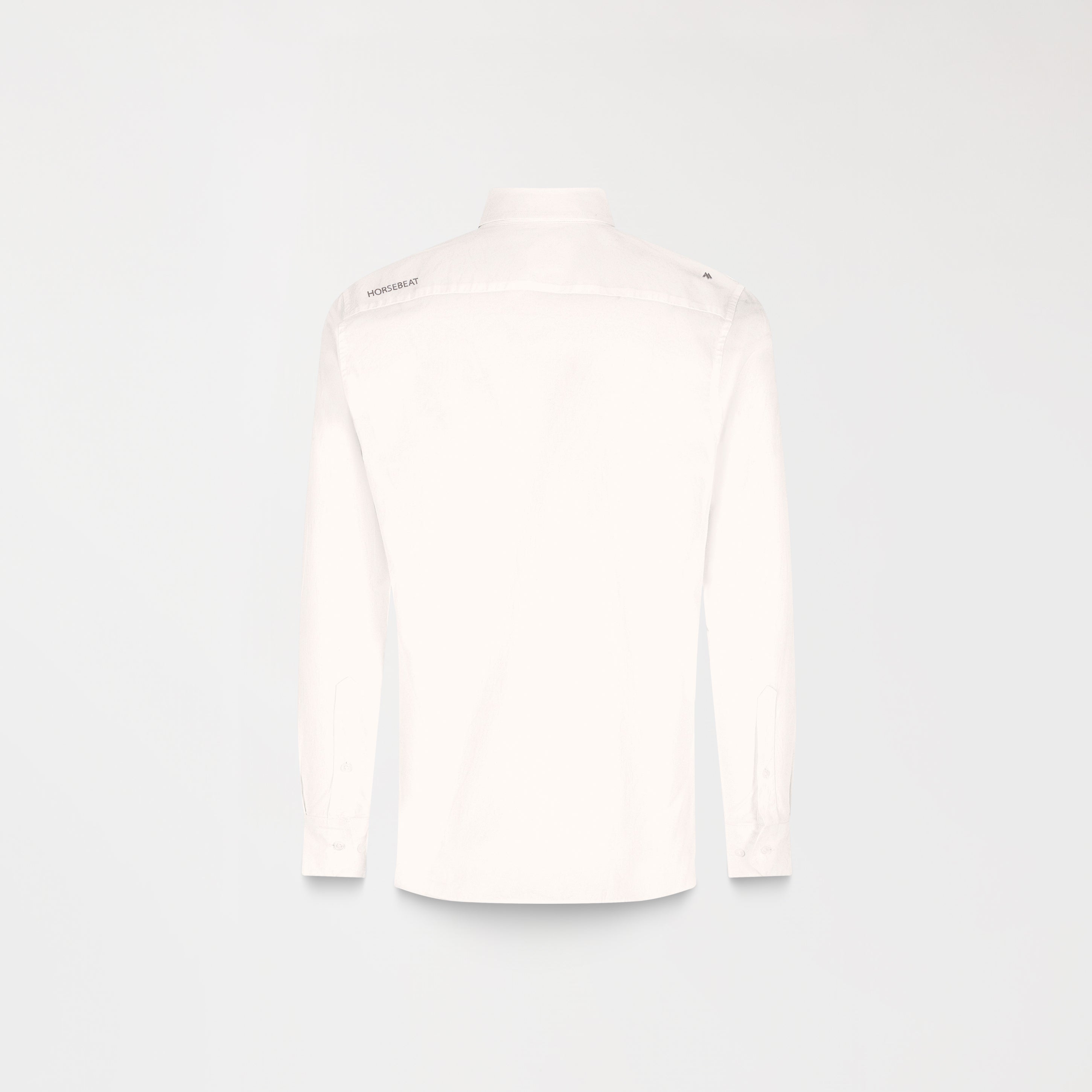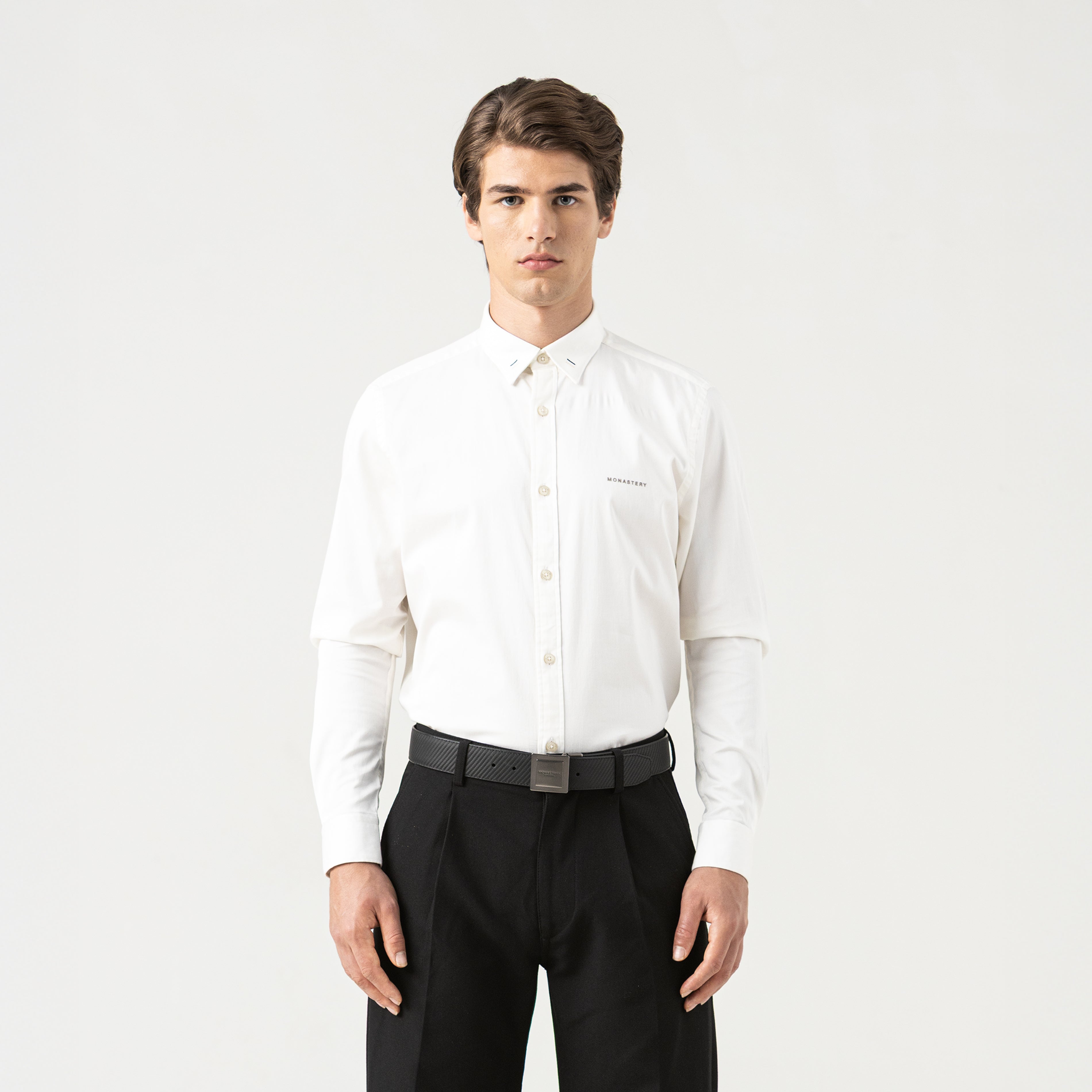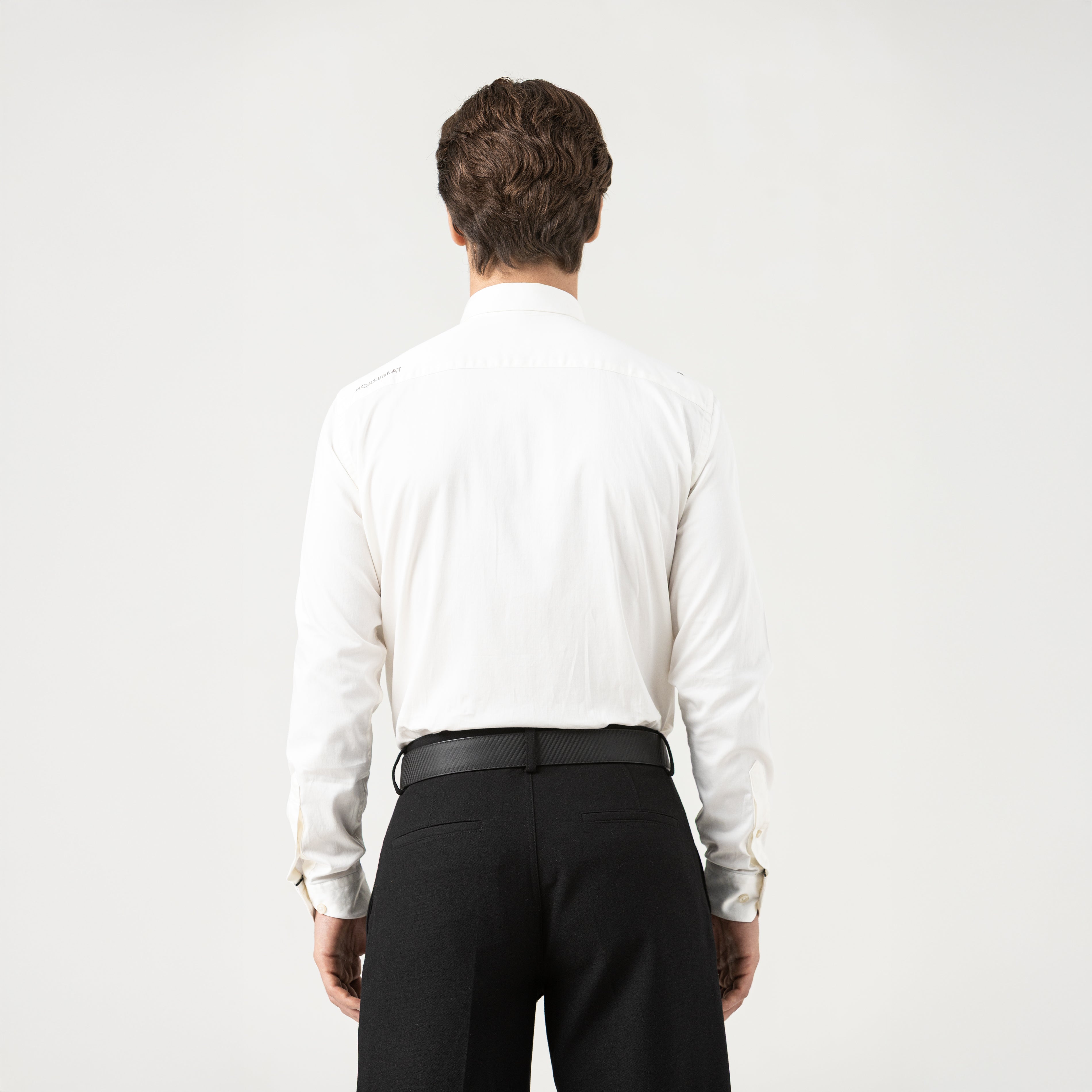 Ali is a men's long-sleeved shirt. Designed for the man who values subtle detail, the Ali shirt is made of soft cotton with elastane, providing comfort and freedom of movement. Its regular silhouette fits naturally, while the high-density print on the front and back adds a contemporary touch. Contrasting embroidered lines subtly decorate the right side of the collar, and the contrasting buttons complete this versatile garment, ideal for both formal occasions and a distinguished casual look.