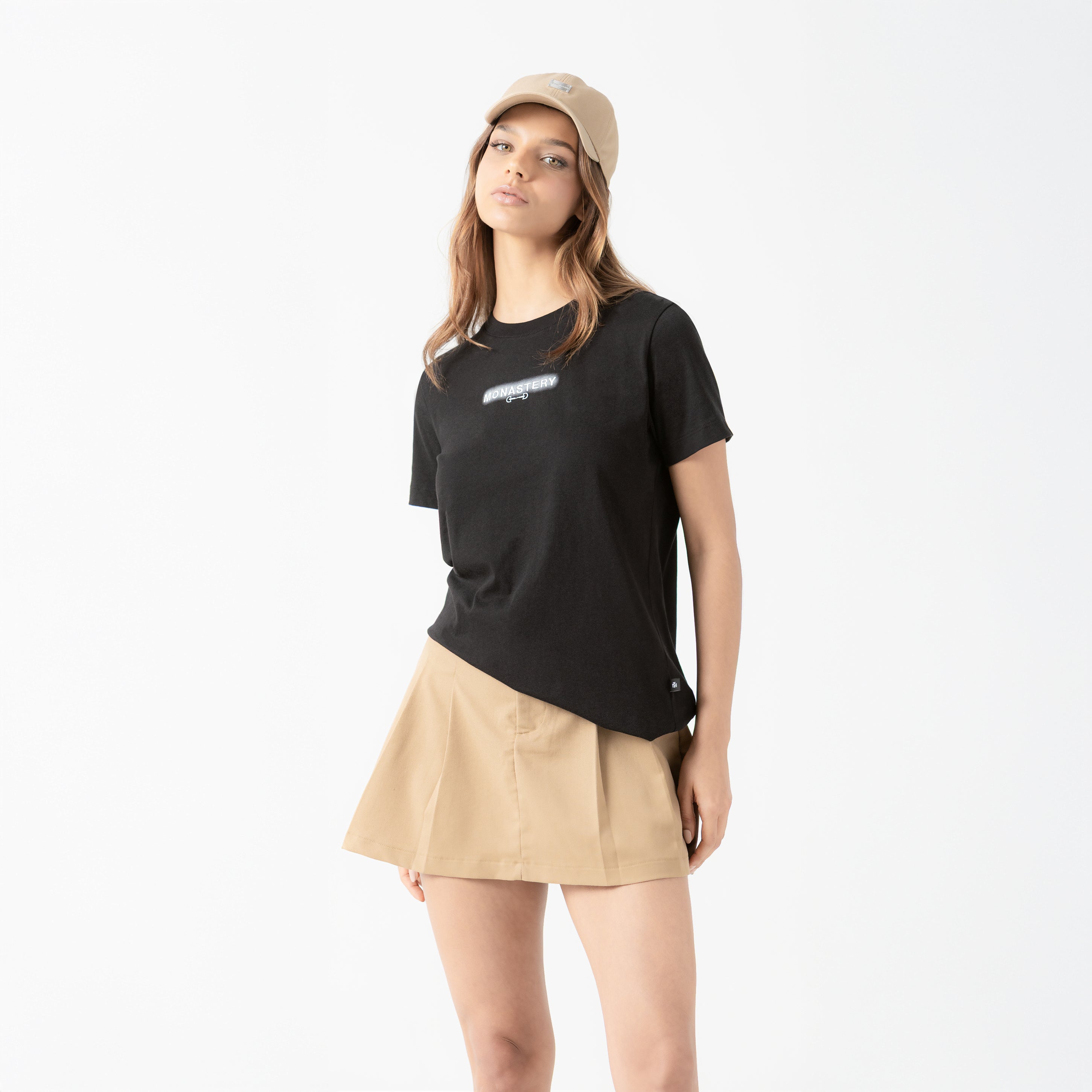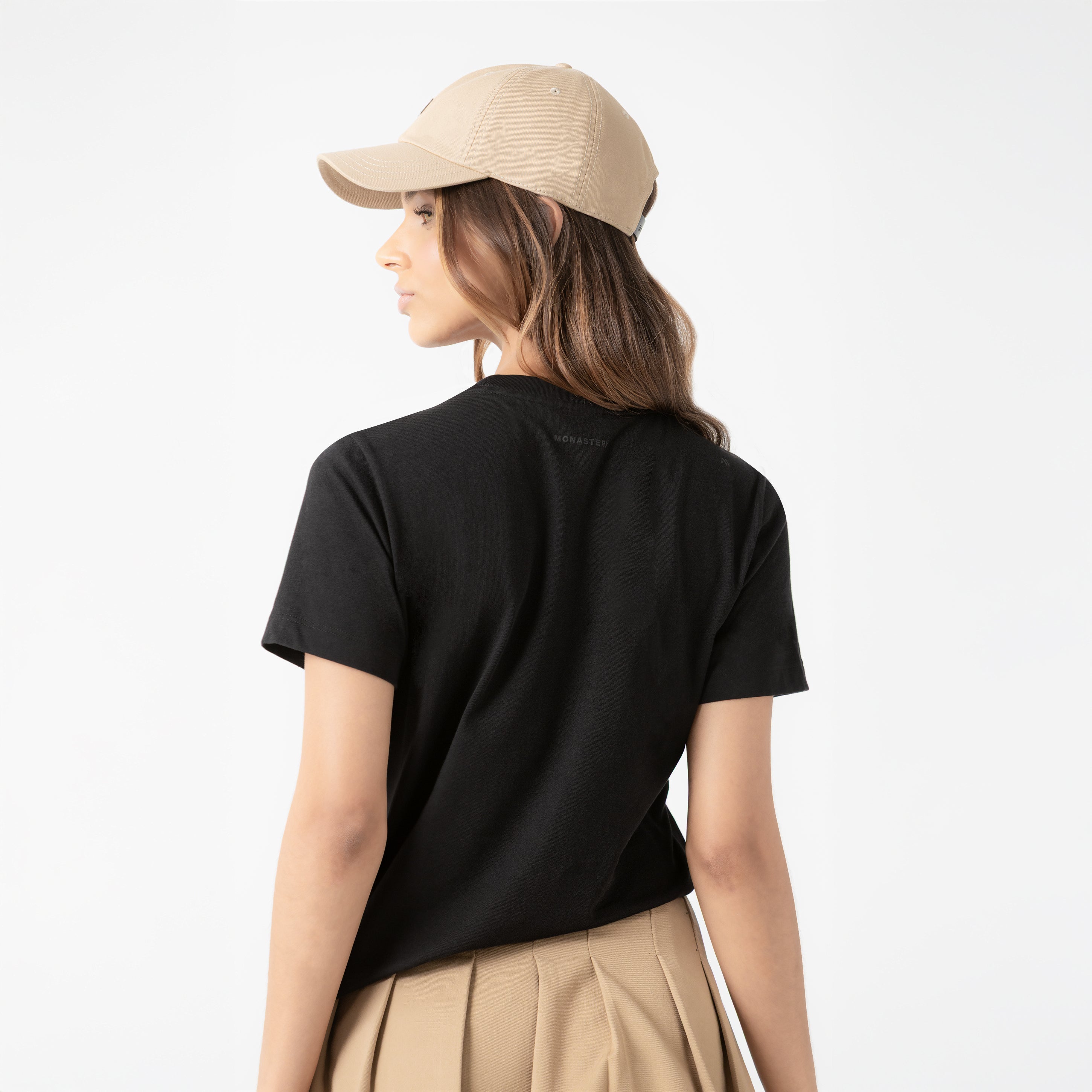 Anya is a feminine T-shirt made from high-quality pima cotton, designed with a regular silhouette that provides comfort and versatility for the Monastery woman. On the front, it combines flat embroidery and flat print, creating a refined visual detail. On the back, it features a tone-on-tone flat print that adds subtlety and cohesion to the design. Ideal for elevated casual looks or to complement minimalist styles with a distinctive touch.