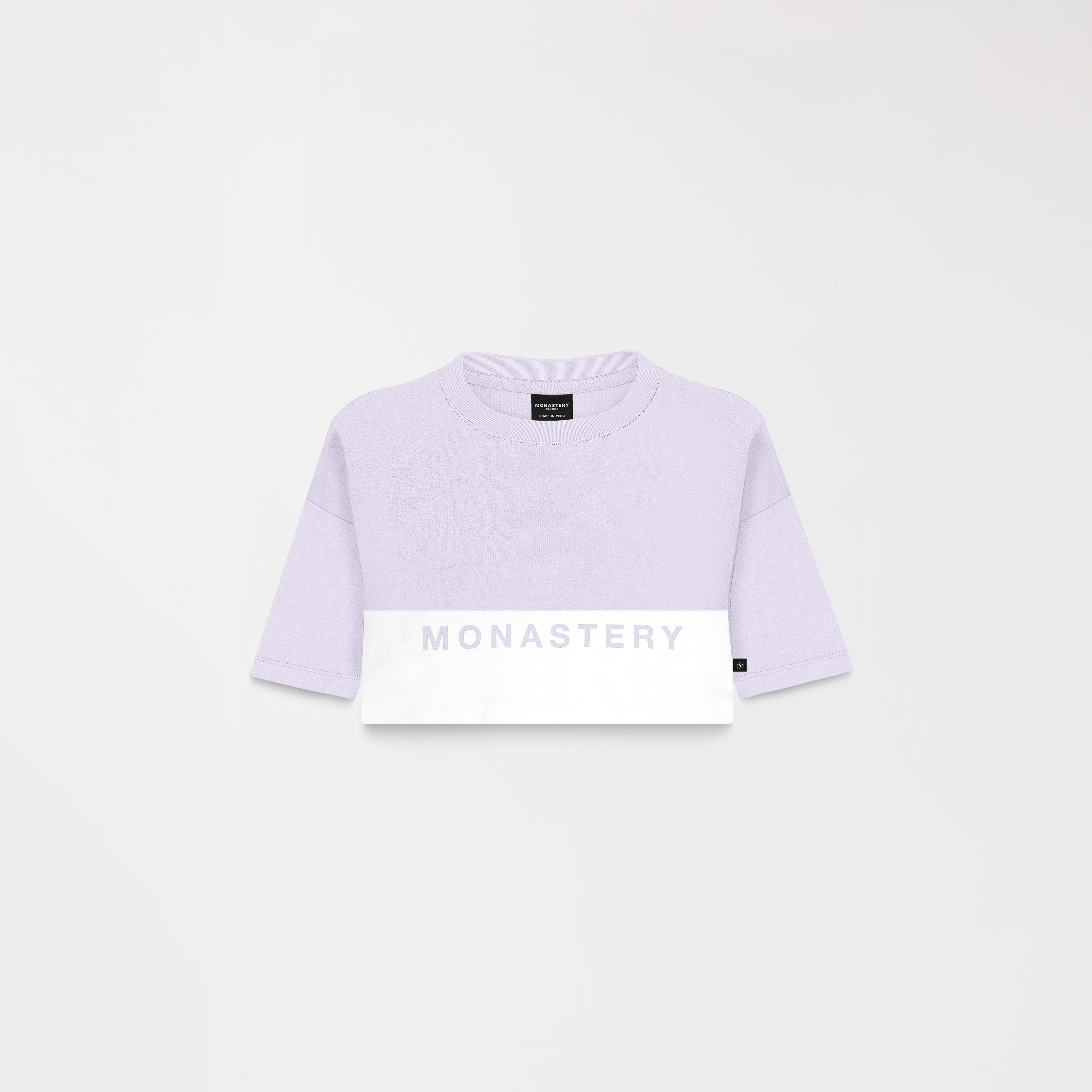 Women's crop top in Peruvian cotton exclusively for Monastery, crafted in a petite silhouette, featuring a cut-out at the front at the waistline, the iconic Monastery logo printed flat below the cutout, and insignia logos printed flat on the back. Arwen is a dynamic garment that brings elegance and versatility to your wardrobe.