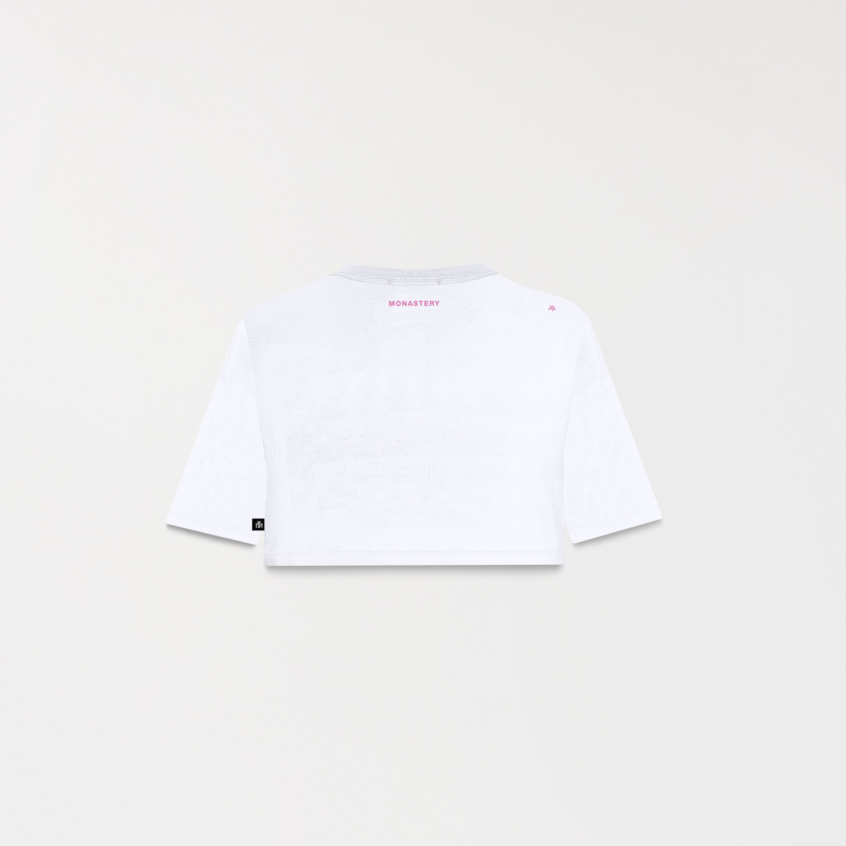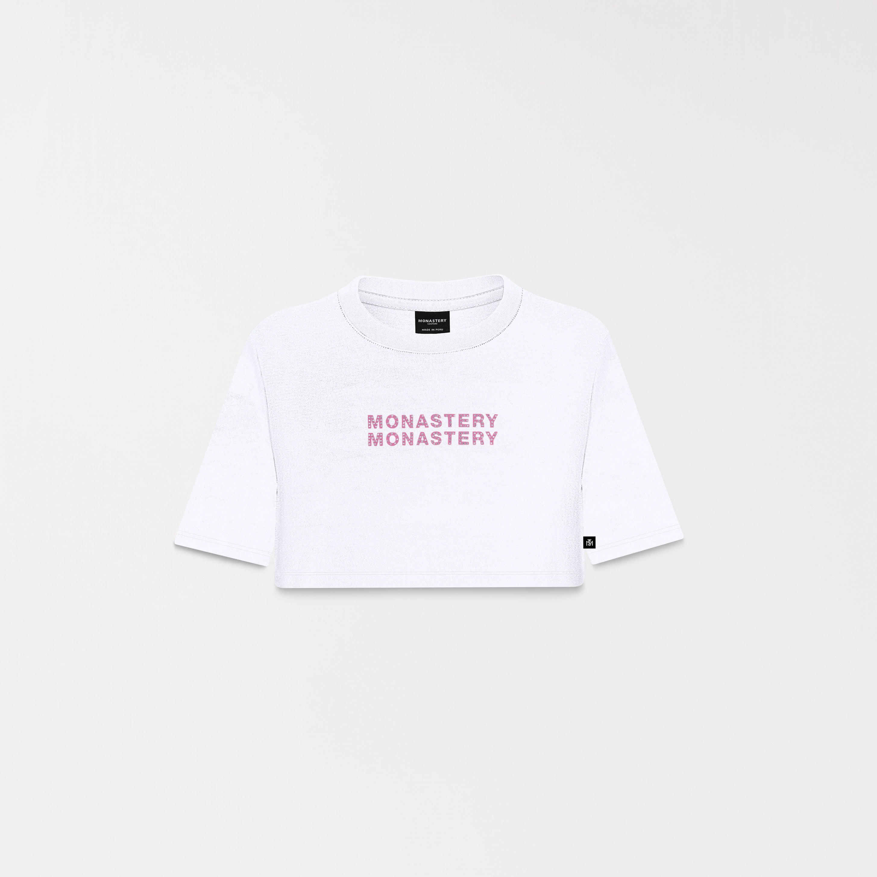 Women's crop top made from 100% ultra-siliconized cotton, selected for its structure, durability, and perfect drape. The front features a flat embroidery design combined with high-quality crystals, creating a shimmering effect that subtly catches the light and adds visual depth. The back displays the signature logo in a flat print, maintaining graphic consistency from any angle.