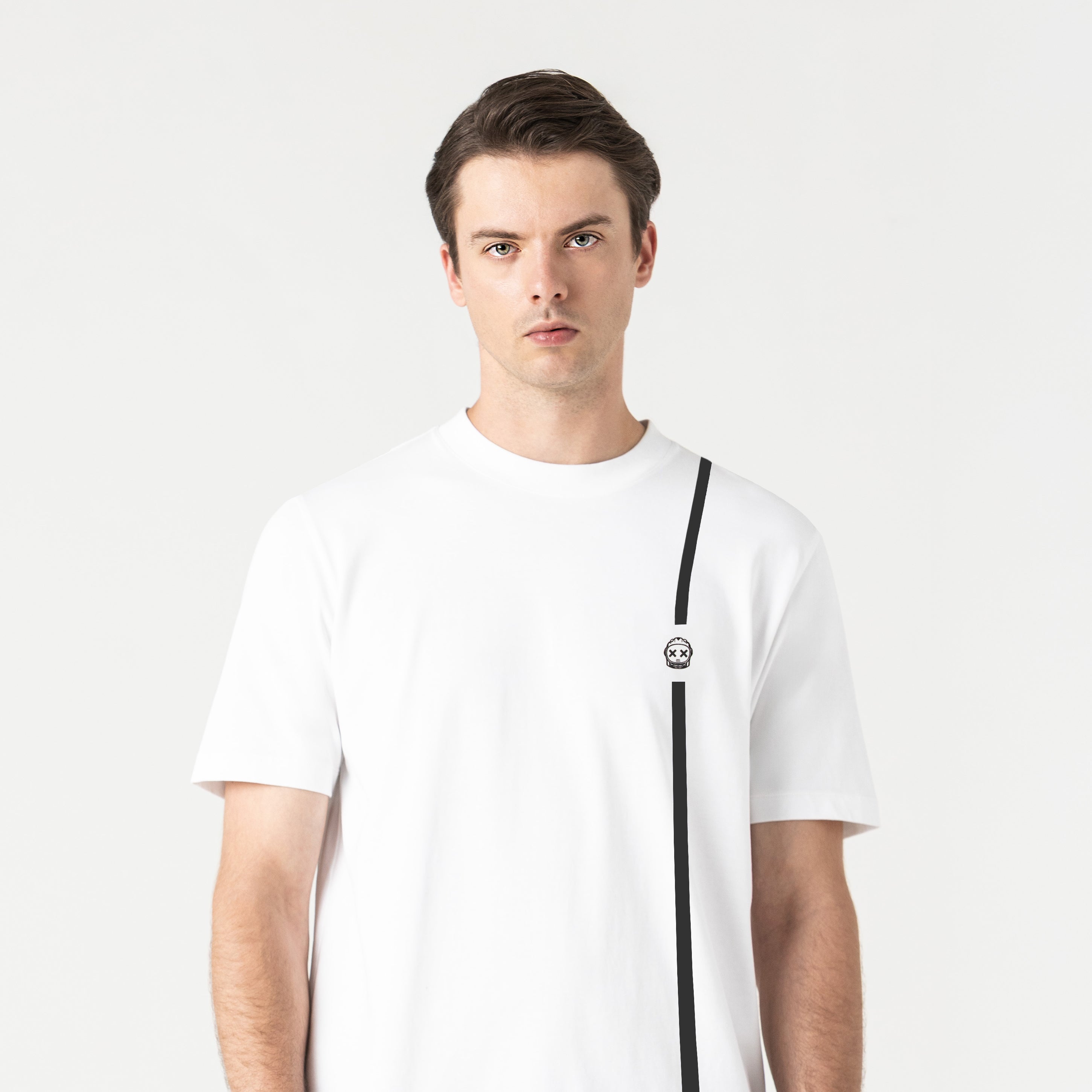 The Baroth is a men's regular-fit t-shirt that emphasizes identity. Made from Monastery fabric, it offers a soft and durable texture, ideal for everyday wear. The design features a 2.5 cm ribbed collar. On the front, a flat plastisol print stands out with sharp, graphic quality, accompanied by the brand's logo, reinforcing the garment's authenticity and personality. An essential t-shirt with a signature character, perfect for those who value the basics with purpose.