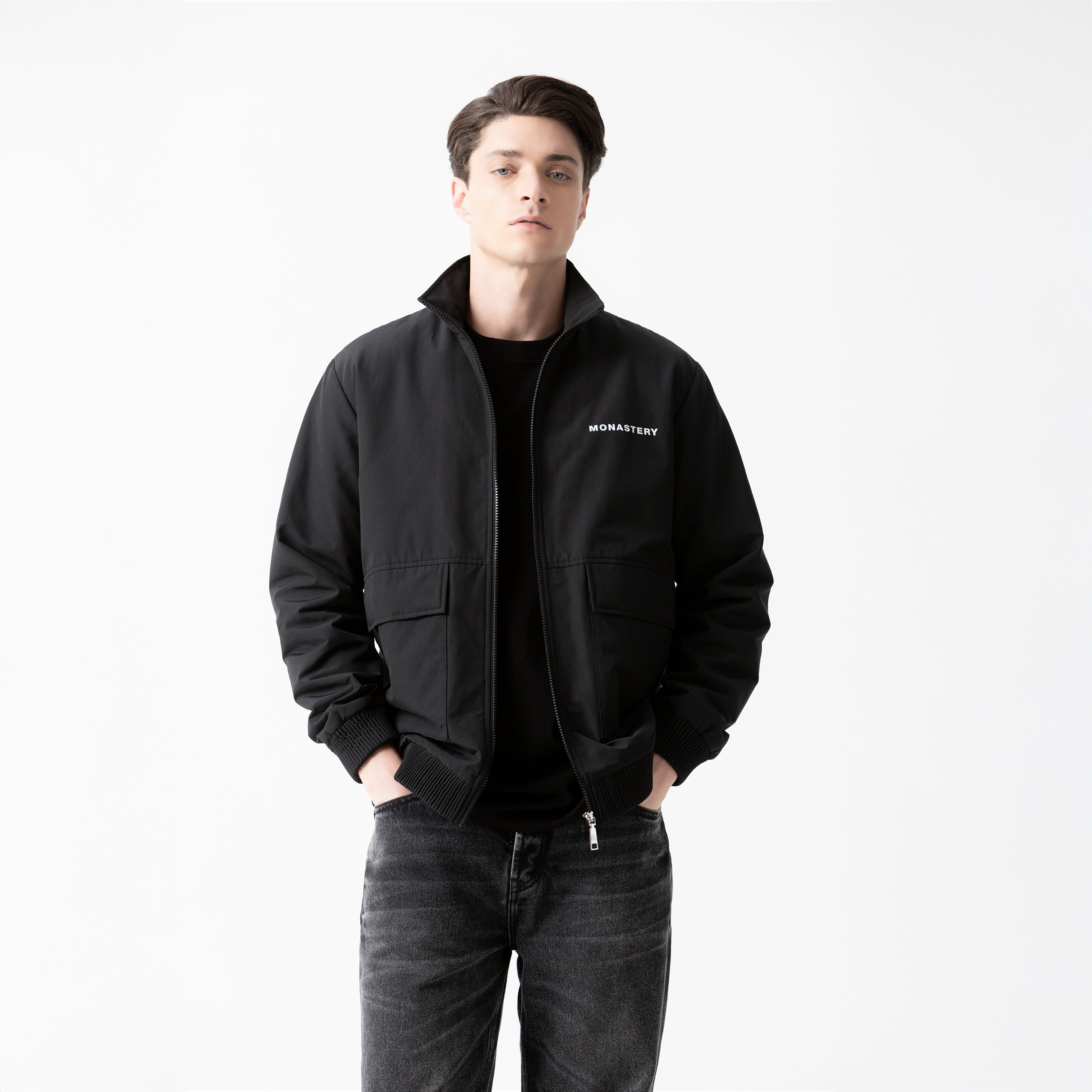 Men's zip-away jacket made from a durable and comfortable cotton-polyester blend in black.