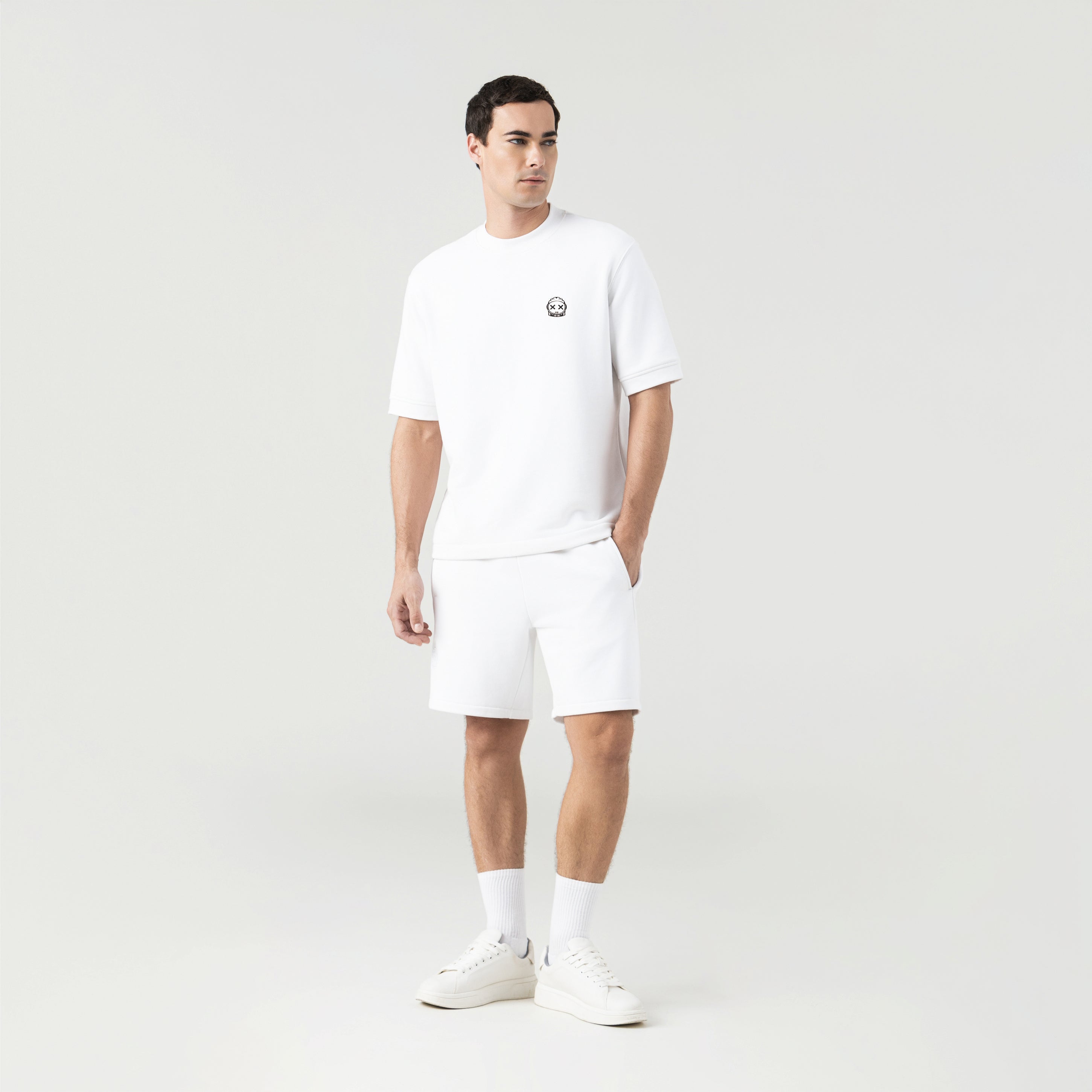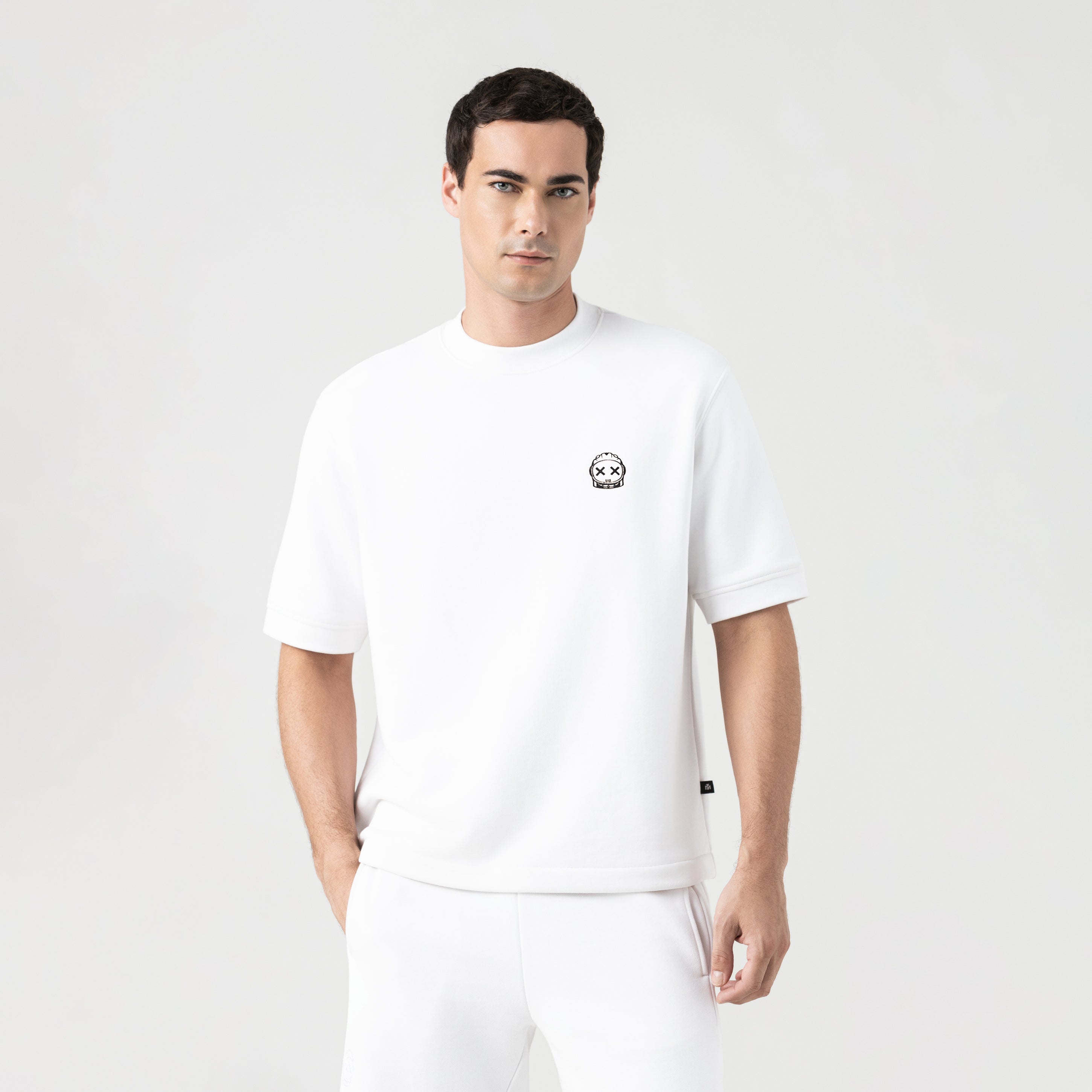 Bronco is a Burda set consisting of a T-shirt and shorts in an oversized silhouette. The T-shirt features a 3cm ribbed collar, a 3D satin thread embroidery of the iconic astronaut Phillip, adding texture and character, and a high-density back print of the Monastery logo. The shorts include front and back pockets, an internal pocket for small items, contrasting metal hardware, a thin matching drawstring, and the same 3D embroidery. Ideal for casual occasions where style and functionality come together with precision and detail.