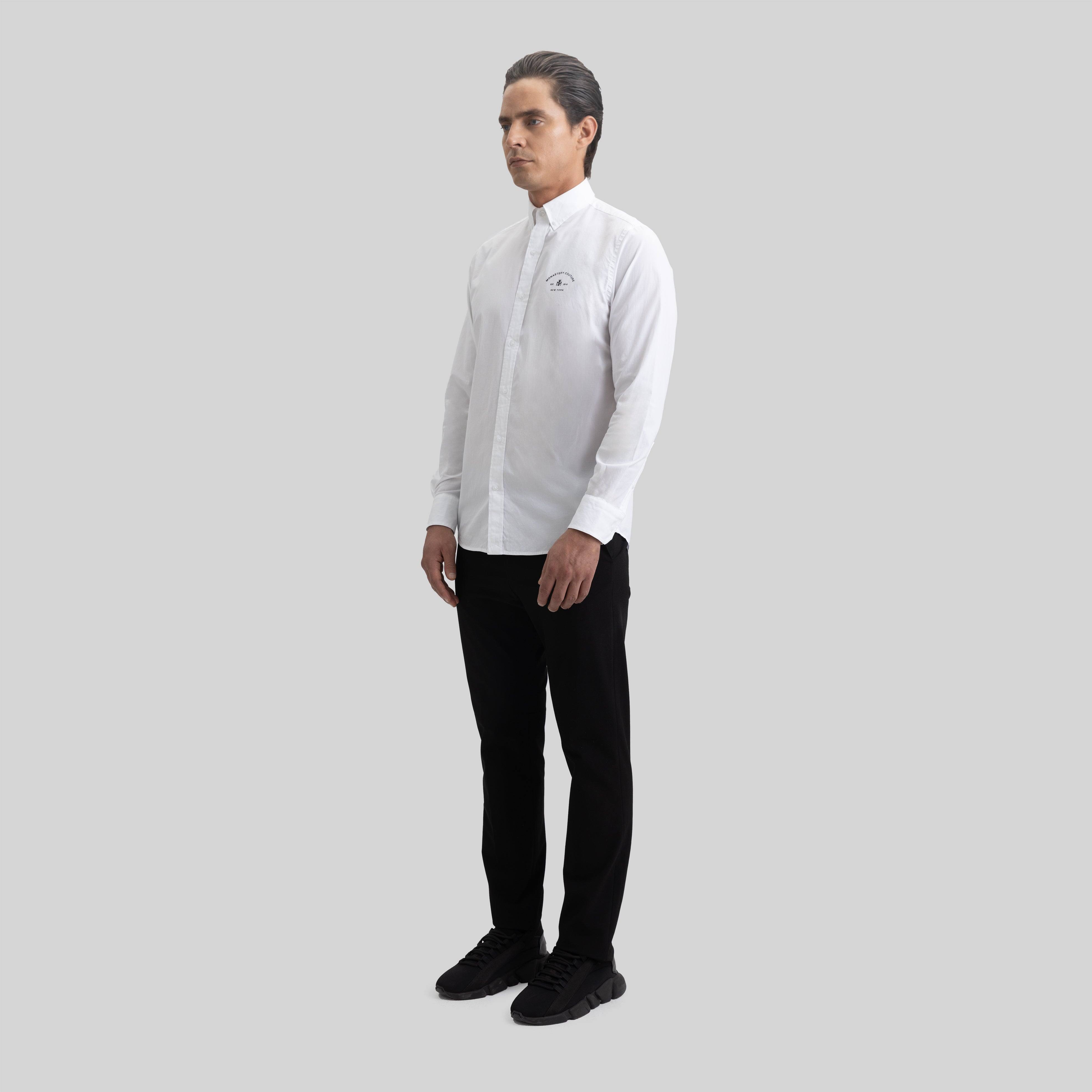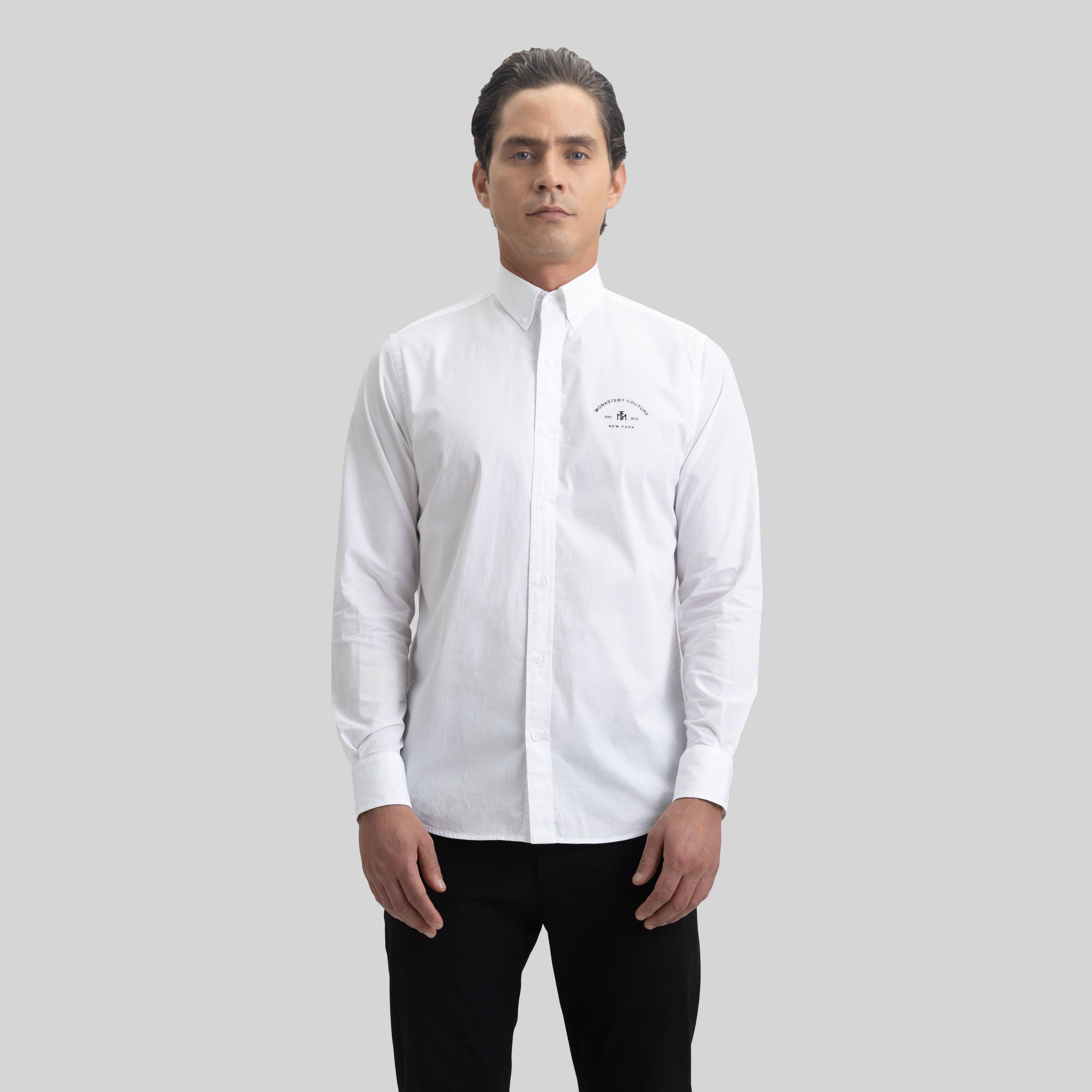 This long-sleeved men's shirt features a regular silhouette and is made of Peruvian Pima cotton with elastane for comfort. Bugatti is a cool and comfortable option, characterized by its classic and elegant design. It includes embroidered details such as the logo insignia on the back and inner knob, as well as a high-density print of the renewed Monastery logo on the heart stitch. This garment is a must-have basic to combine with any outfit and look stylish on special occasions.