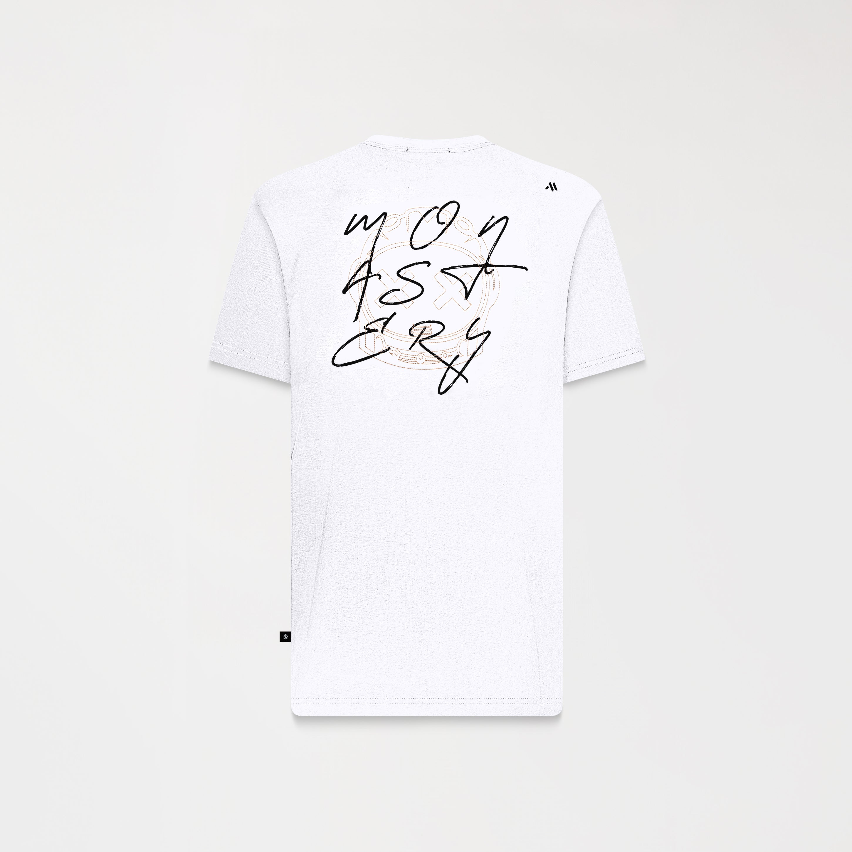 Buster is a men's T-shirt made from 100% high-quality, ultra-siliconized cotton, offering a soft texture, comfort, and dimensional stability. Its regular silhouette provides a balanced and structured fit. The artwork on the front and back is done in a backstitch embroidery technique, which adds linear texture and defined lines. These details are complemented by flat plastisol printing, achieving uniform coverage and a clean, visually appealing finish. A garment that combines technique, precision, and contemporary style.