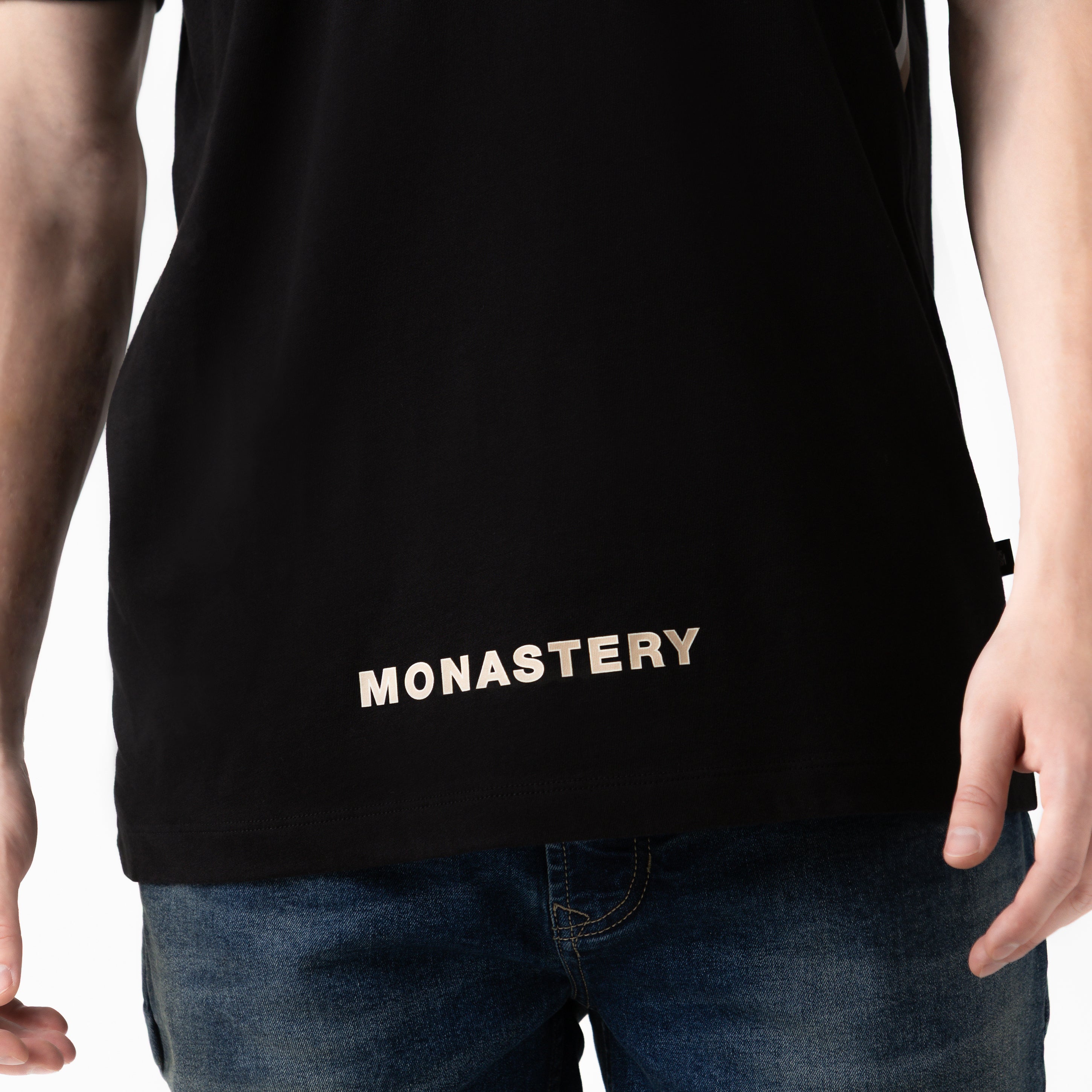 Cairo is a men's regular-fit T-shirt made from MST cotton, renowned for its softness and durability. The front and back feature flat plastisol prints, providing a clean and well-defined surface. Designed for casual wear with a subtle yet intentional graphic focus, it's a versatile garment that embodies the contemporary essence of Monastery.