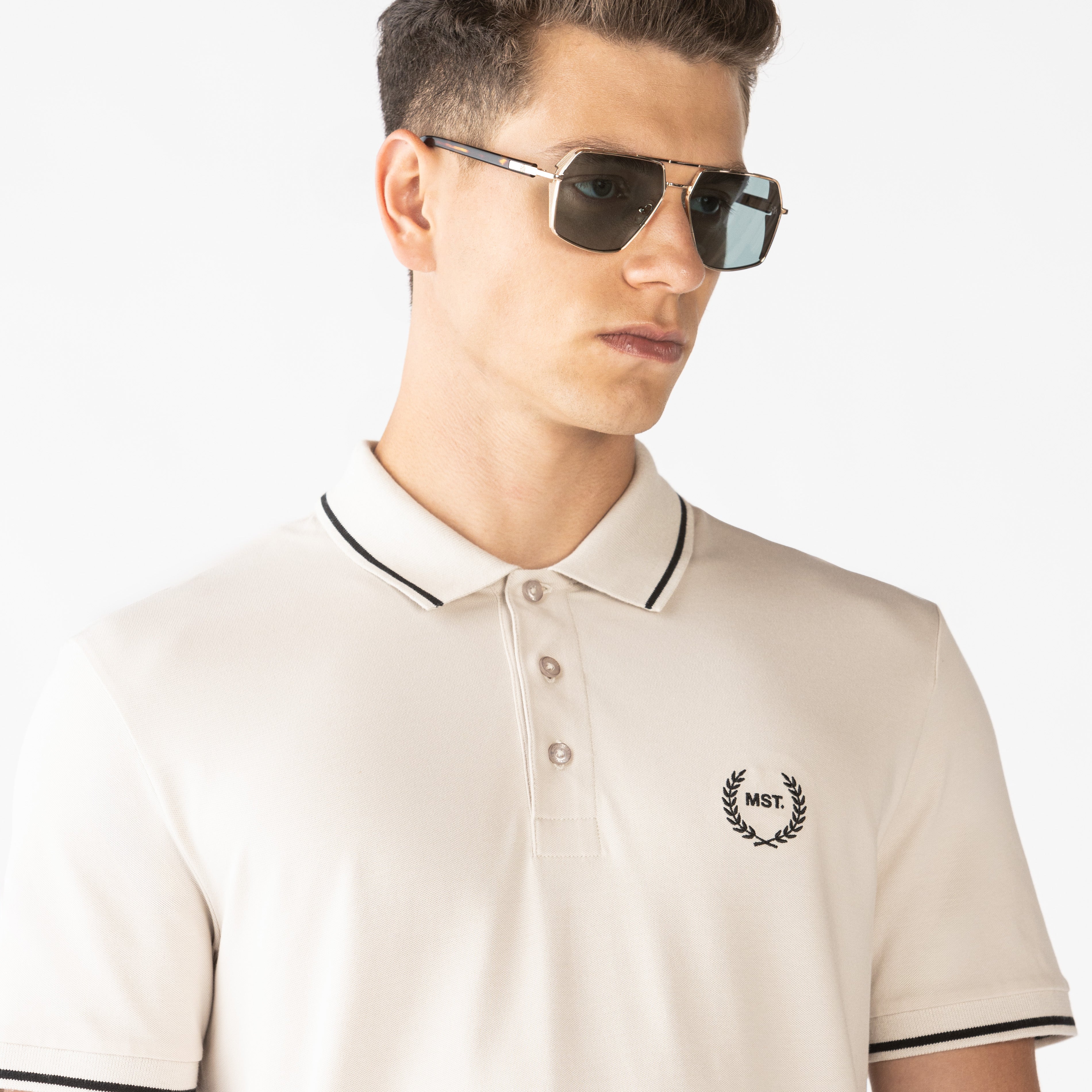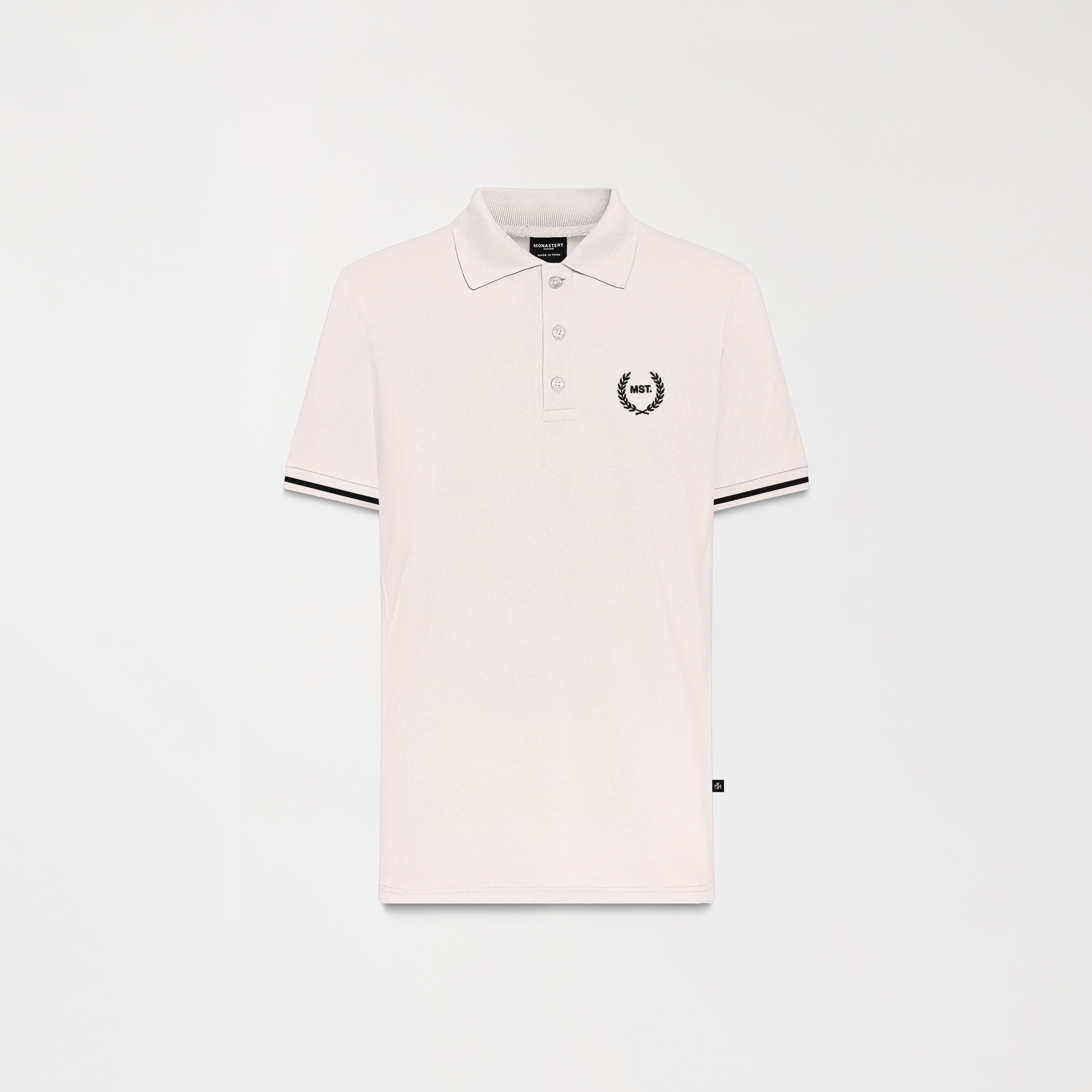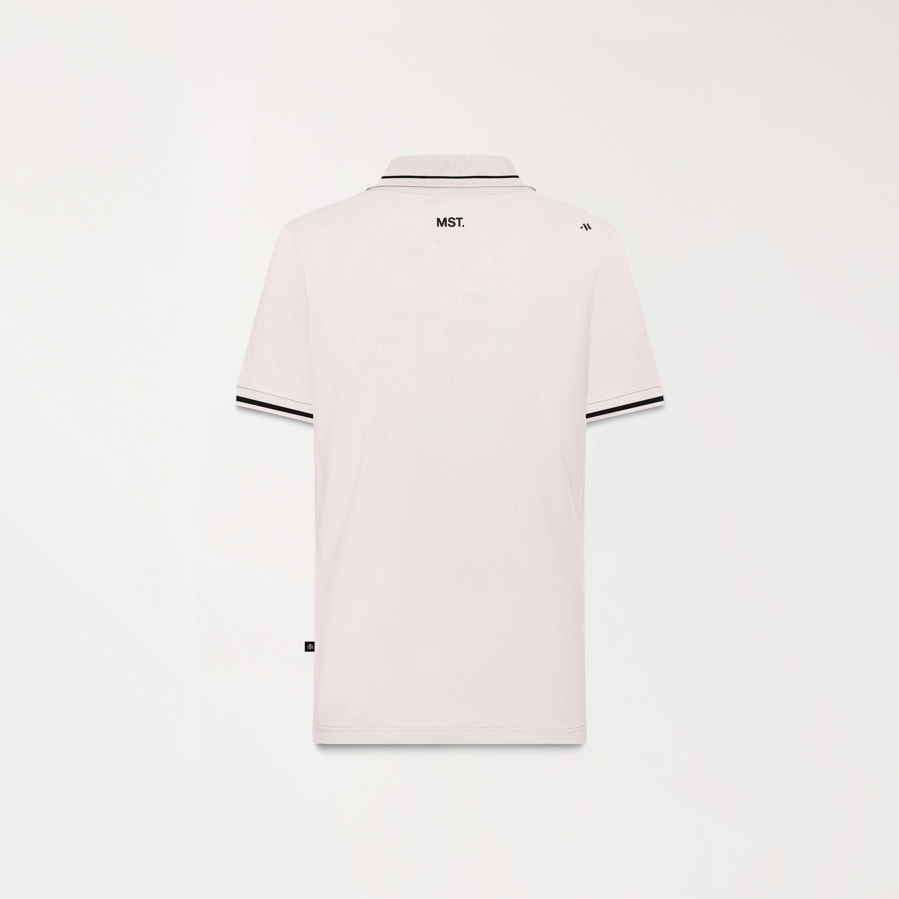 Moonbeam men's polo shirt made in high quality pique pima exclusive to Monastery, this polo shirt stands out for its embroidered art located in heart stitch, which gives it a distinctive and elegant touch. It features a knit collar and cuffs for added comfort and classic style. The back features a classic high-density logo artwork design, offering a sophisticated finish. Perfect for a casual and refined look.