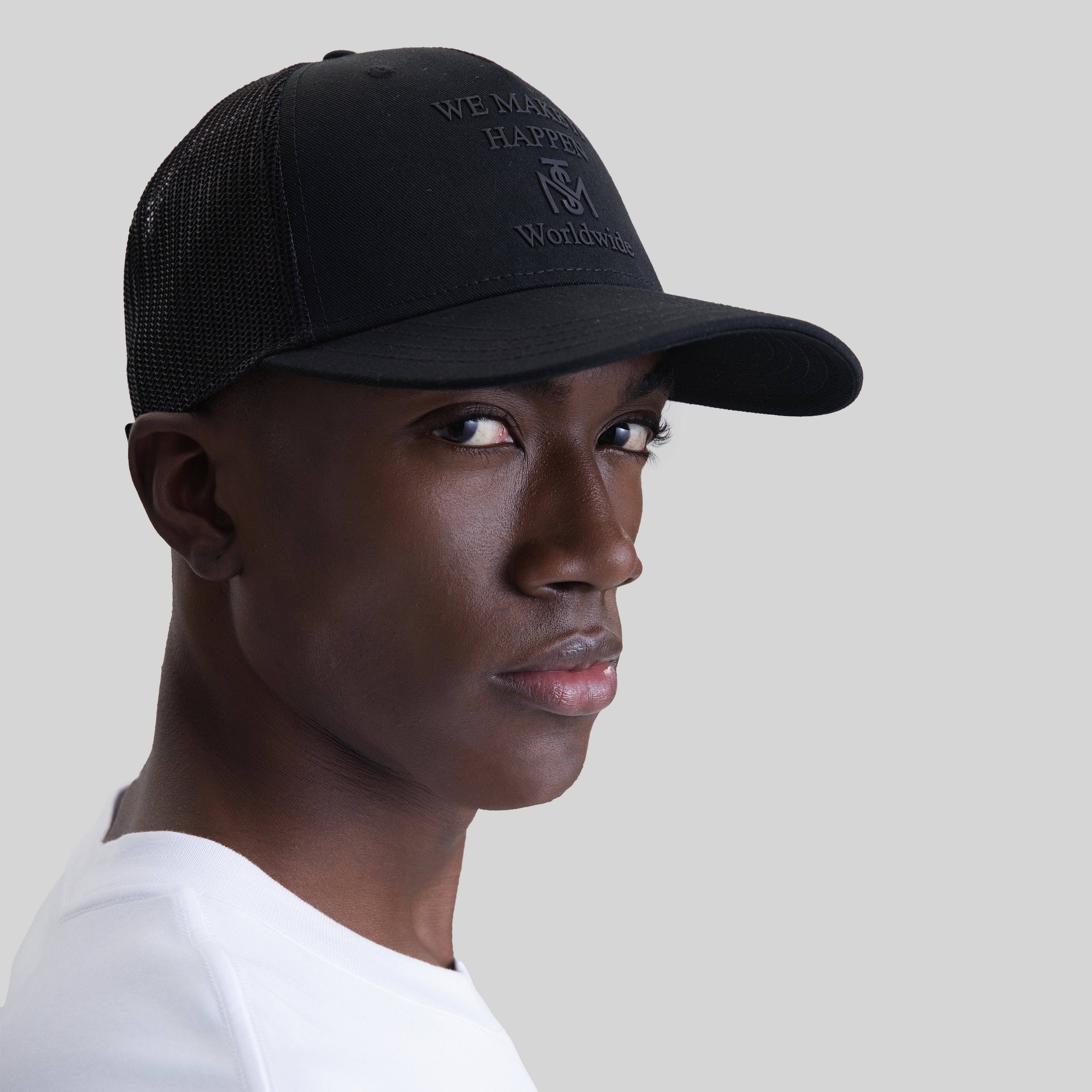 Cap made of cotton and mesh, with our emblematic "we make it happen" printed on the front. It has a plastic closure system.