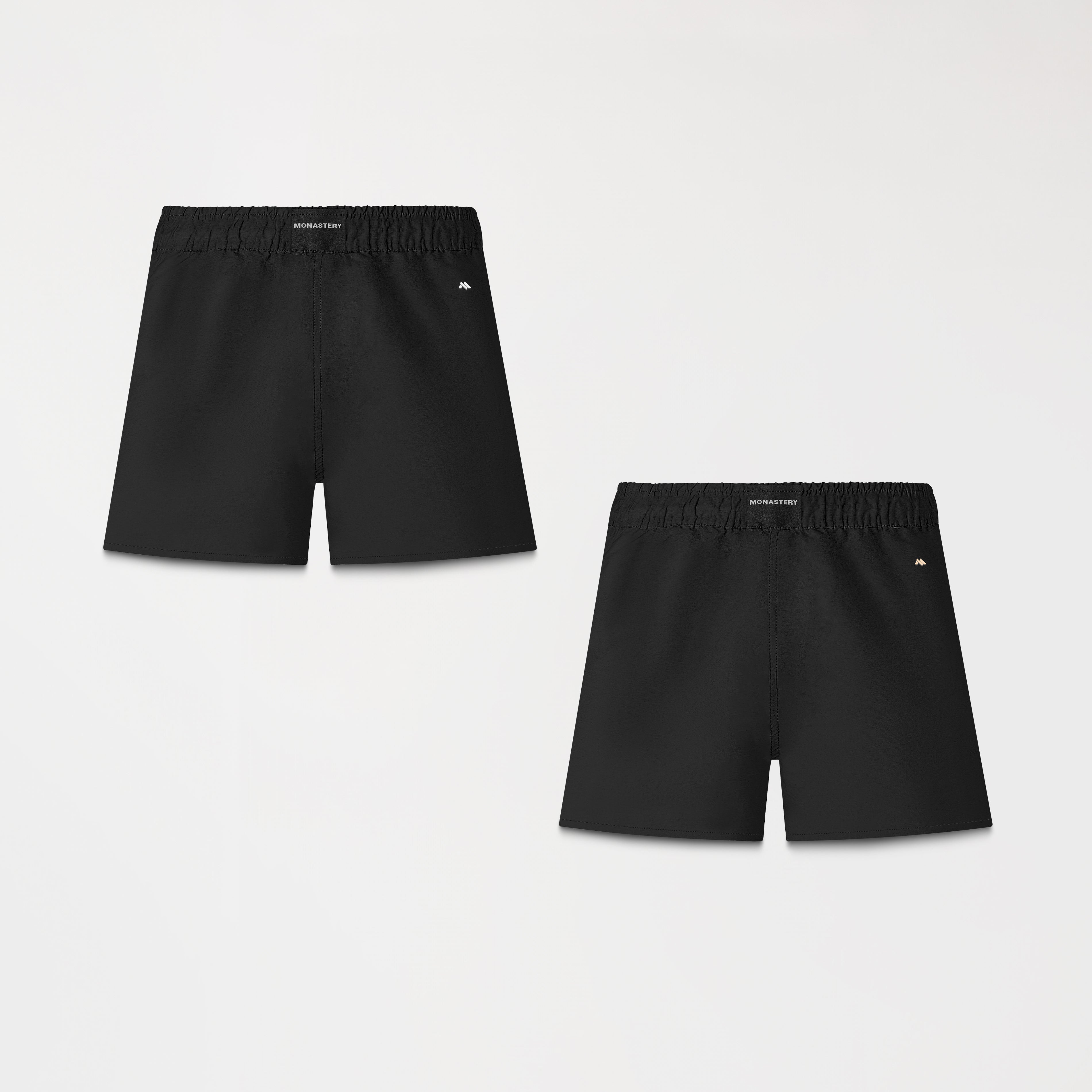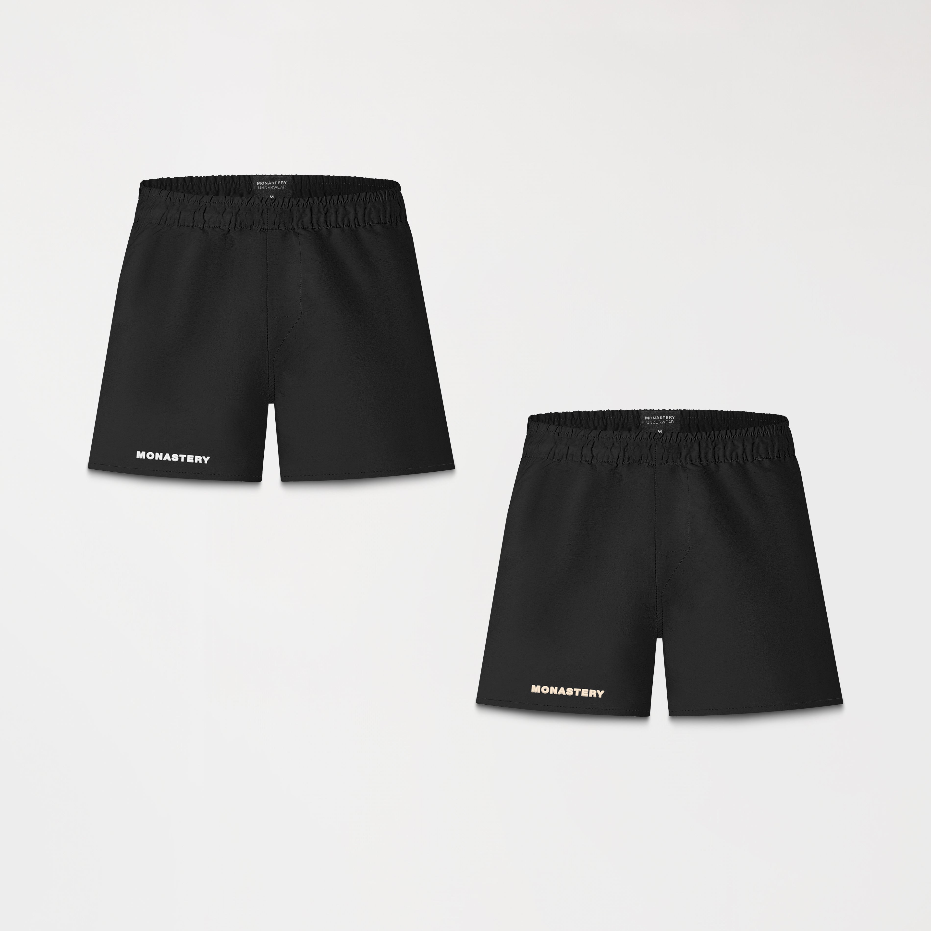 The men's sleep boxer shorts feature an elegant and comfortable two-tone design, black and white, that combine to create a modern and versatile aesthetic. The garment is made of soft, high-quality cotton, offering comfort and a perfect fit for a restful night's sleep. The "Monastery" logo print stands out in high density on the fabric, placed on the front of the boxer shorts with a tactile finish that adds a unique texture to the design. The logo, in a subtle yet striking contrast, stands out against the black and white background, providing a touch of sophistication without overwhelming the design. These boxers are not only ideal for rest, but also for those seeking a balance between comfort, modern design, and quality details, making this garment a sophisticated and practical option for the contemporary man.