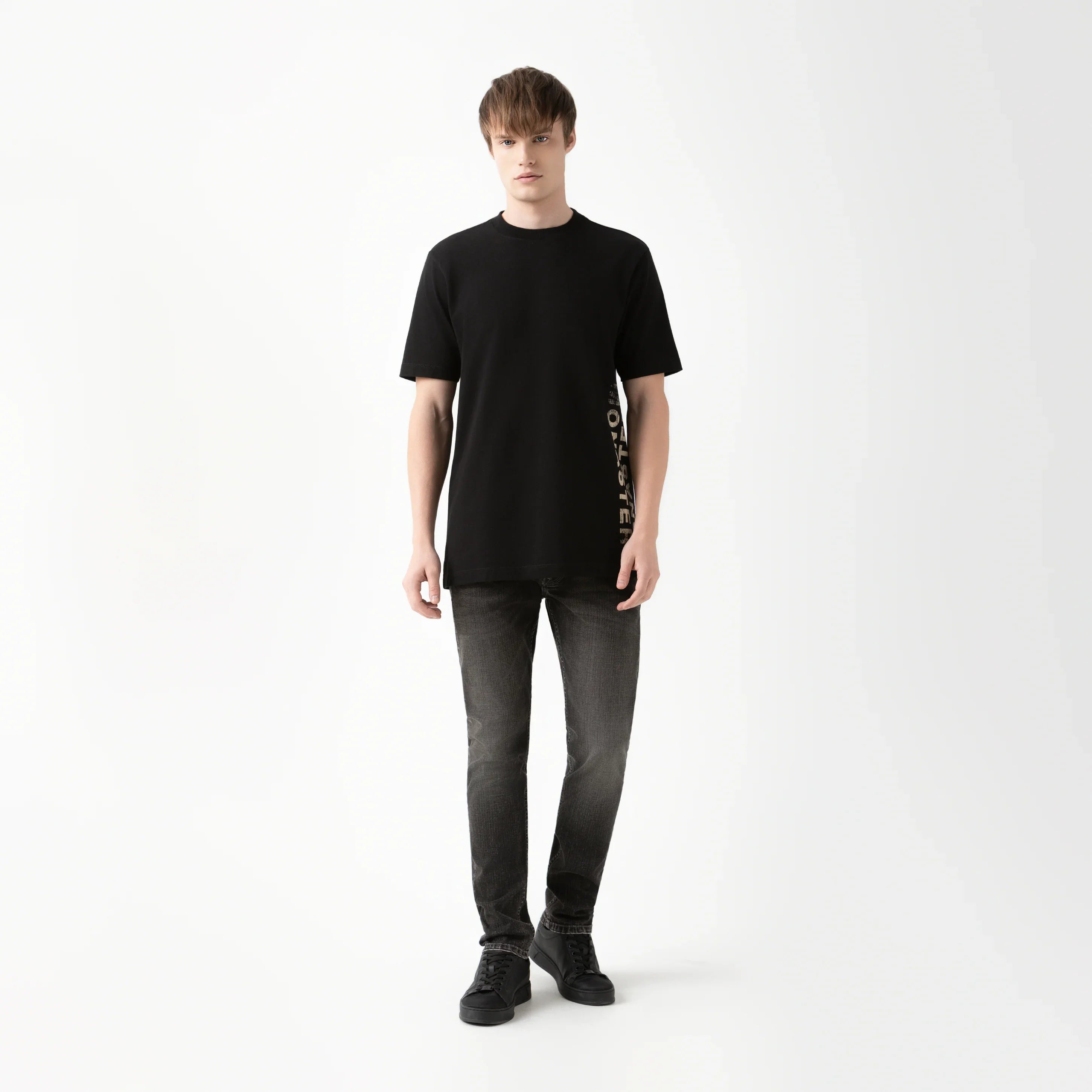 Clint is a men's regular-fit T-shirt made from Monasterio 2 fabric, a high-quality cotton that combines softness and structure. Its design includes a ribbed collar for a clean and durable finish. On the front and back, the prints, applied using a corrosion technique, create a distinctive visual effect that adds character and a modern touch. A versatile garment with its own personality, ideal for those who appreciate distinctive details in essential wardrobe pieces.