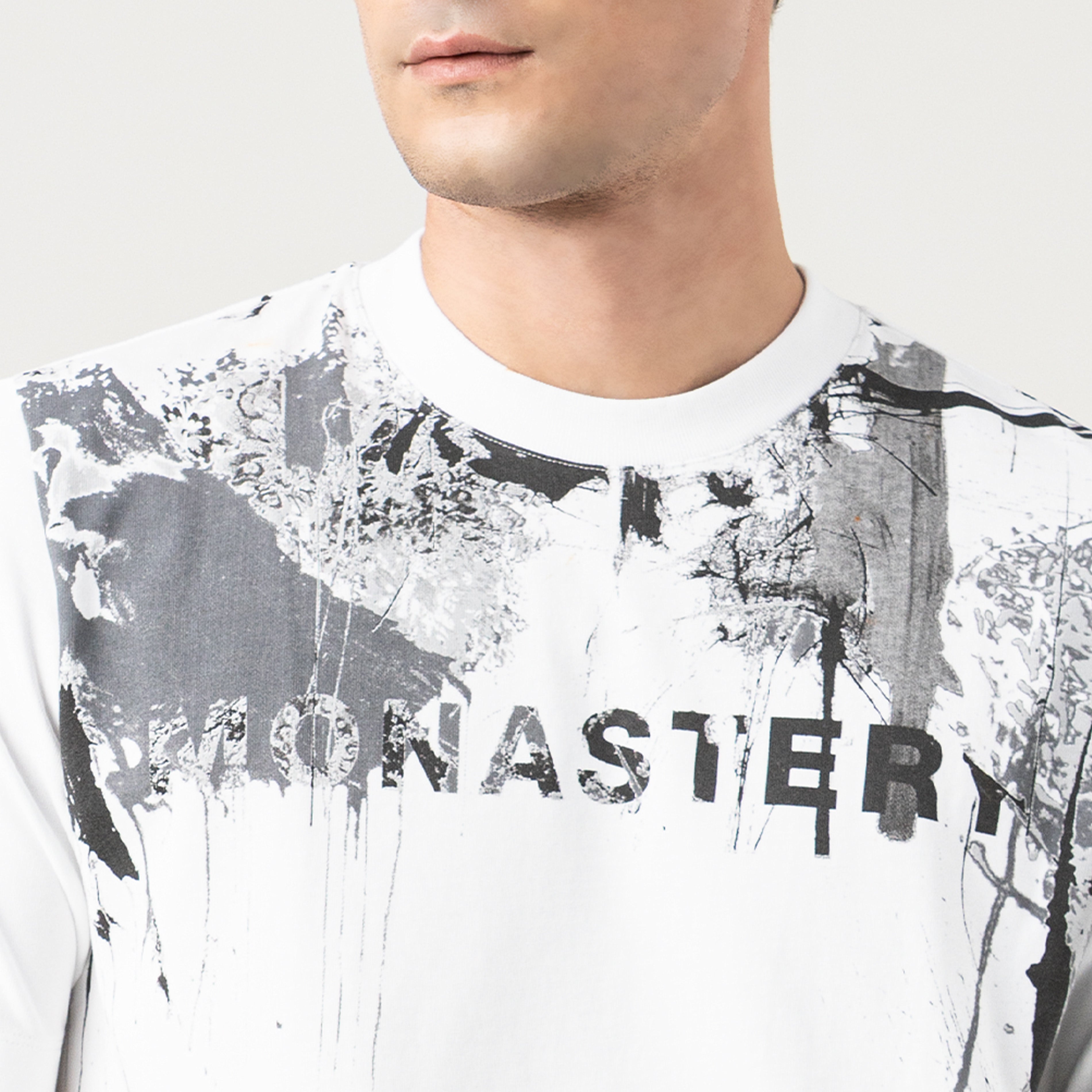 ETERNAL – Men's Regular Fit T-Shirt | A men's T-shirt that focuses on total design. Made from Monastery fabric, it offers a soft feel and a firm structure that guarantees comfort and durability. Its 2.5cm ribbed collar adds a defined and masculine finish, while the flat hem applied throughout creates a wraparound visual base, achieving a graphic impact that extends continuously at every angle. An essential piece with a powerful aesthetic, ideal for those looking to stand out.