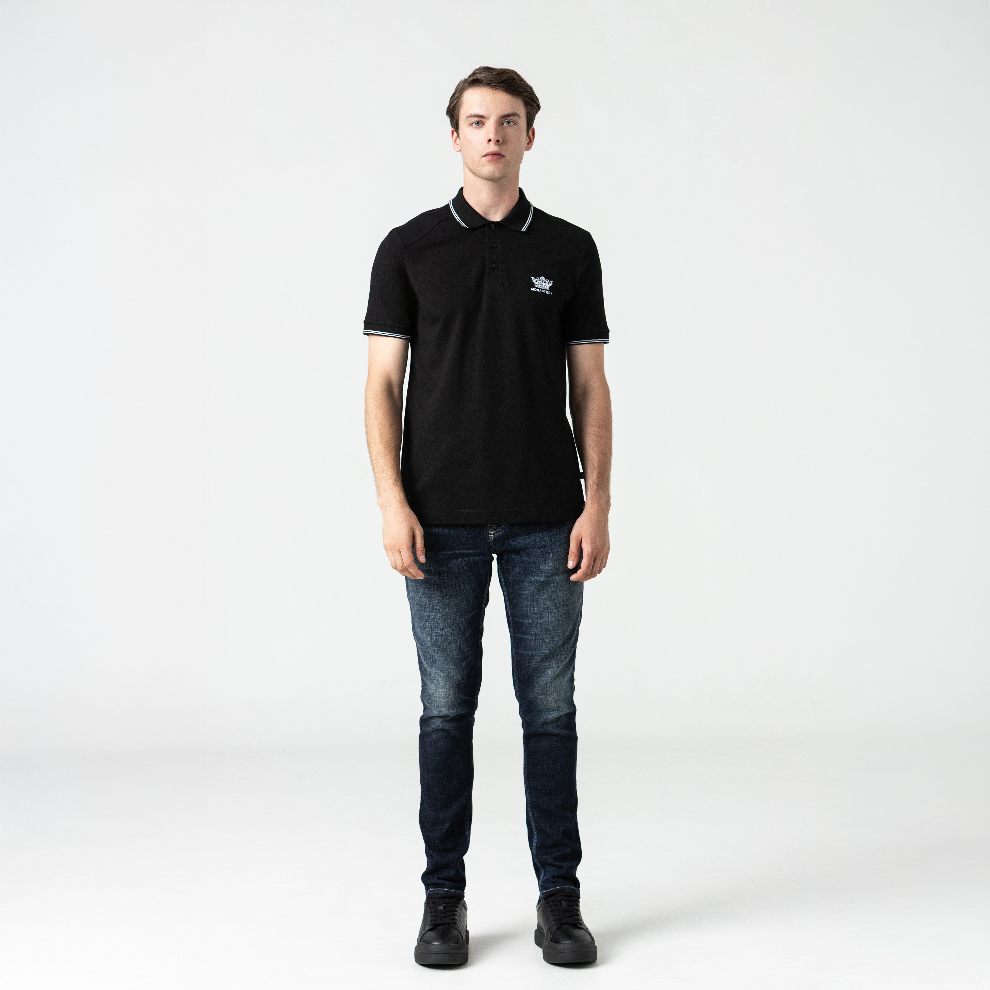 Men's polo shirt, made from 100% Peruvian Pima cotton exclusively for the brand. Franz is a fresh and comfortable piece with a classic and elegant silhouette. It features a revamped ribbed design on the shoulders, collar, and cuffs in a straight-line fabric with contrasting lines, made especially for this piece. The front features our Monastery logo and a novel, contrasting embroidered King crown, and high-density insignia logos on the back. Making this item ideal for any occasion.