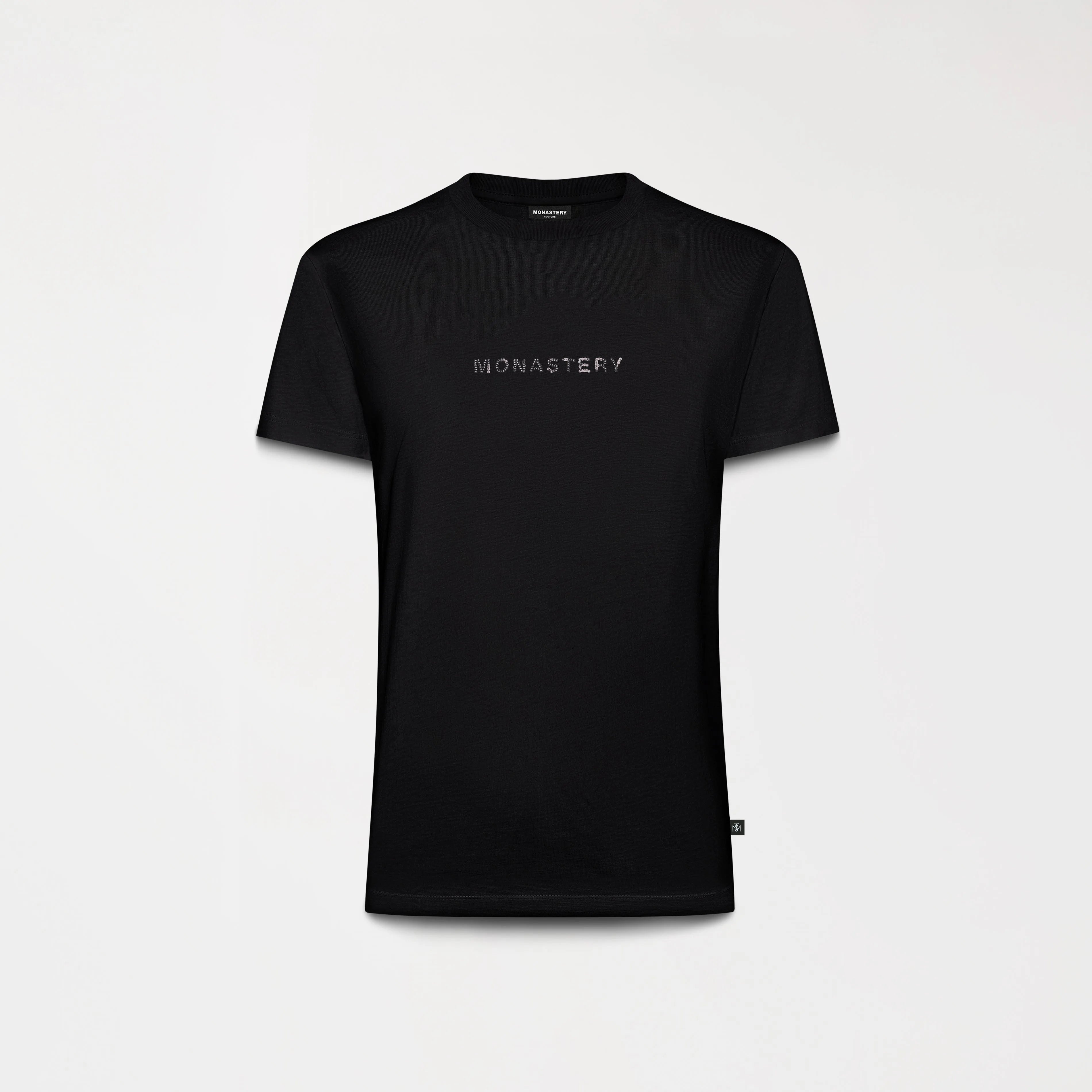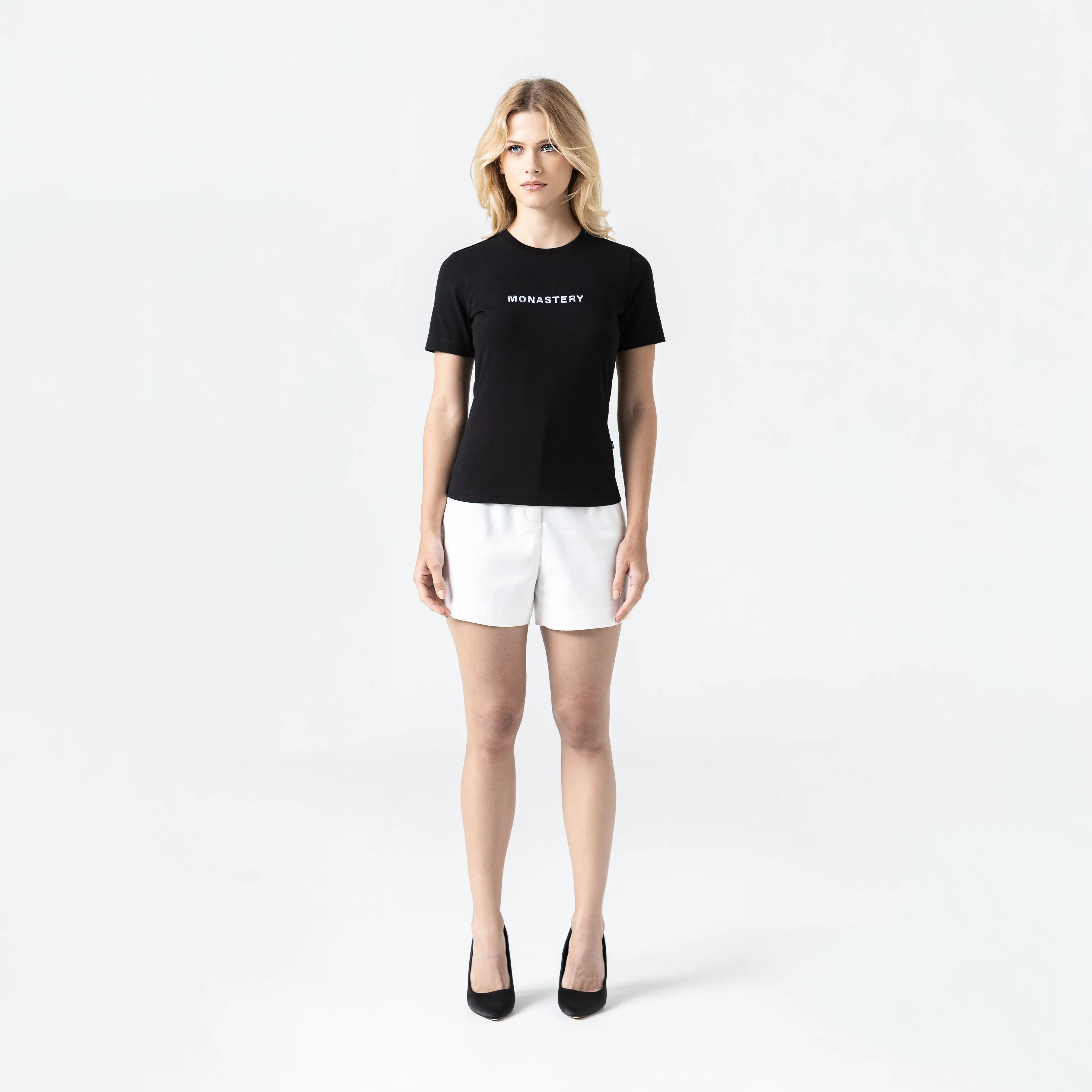 Women's t-shirt, made of premium cotton with elastane for greater comfort and freshness. This item has a fitted silhouette, highlighting the feminine figure, with artwork of our Monastery logo, using a contrasting sequin technique, giving it texture and dynamism. It is accompanied by the classic tone-on-tone logos on the back, making this item a versatile and dynamic garment, ideal for everyday wear.