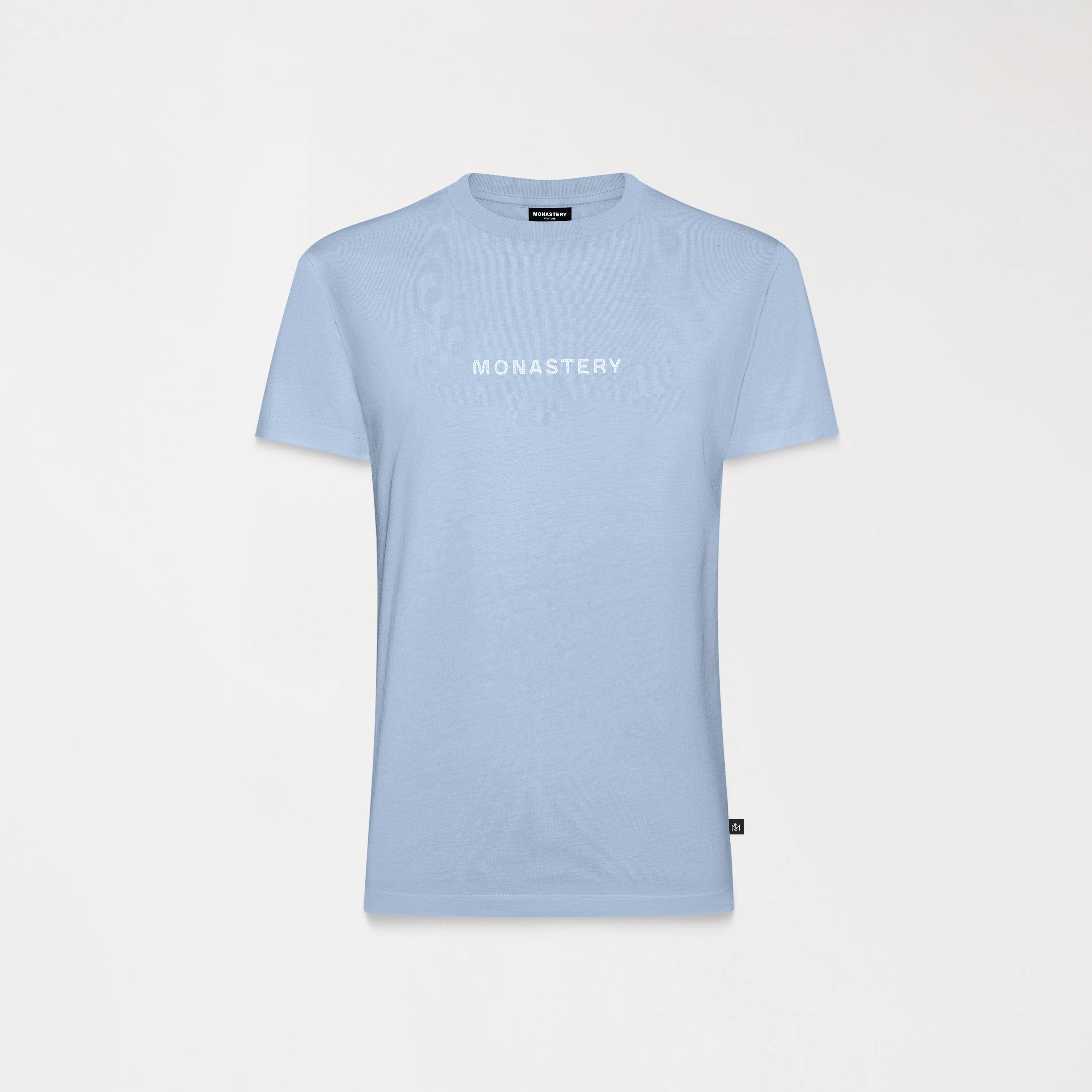 Women's t-shirt, made of premium cotton with elastane for greater comfort and freshness. This item has a fitted silhouette, highlighting the feminine figure, with artwork of our Monastery logo, using a contrasting sequin technique, giving it texture and dynamism. It is accompanied by the classic tone-on-tone logos on the back, making this item a versatile and dynamic garment, ideal for everyday wear.