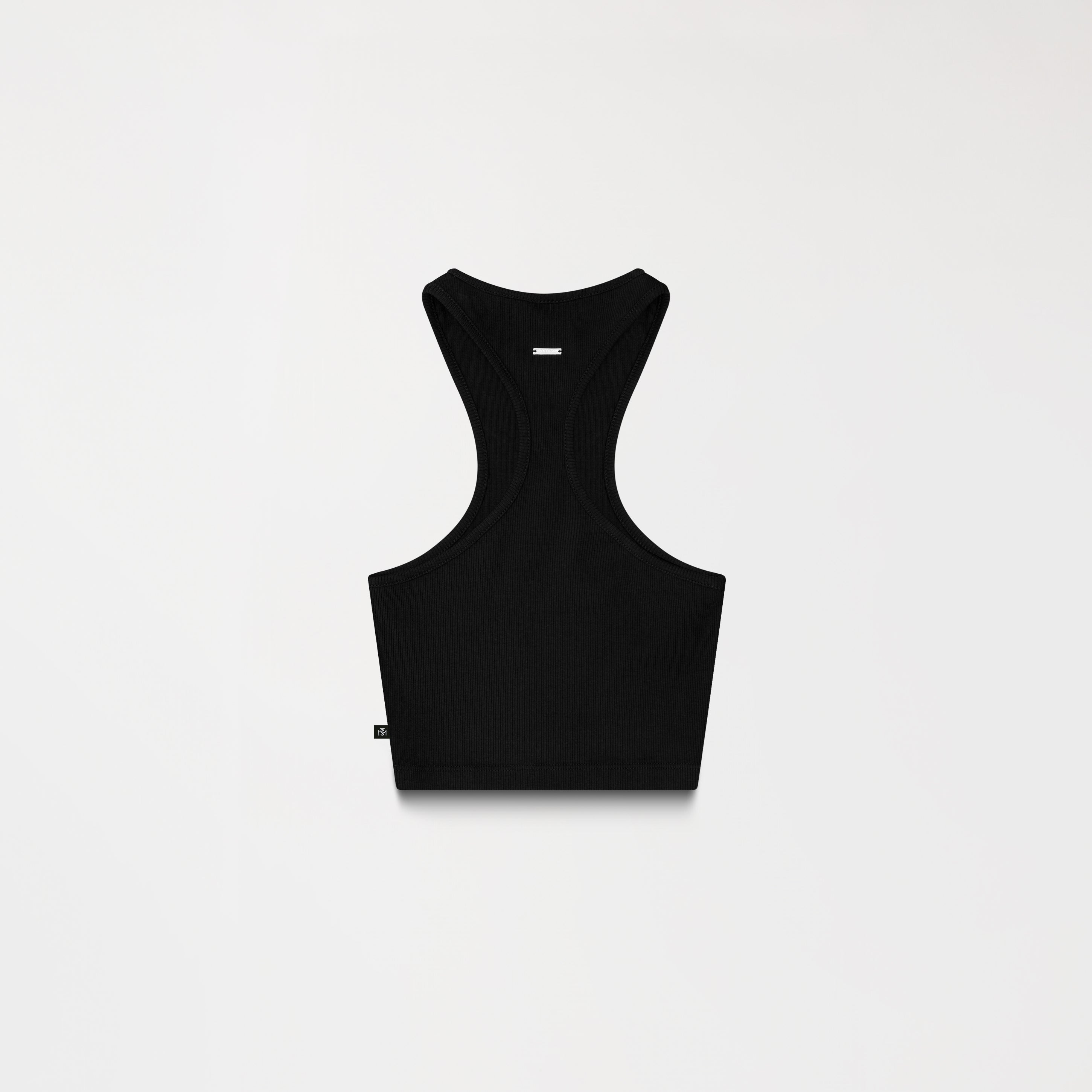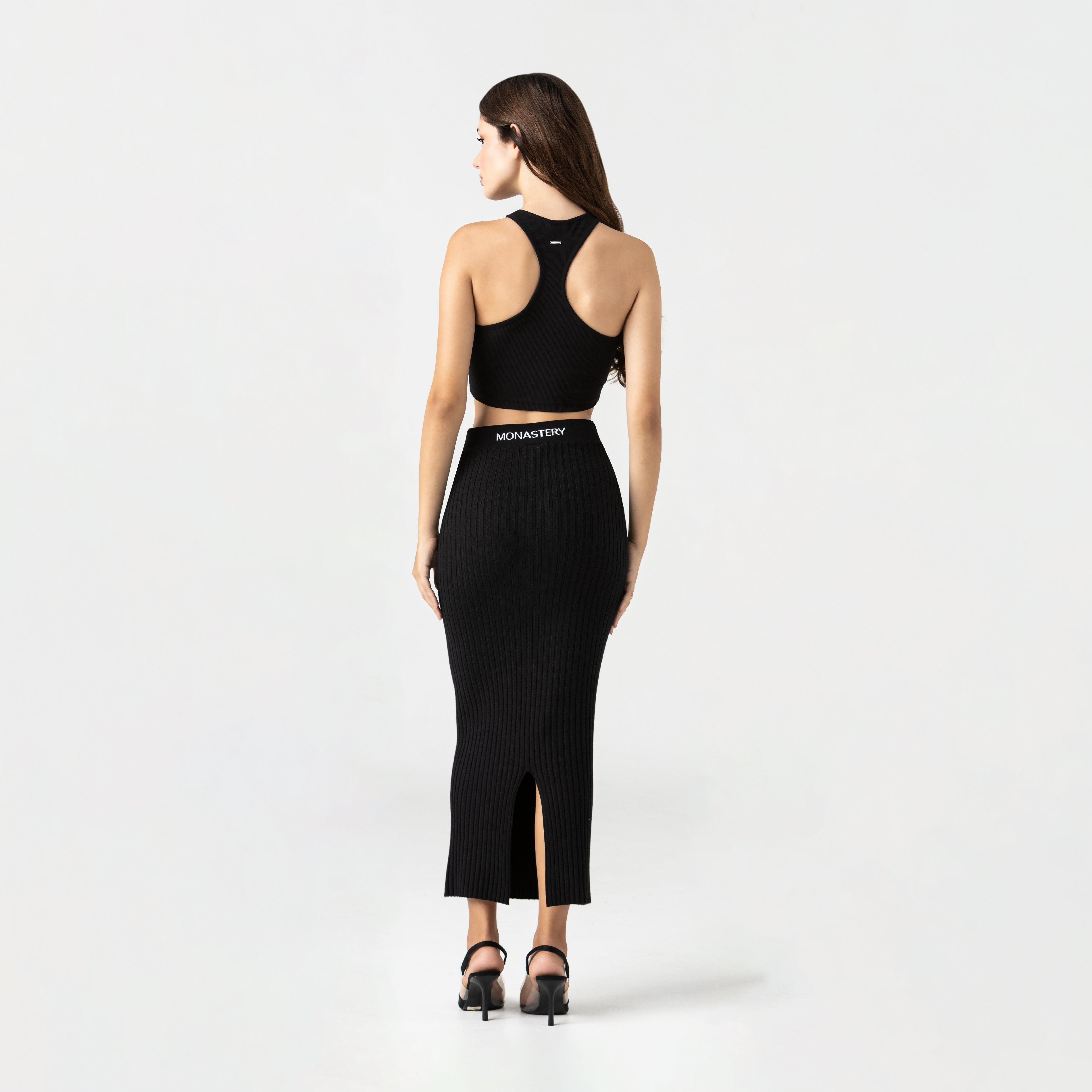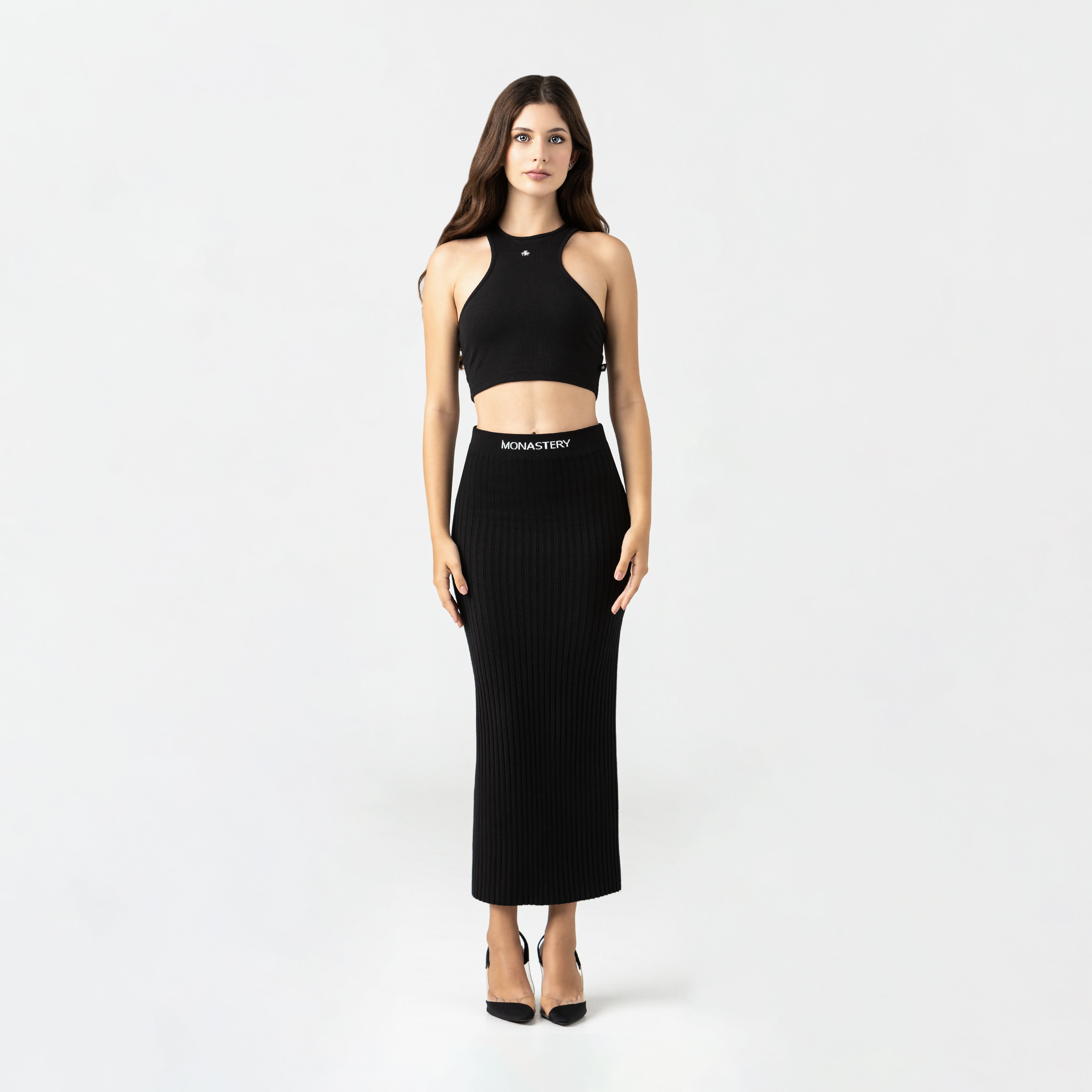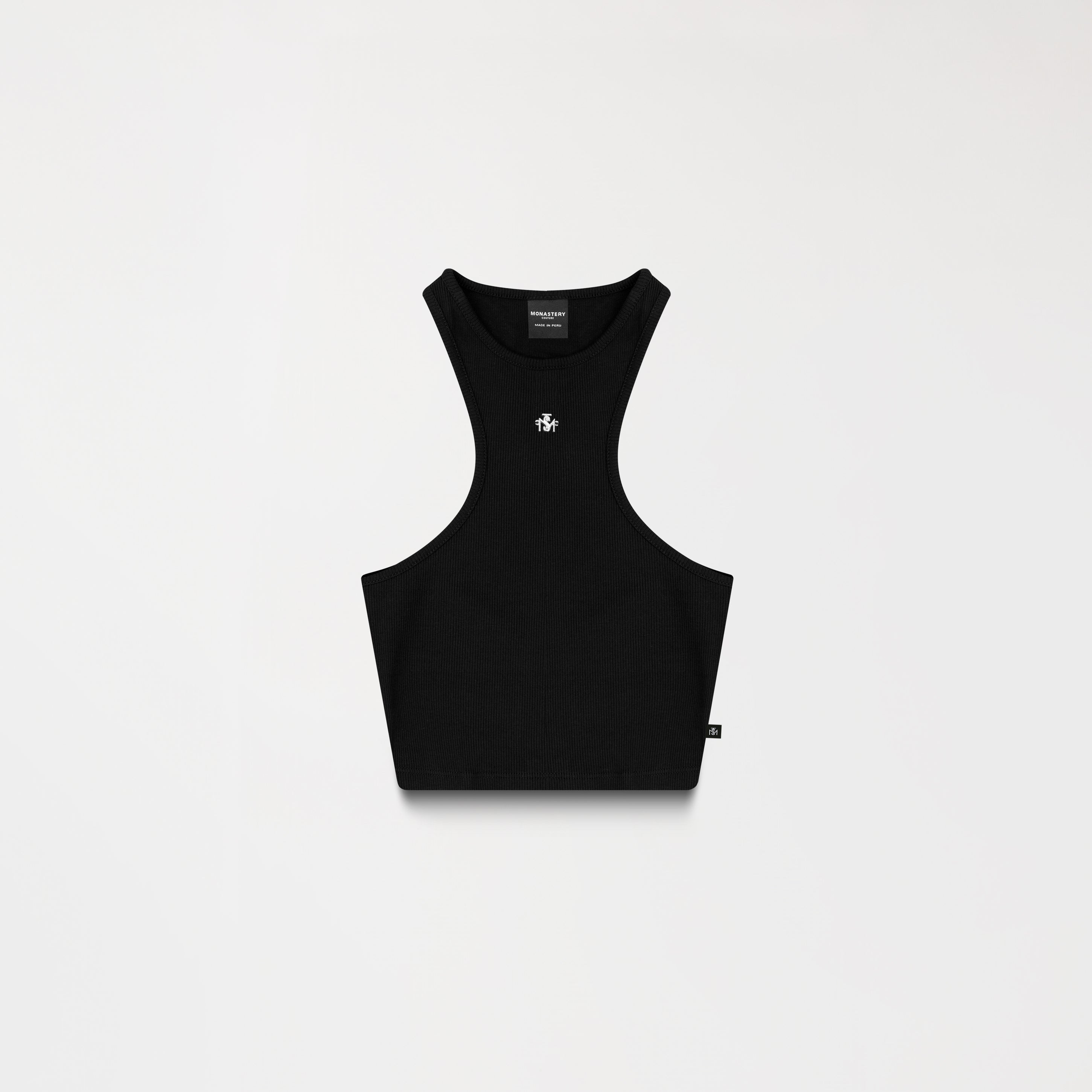 A feminine tank top crafted in rib exclusively for Monastery. With a clean, structured silhouette, Genna features a shiny silver TSM metallic trim that acts as the main visual accent on the front, while the back features a Monastery countermarked trim. The trims in a special silver finish have been exclusively designed, highlighting the value of each detail, reinforcing its identity with a sober and precise aesthetic.