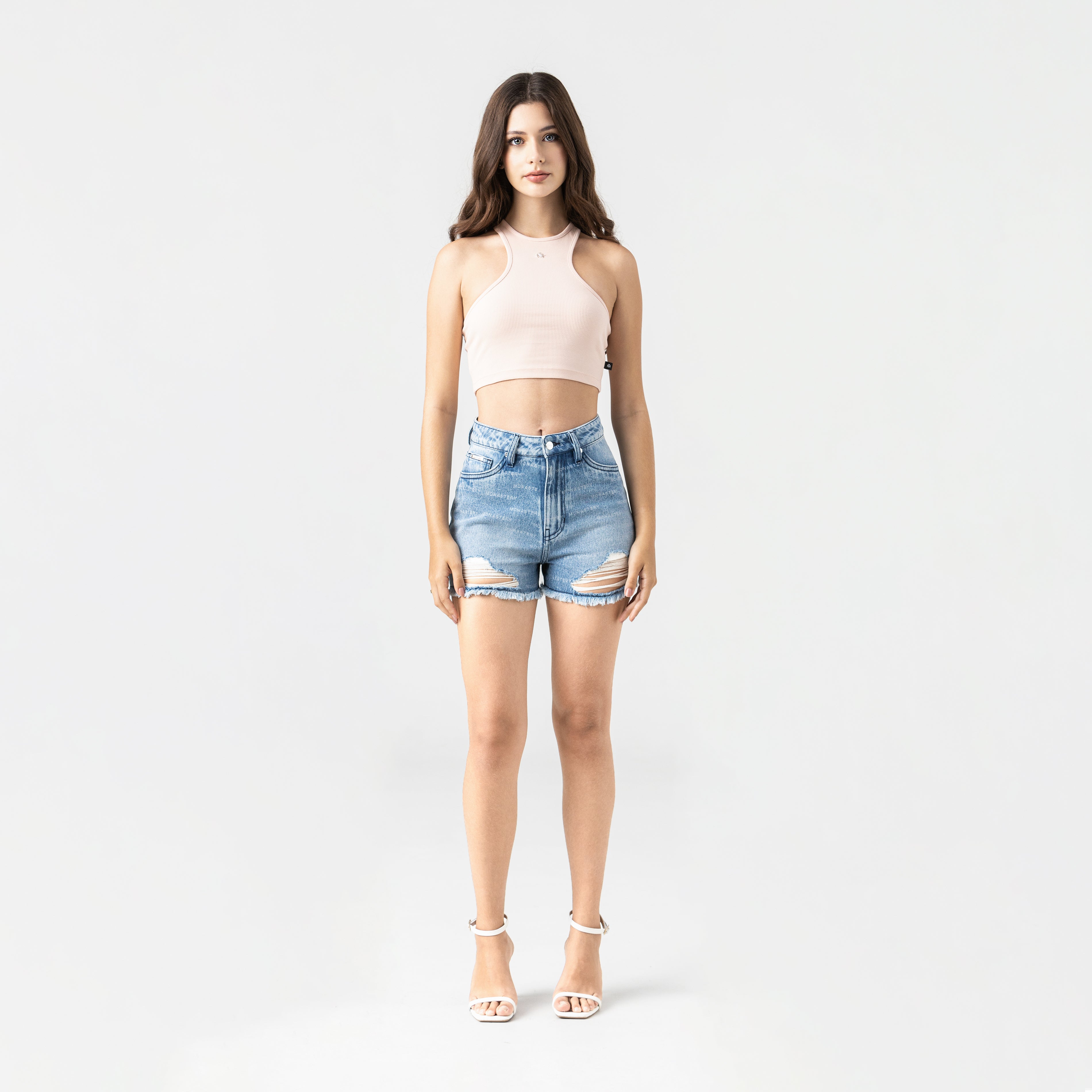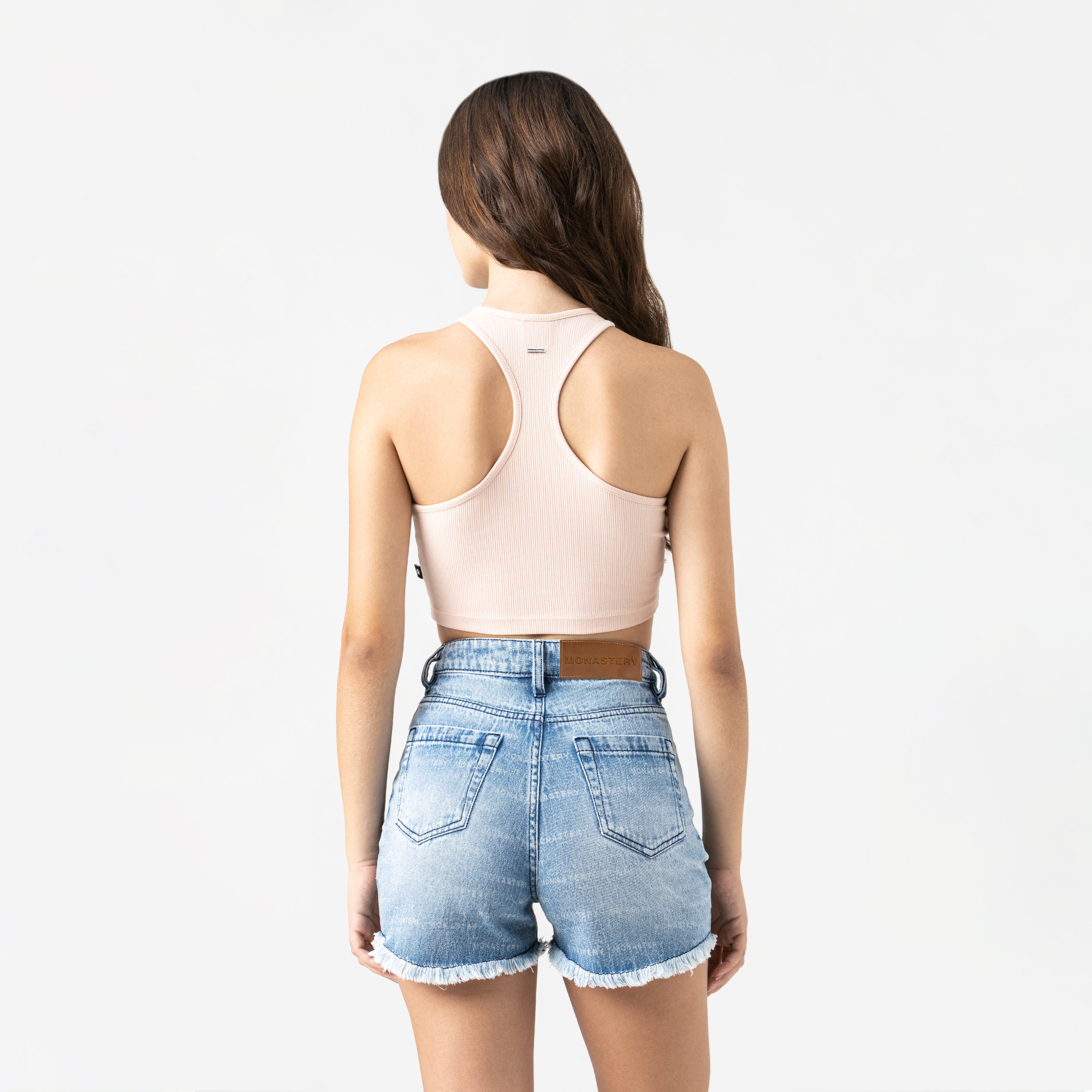 A feminine tank top crafted in rib exclusively for Monastery. With a clean, structured silhouette, Genna features a shiny silver TSM metallic trim that acts as the main visual accent on the front, while the back features a Monastery countermarked trim. The trims in a special silver finish have been exclusively designed, highlighting the value of each detail, reinforcing its identity with a sober and precise aesthetic.