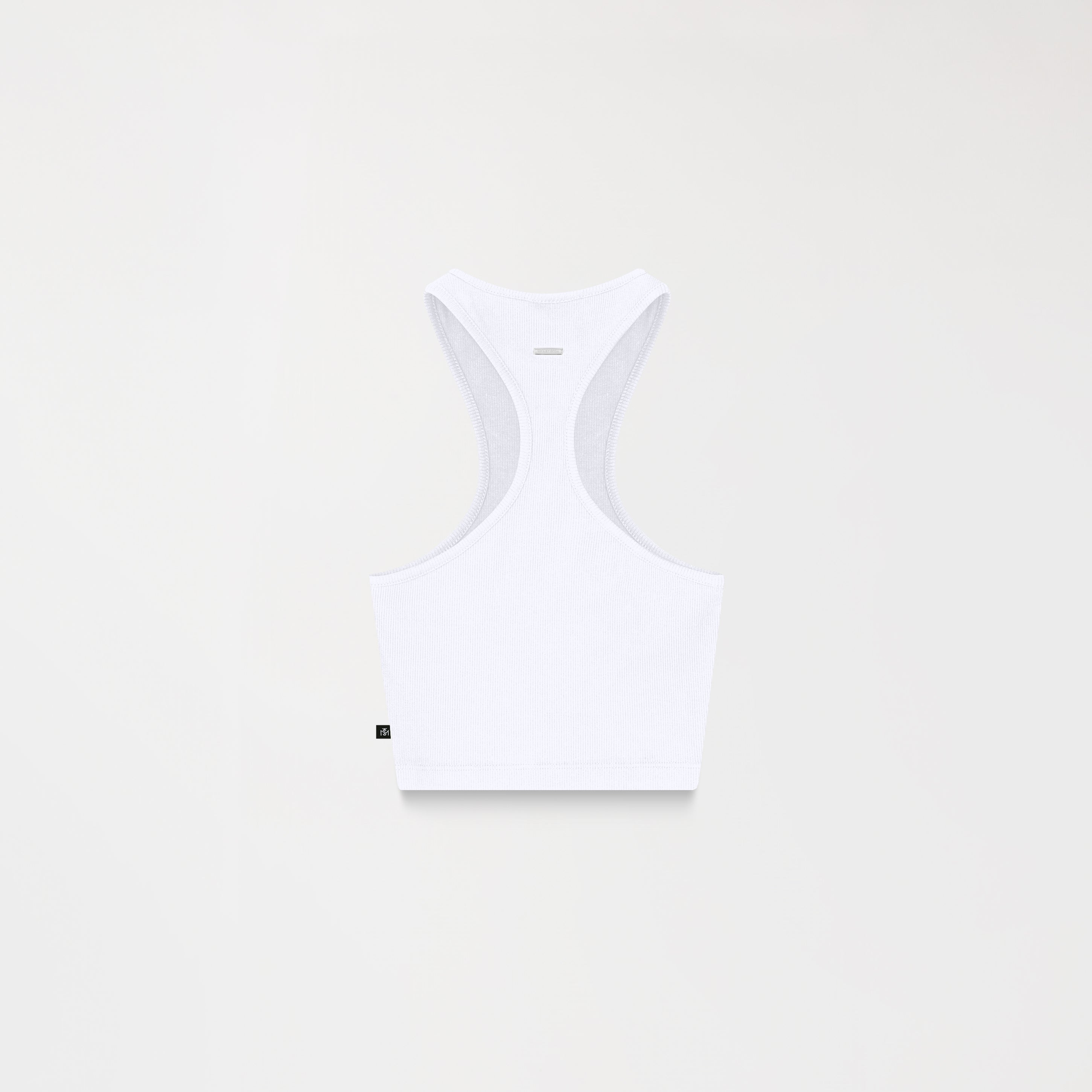 A feminine tank top crafted in rib exclusively for Monastery. With a clean, structured silhouette, Genna features a shiny silver TSM metallic trim that acts as the main visual accent on the front, while the back features a Monastery countermarked trim. The trims in a special silver finish have been exclusively designed, highlighting the value of each detail, reinforcing its identity with a sober and precise aesthetic.