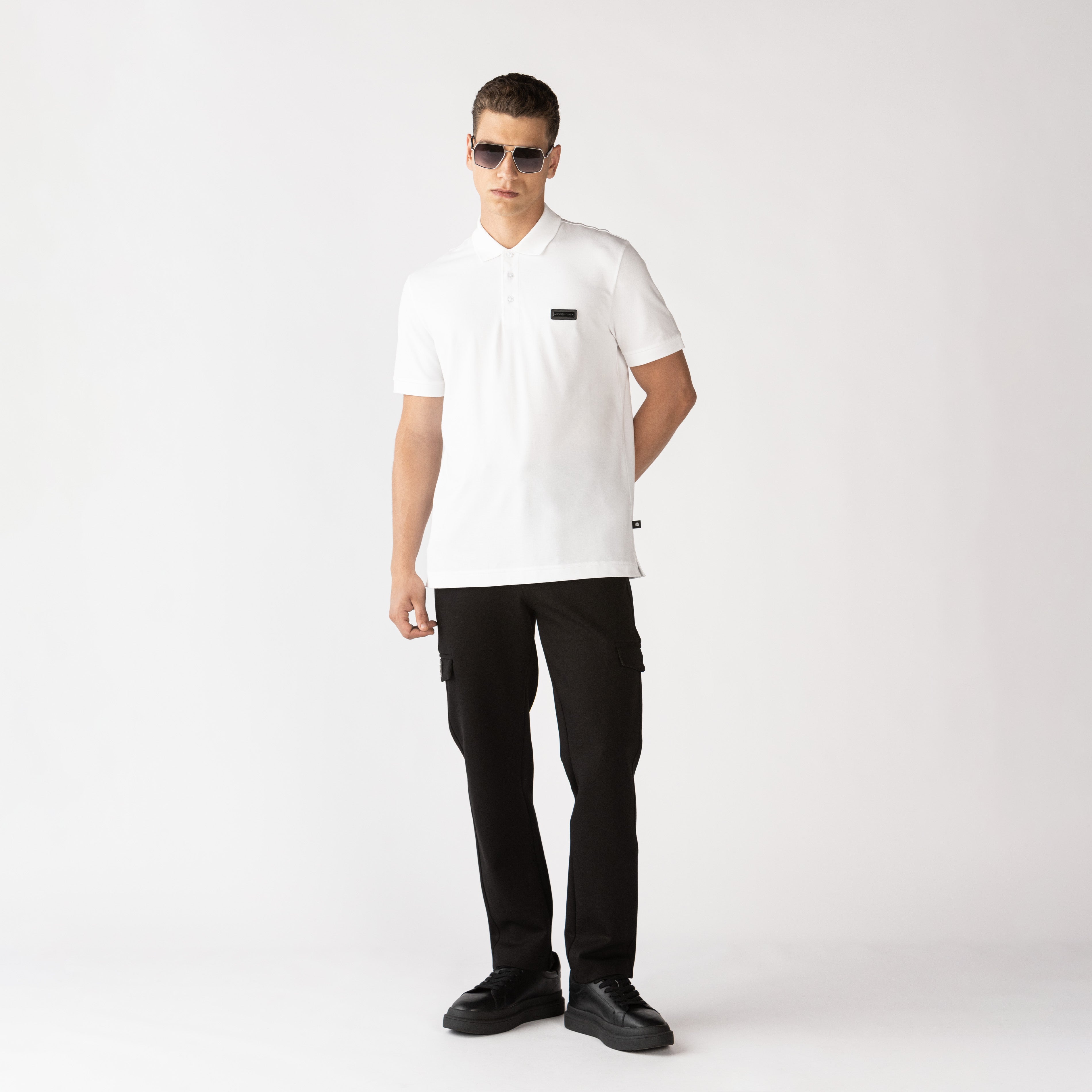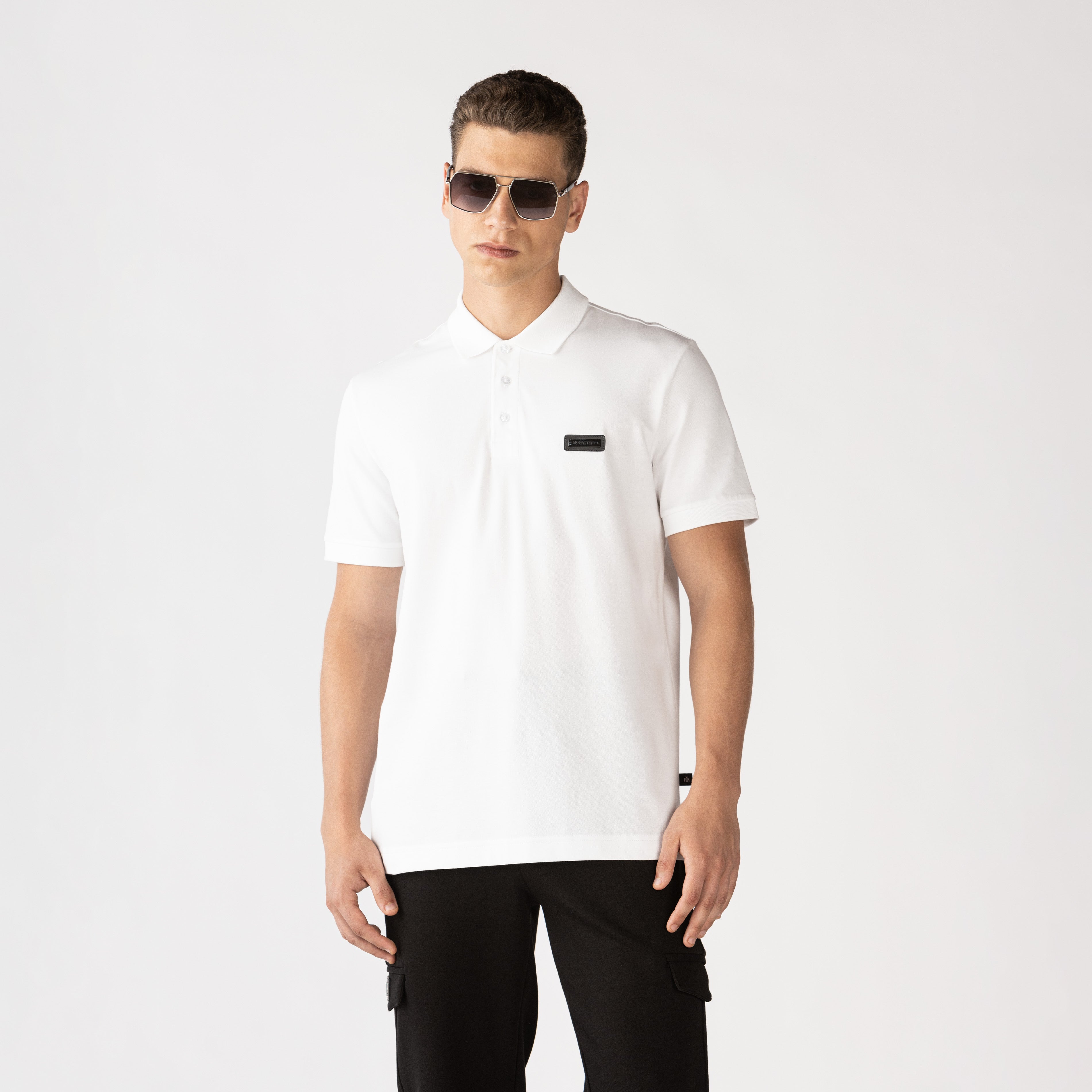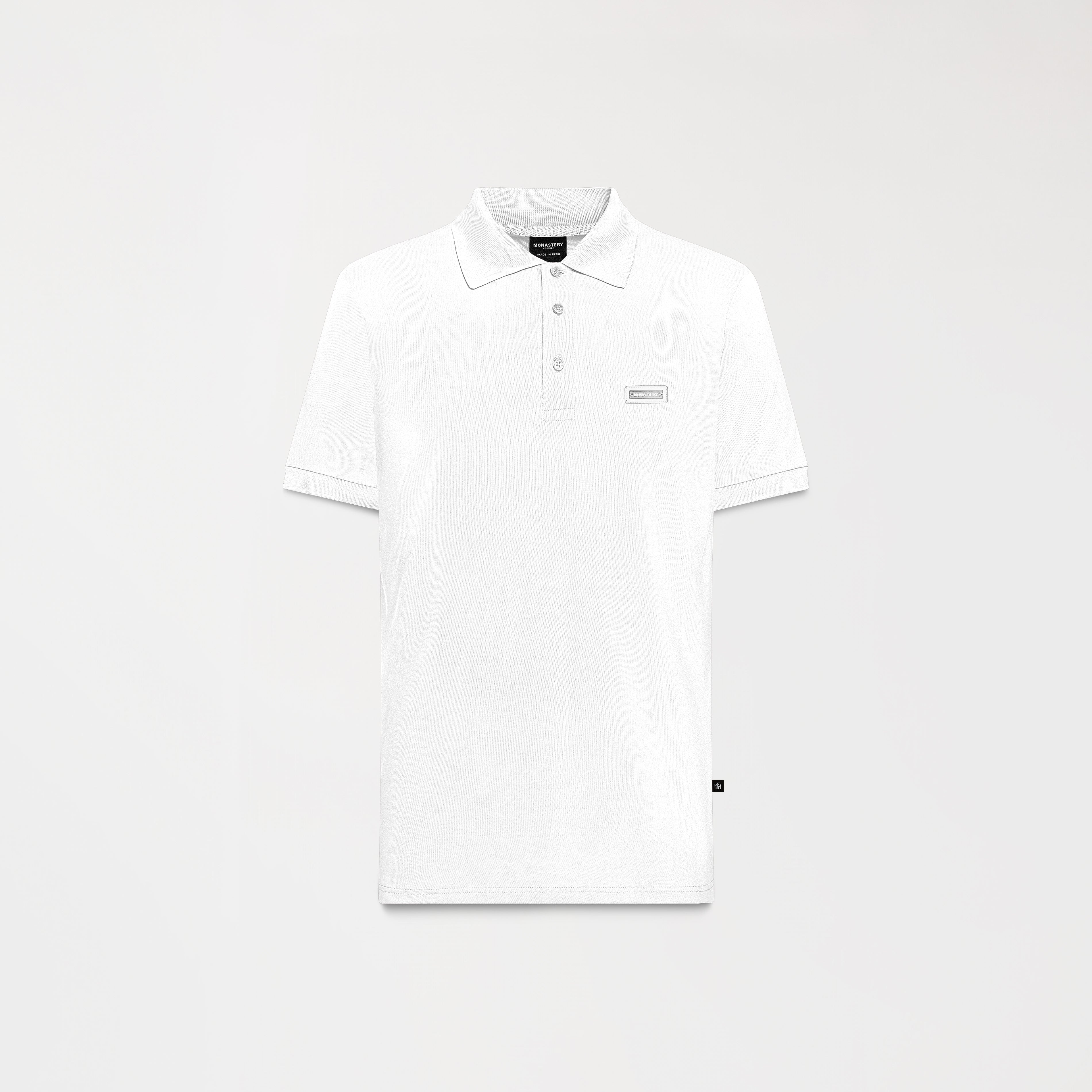White men's polo shirt, made in high quality pique pima exclusive to Monastery, this elegant polo shirt features a distinctive heart stitch applique that adds a unique and sophisticated touch. The design includes knit collar and cuffs that provide a polished finish, while the details on the back are made with high density, stand out for their exclusivity. Ideal for those looking for a modern and refined style.