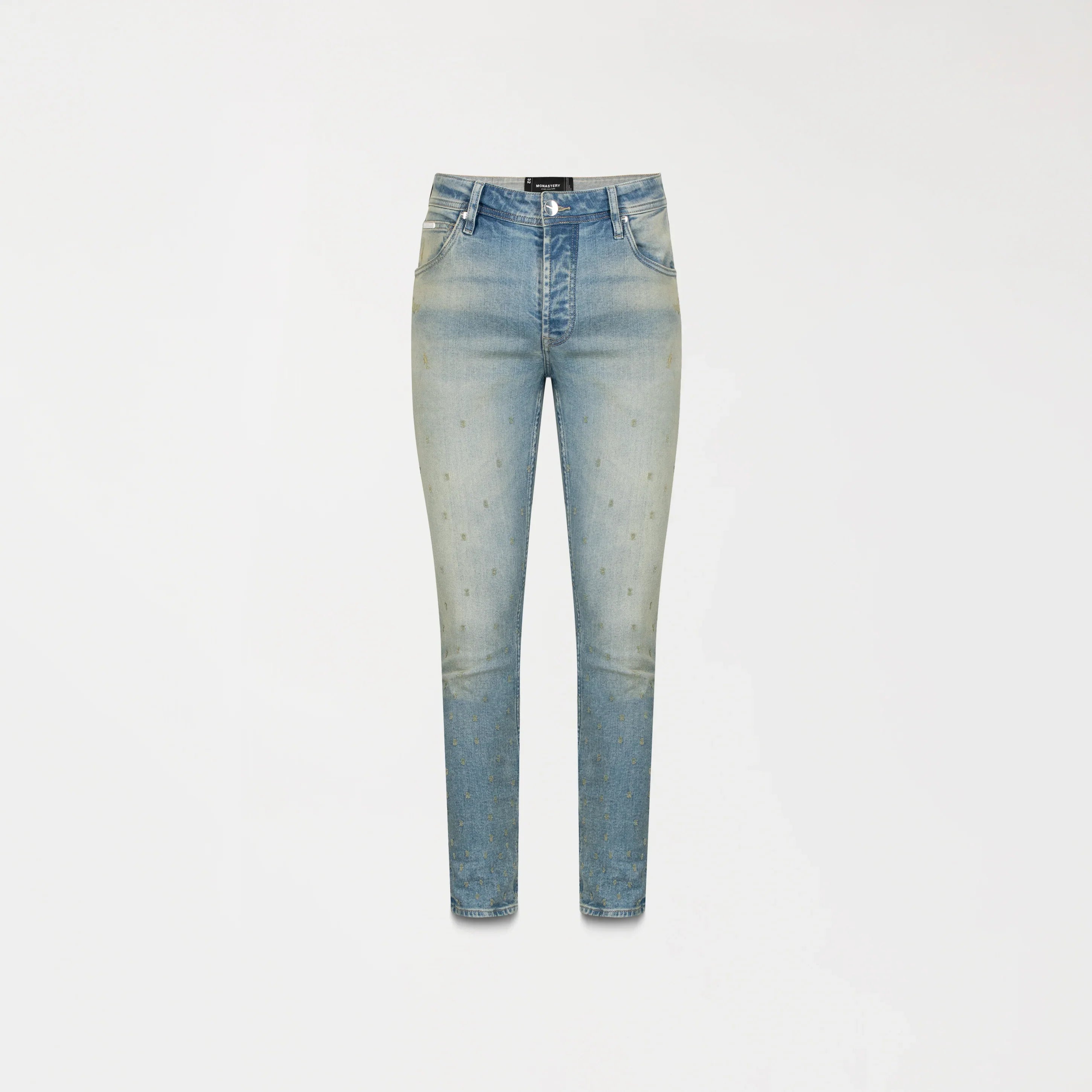Jeans crafted from MST Denim Cal fabric, an exclusive Monastery development renowned for its structure and durability. The washed finish adds texture, depth, and a refined look that enhances the garment's character. The silver metallic hardware, all branded Monastery, is precisely integrated as a signature element. On the back, a black MST-branded claw serves as a distinctive visual and graphic element. A piece that balances technique, design, and construction for those seeking style with durability.