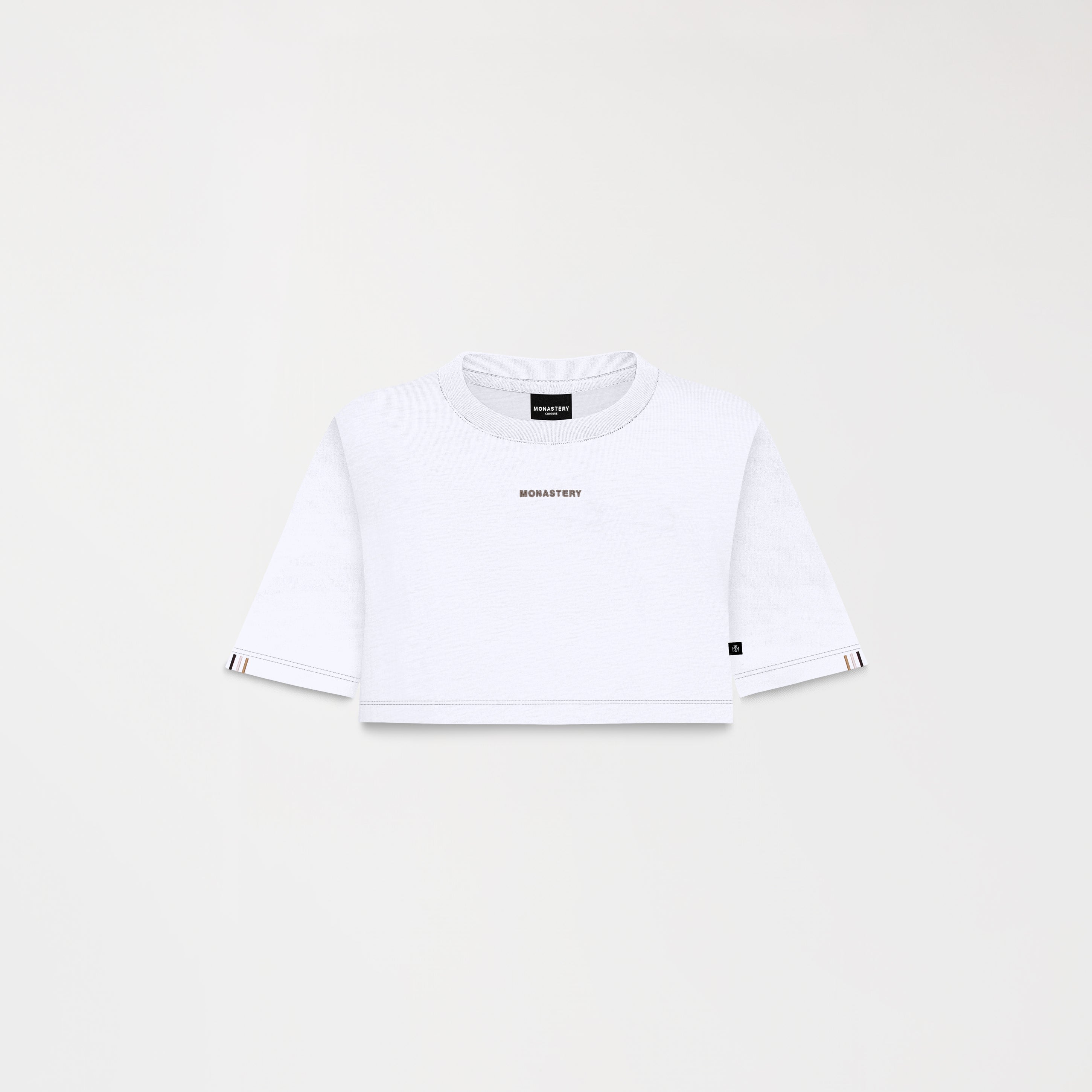 Hazen is a crop top crafted from 100% high-quality, ultra-silicone cotton. This crop top with a small silhouette offers a modern and feminine design. The front features graphic interventions combining flat embroidery and flat print, achieving a visual balance between texture and color. The back features loop-style embroidery in shades of black, white, and Irish Cream, providing a dynamic contrast and handcrafted detail that elevates the garment with a distinctive and sophisticated character.
