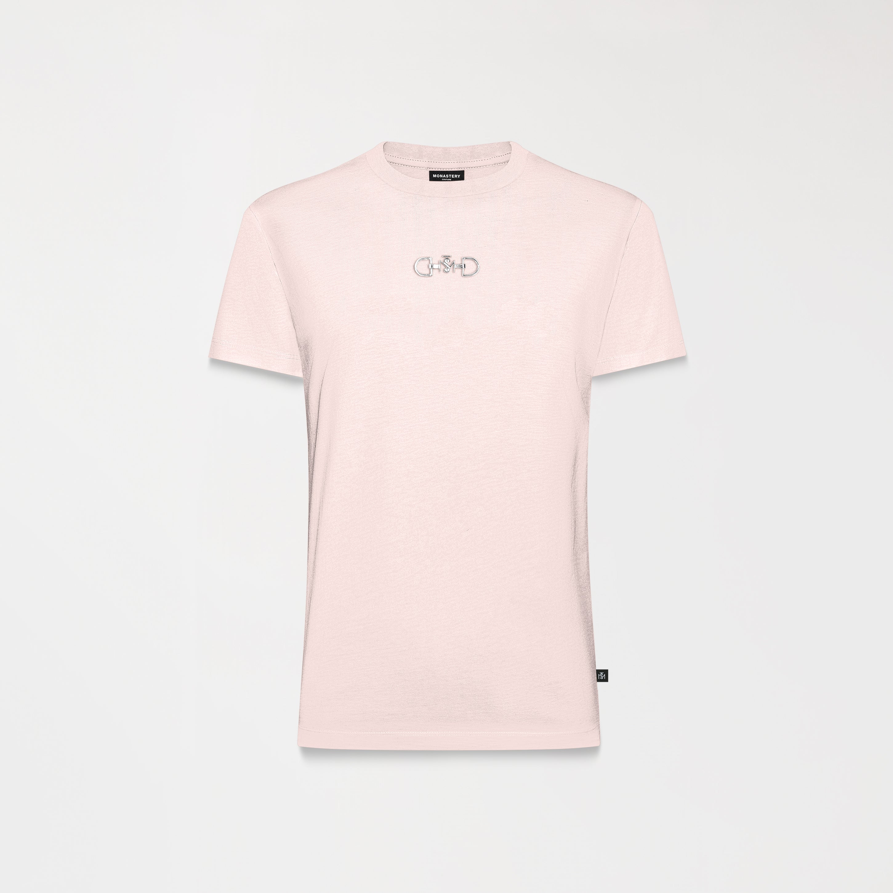 A feminine T-shirt crafted in a small silhouette designed to highlight the feminine figure through its fresh, fitted textile base. Jane is a garment with a high-quality, shiny silver Monastery metallic appliqué on the front and flat-printed insignia logos on the back. Ideal for those looking for a unique and comfortable garment, this T-shirt easily adapts to any casual look with details that give it a distinctive and modern touch.