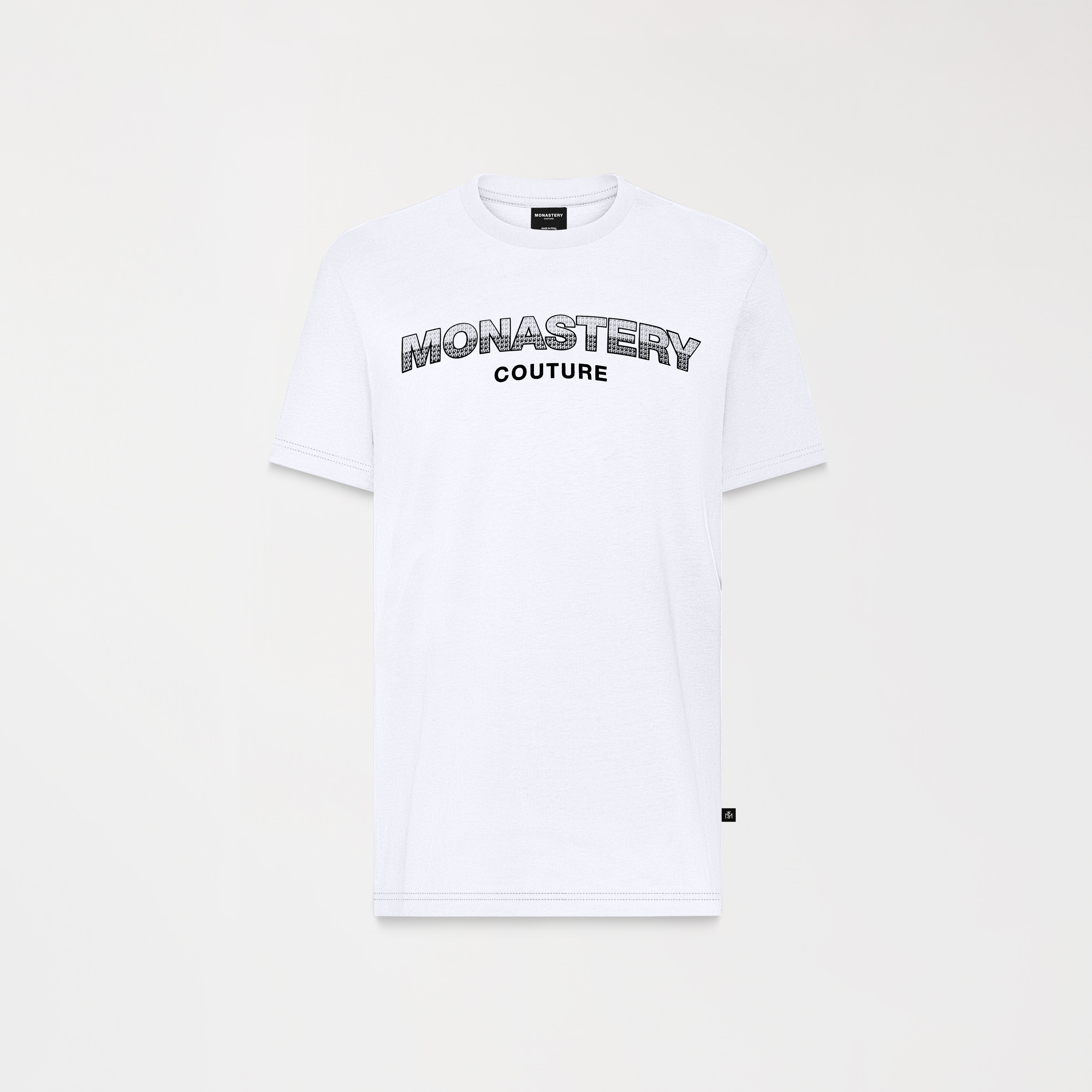 Designed for those who appreciate graphic detail and quality finishes. Made from Monastery fabric, it offers a soft, durable texture and excellent drape. Its design incorporates a 2.5 cm ribbed collar, which provides structure and definition to the silhouette. The graphic combines two complementary techniques: a high-density print, which provides texture and volume, along with a flat plastisol, which balances with precision and visual clarity. A garment that stands out for its graphic character and impeccable execution—ideal for style-conscious looks.