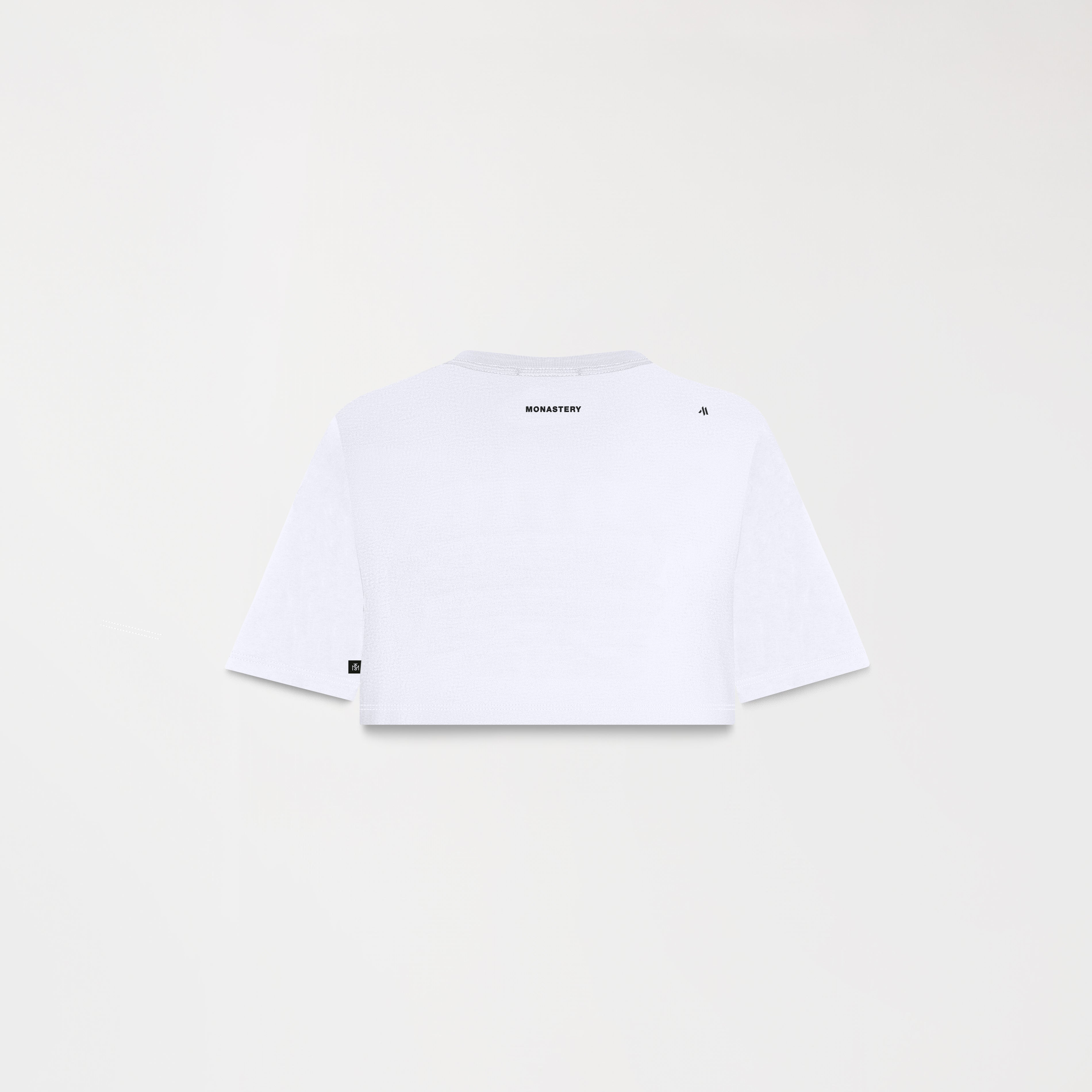 Small silhouette crop top made of high-quality Peruvian cotton. The Kelyn style features a flat vinyl print on the front and traditional logos on the back applied using a high-density technique, offering a versatile, modern design with finishes that stand out for their detail and texture.