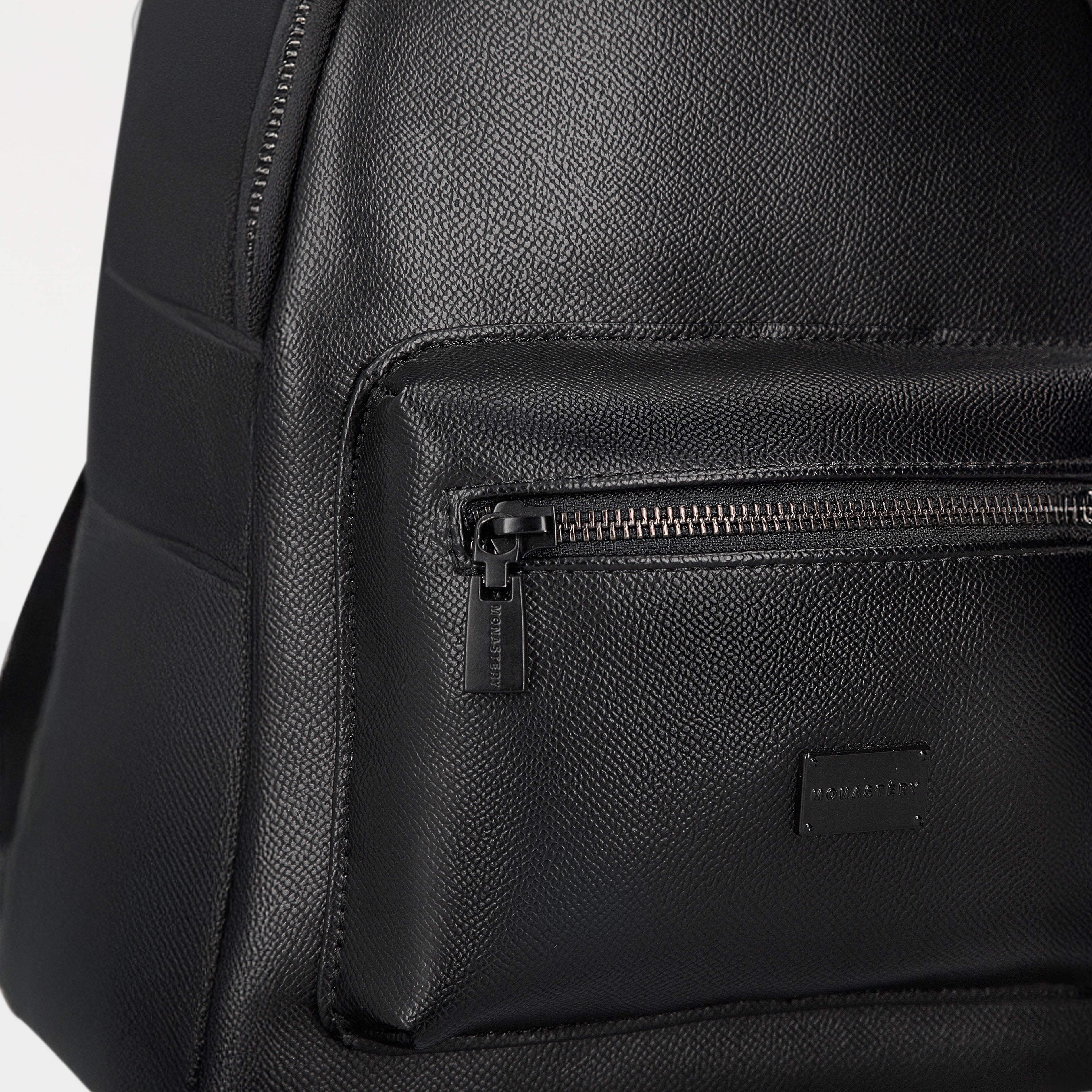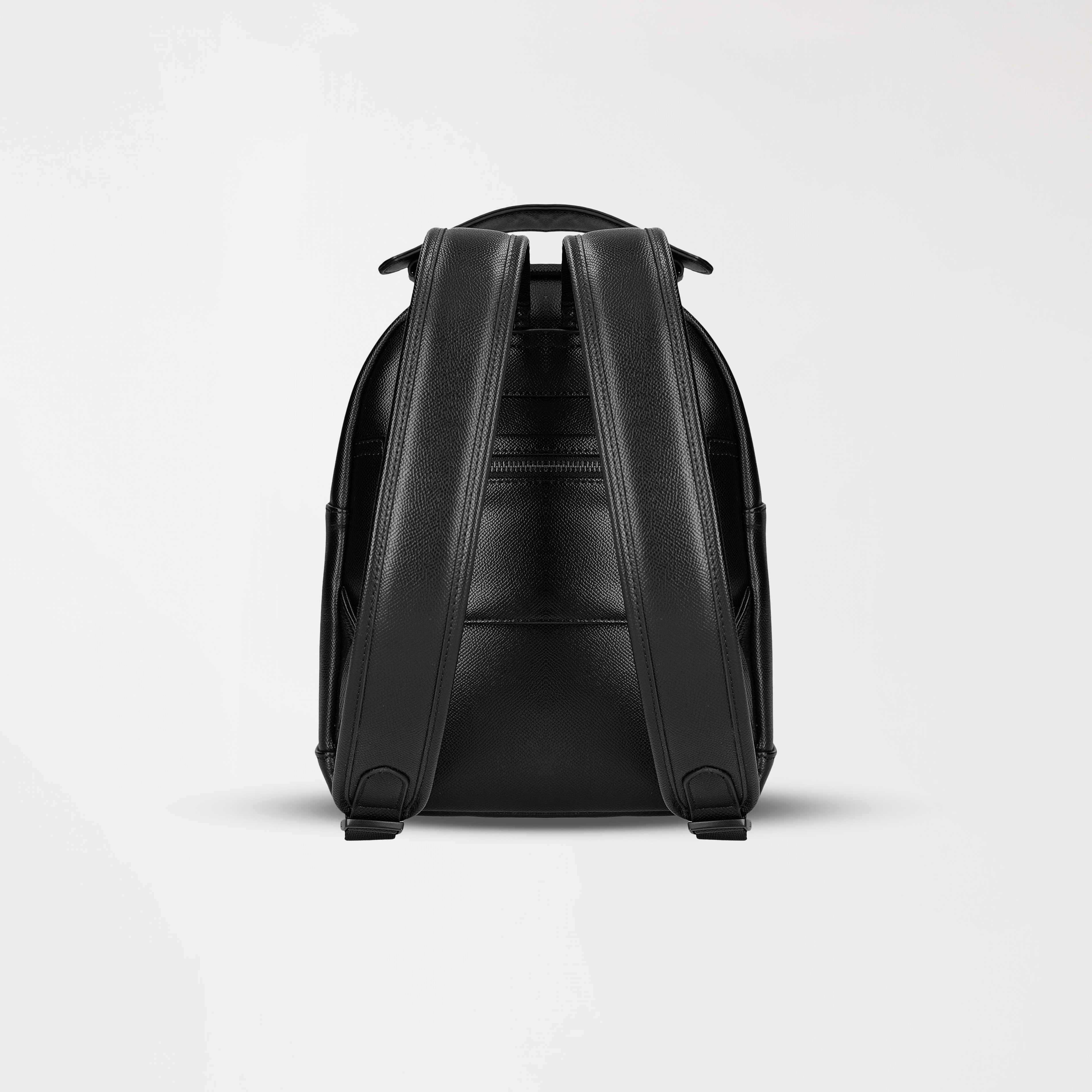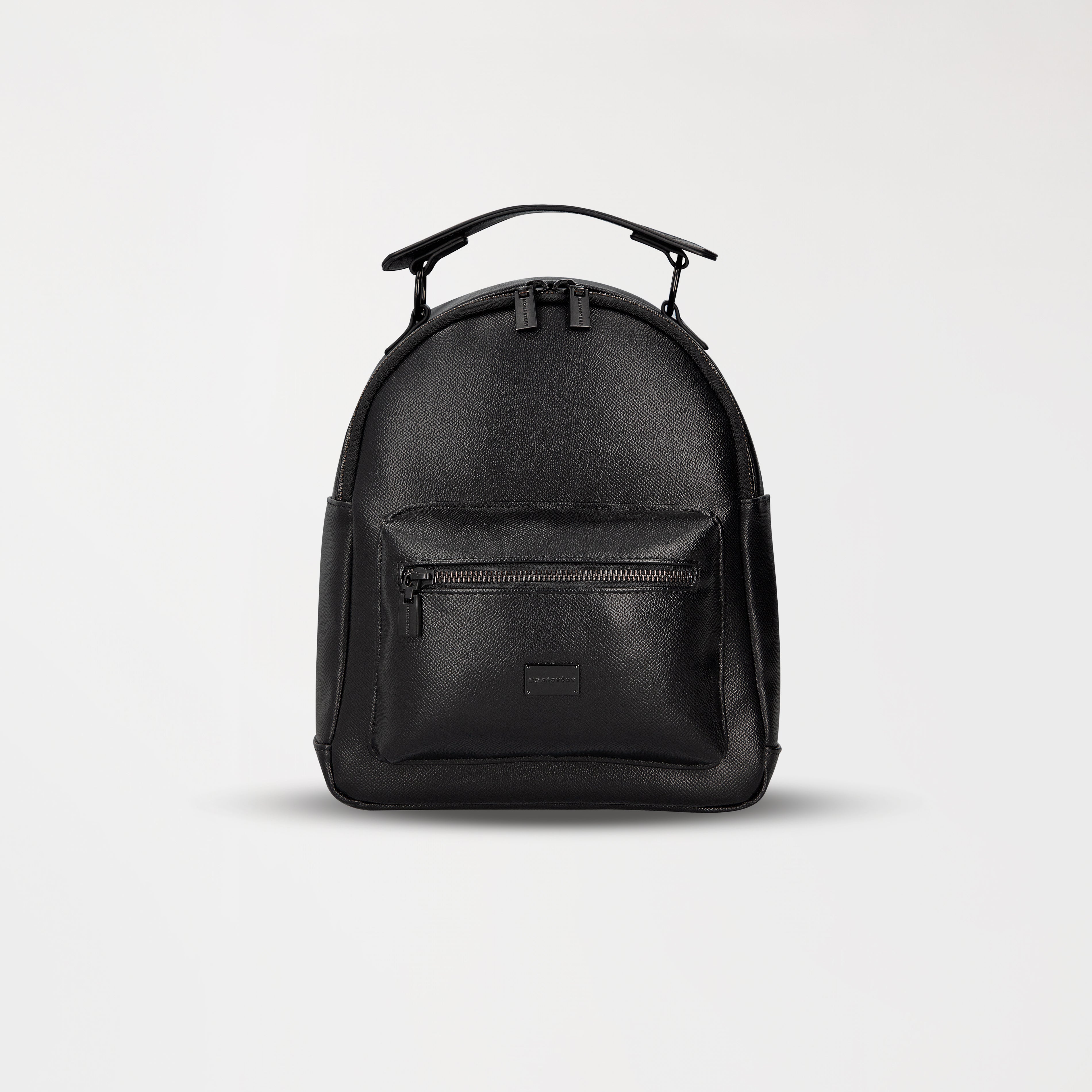 Backpack made of polyurethane with a polyester lining, a handle with an embossed logo, and easy-access pockets. It includes a pocket for your essentials, as well as a front pocket for easy access to your wallet, keys, cell phone, and other items. Metallic appliqués and counter-marked hardware, all with onyx finishes, make this piece ideal for casual outings, offering a balance between modern style and practicality.