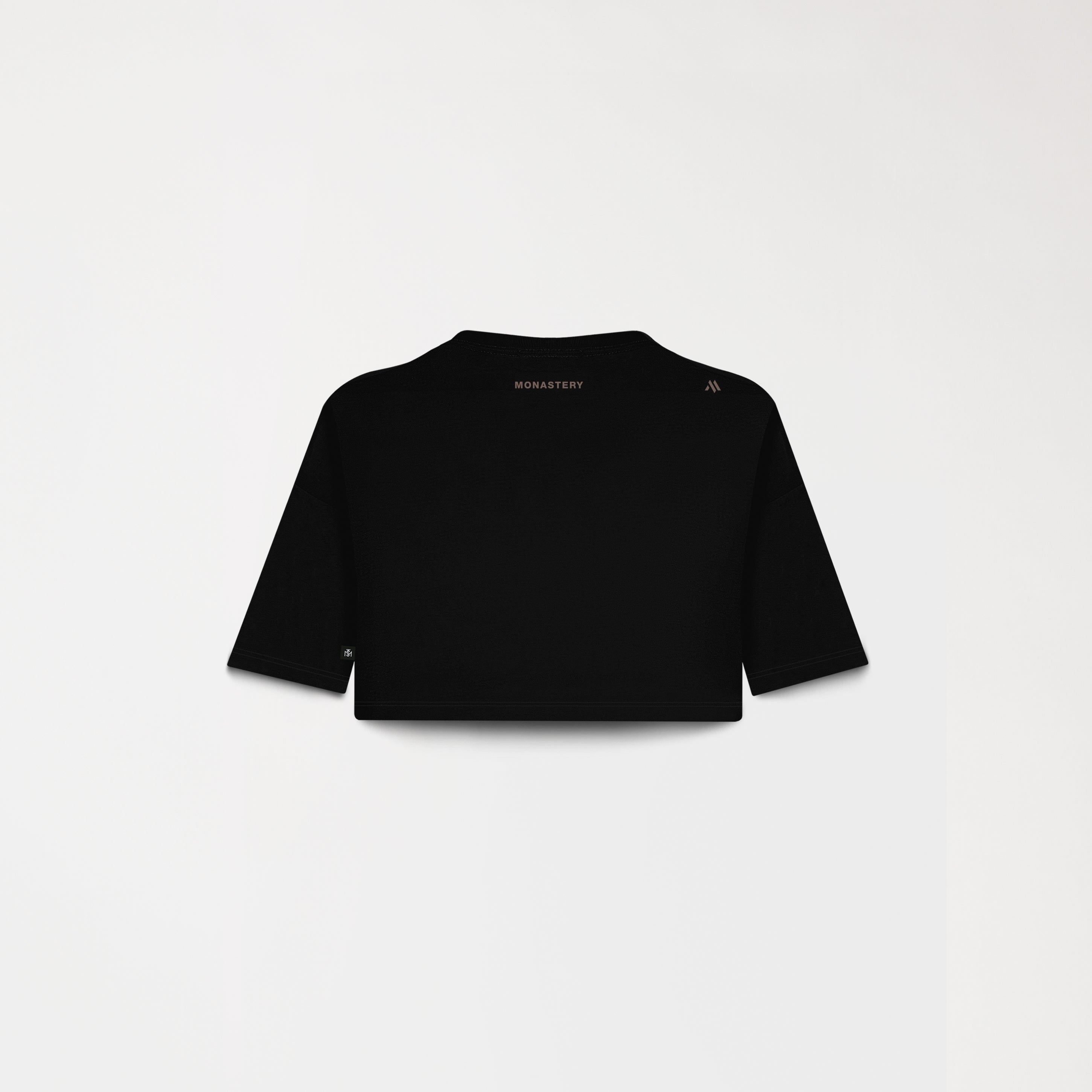 Med is a crop top made from 100% high-quality, ultra-siliconized cotton, providing softness, breathability, and a perfect fit. Designed in a petite silhouette and available in three colors—white, black, and White Asparagus, an exclusive shade from the collection—it features a multi-colored flat embroidery on the front, inspired by the season's key colors. The back incorporates flat print artwork that complements and balances the design, creating a versatile and sophisticated piece.