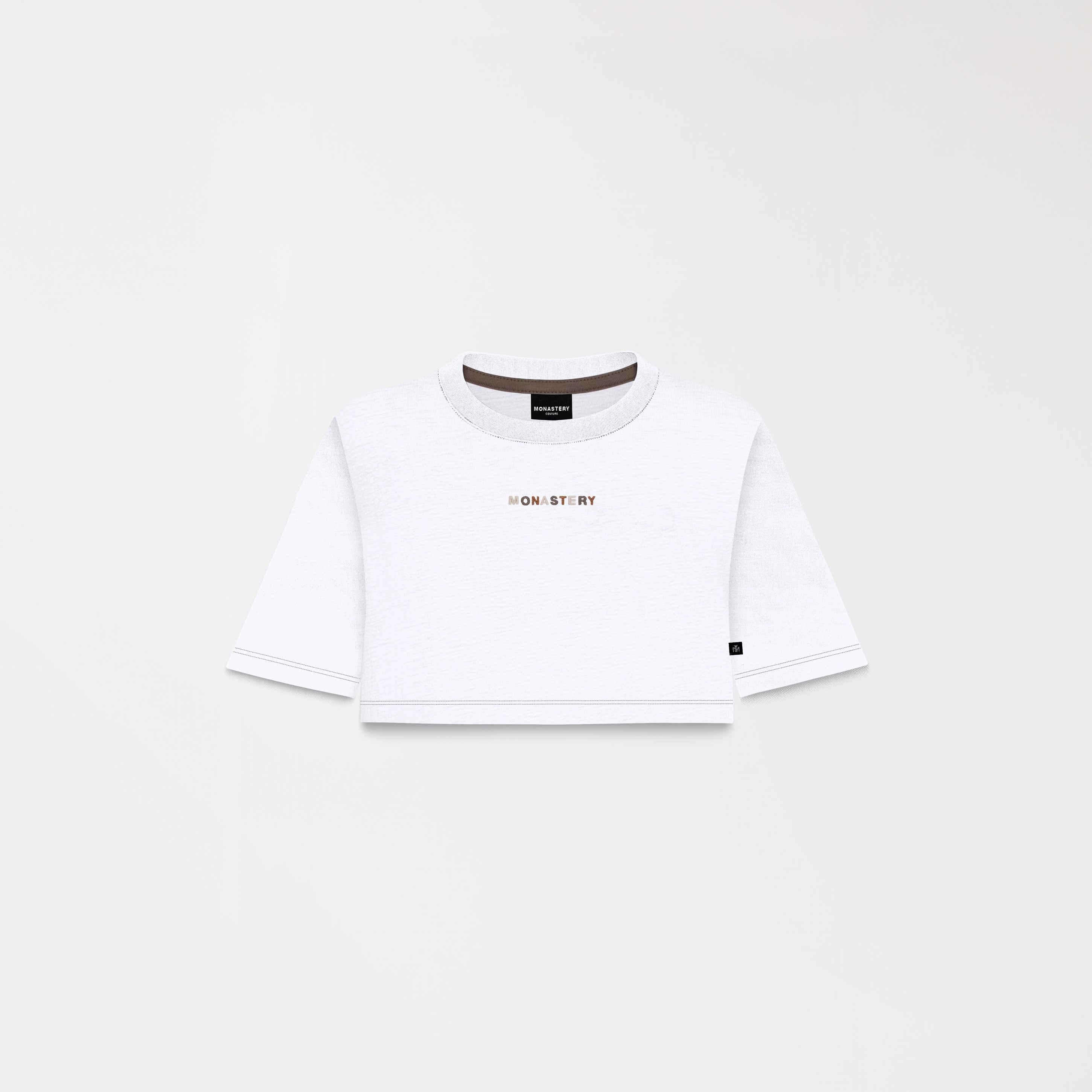 Med is a crop top made from 100% high-quality, ultra-siliconized cotton, providing softness, breathability, and a perfect fit. Designed in a petite silhouette and available in three colors—white, black, and White Asparagus, an exclusive shade from the collection—it features a multi-colored flat embroidery on the front, inspired by the season's key colors. The back incorporates flat print artwork that complements and balances the design, creating a versatile and sophisticated piece.