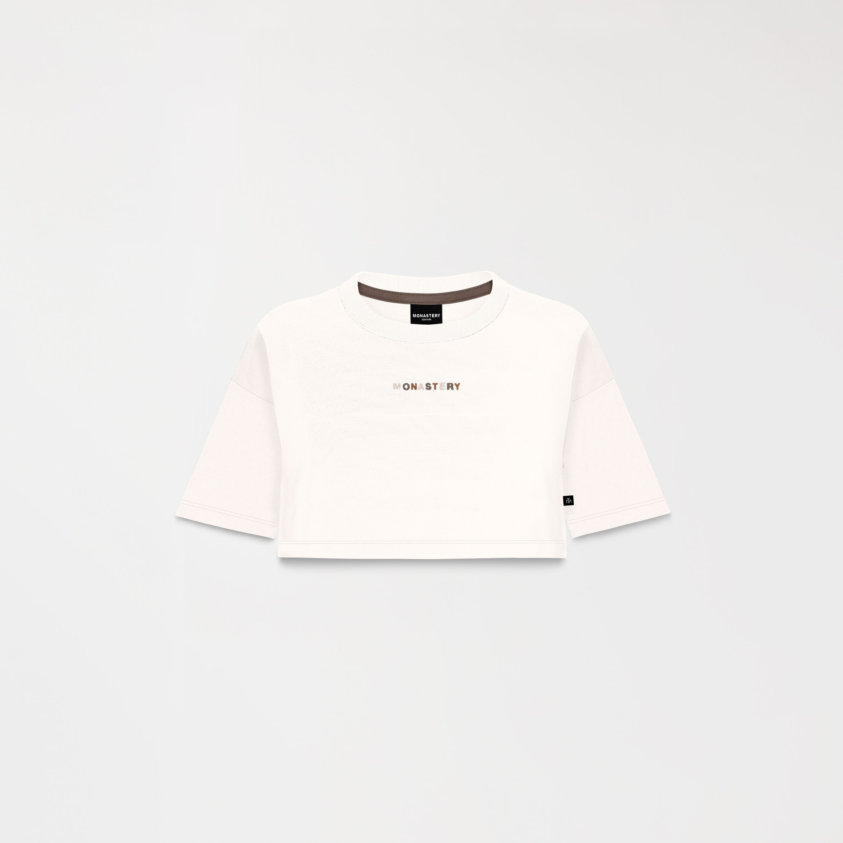 Med is a crop top made from 100% high-quality, ultra-siliconized cotton, providing softness, breathability, and a perfect fit. Designed in a petite silhouette and available in three colors—white, black, and White Asparagus, an exclusive shade from the collection—it features a multi-colored flat embroidery on the front, inspired by the season's key colors. The back incorporates flat print artwork that complements and balances the design, creating a versatile and sophisticated piece.