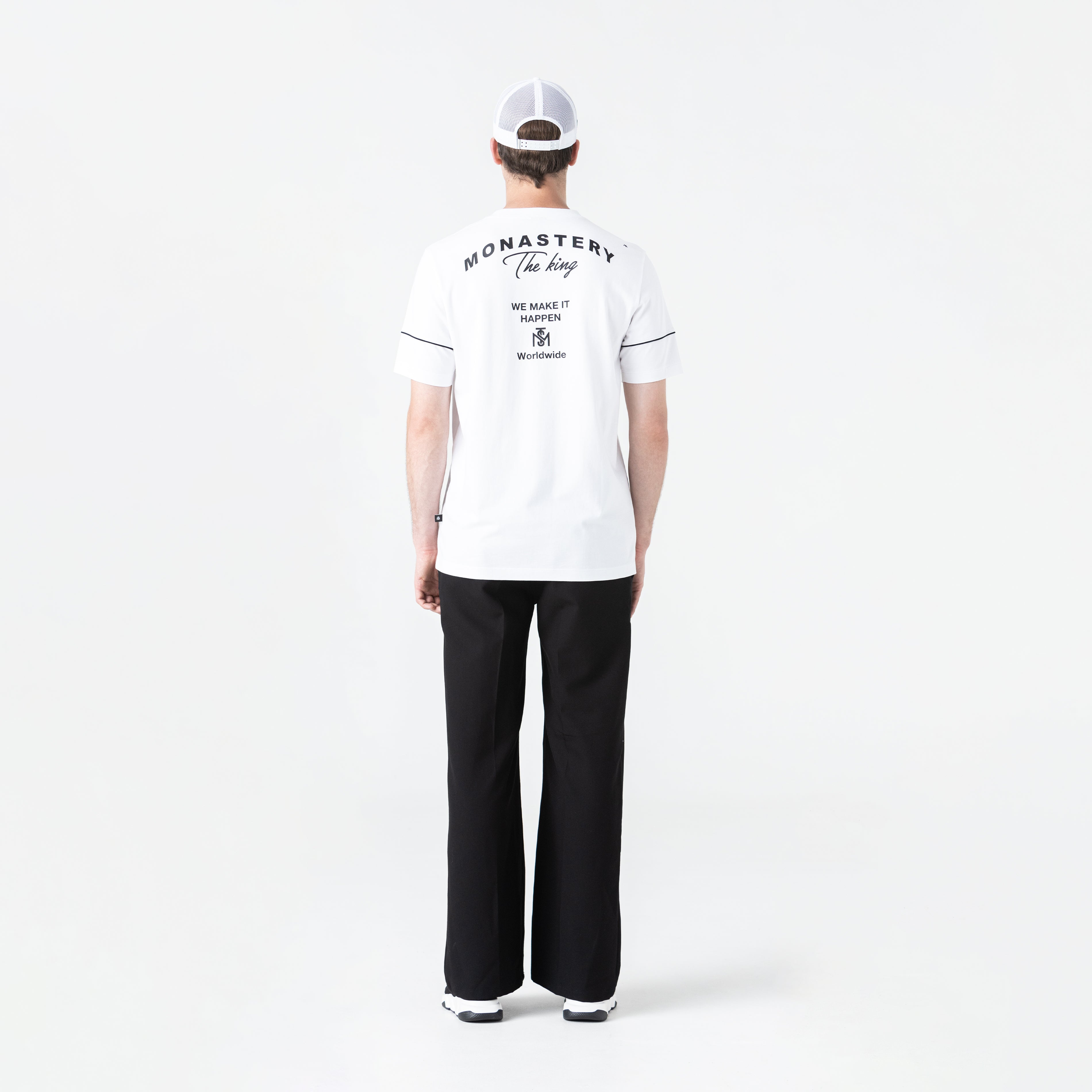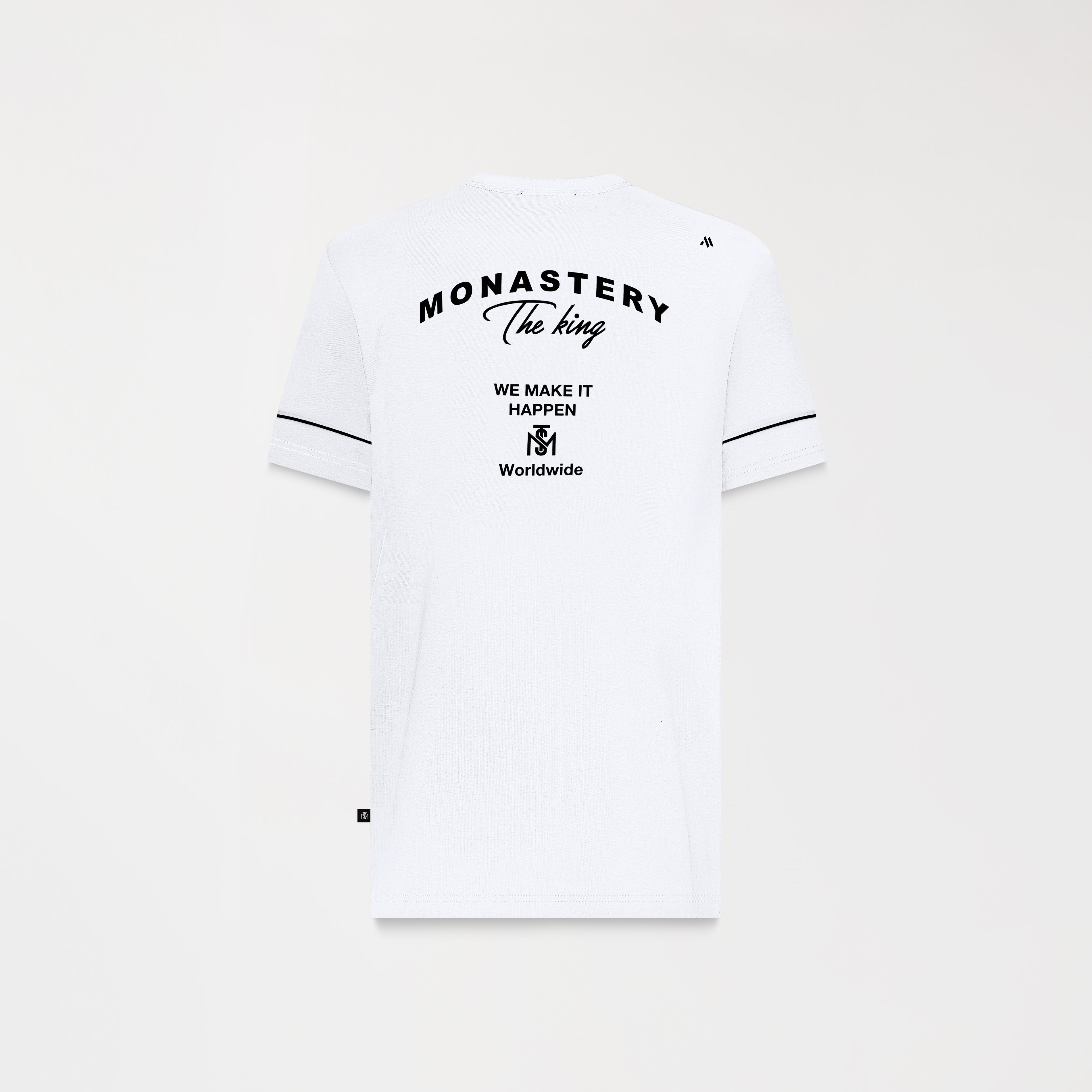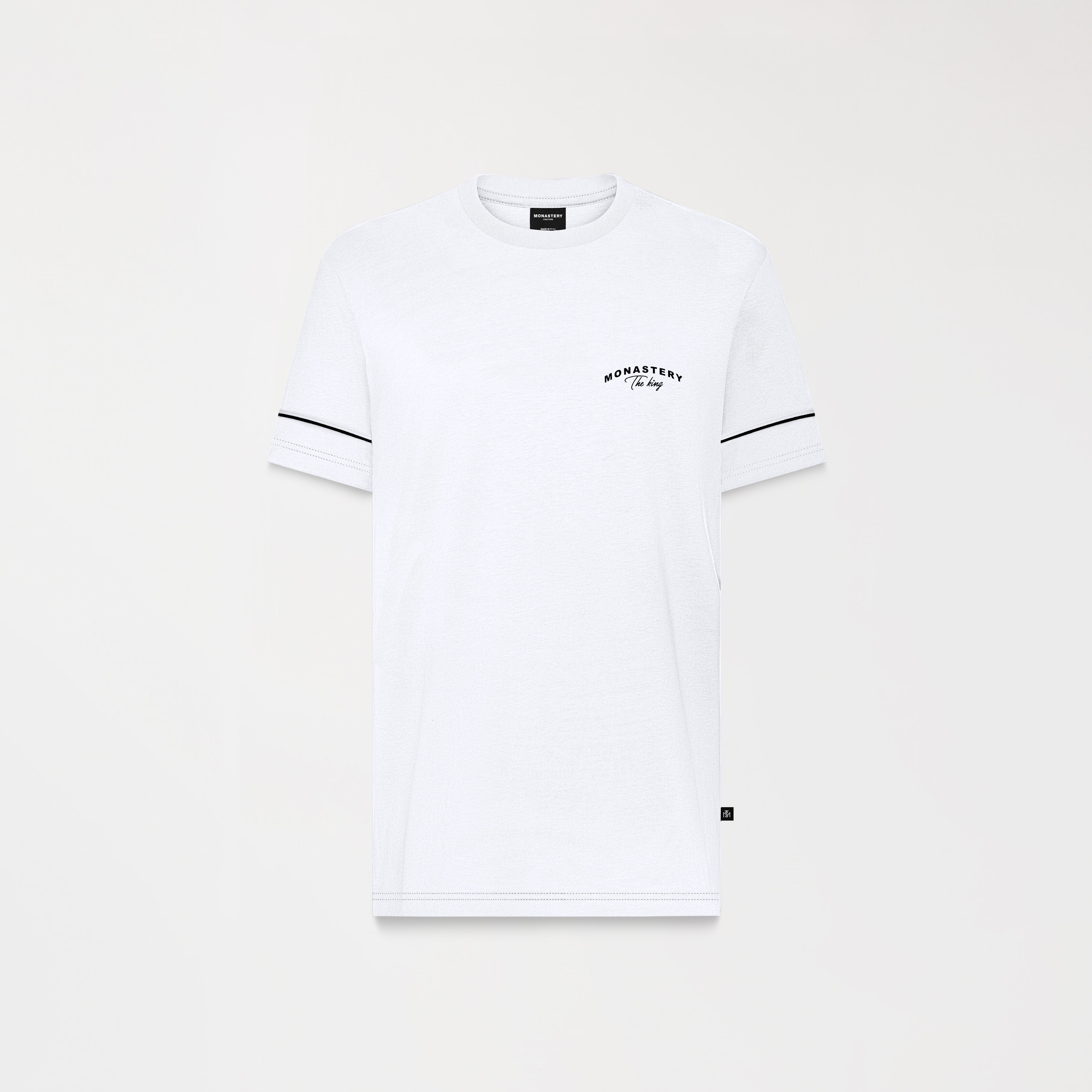 Nox is a cool, comfortable men's t-shirt featuring the Monastery logo art in a heart-stitch pattern using a matte plastisol transfer technique. The back features high-density Monastery logo art, making this garment a dynamic and modern piece. Crafted in a regular fit with a 2.5cm ribbed neckline in 100% cotton, exclusive to the brand.
