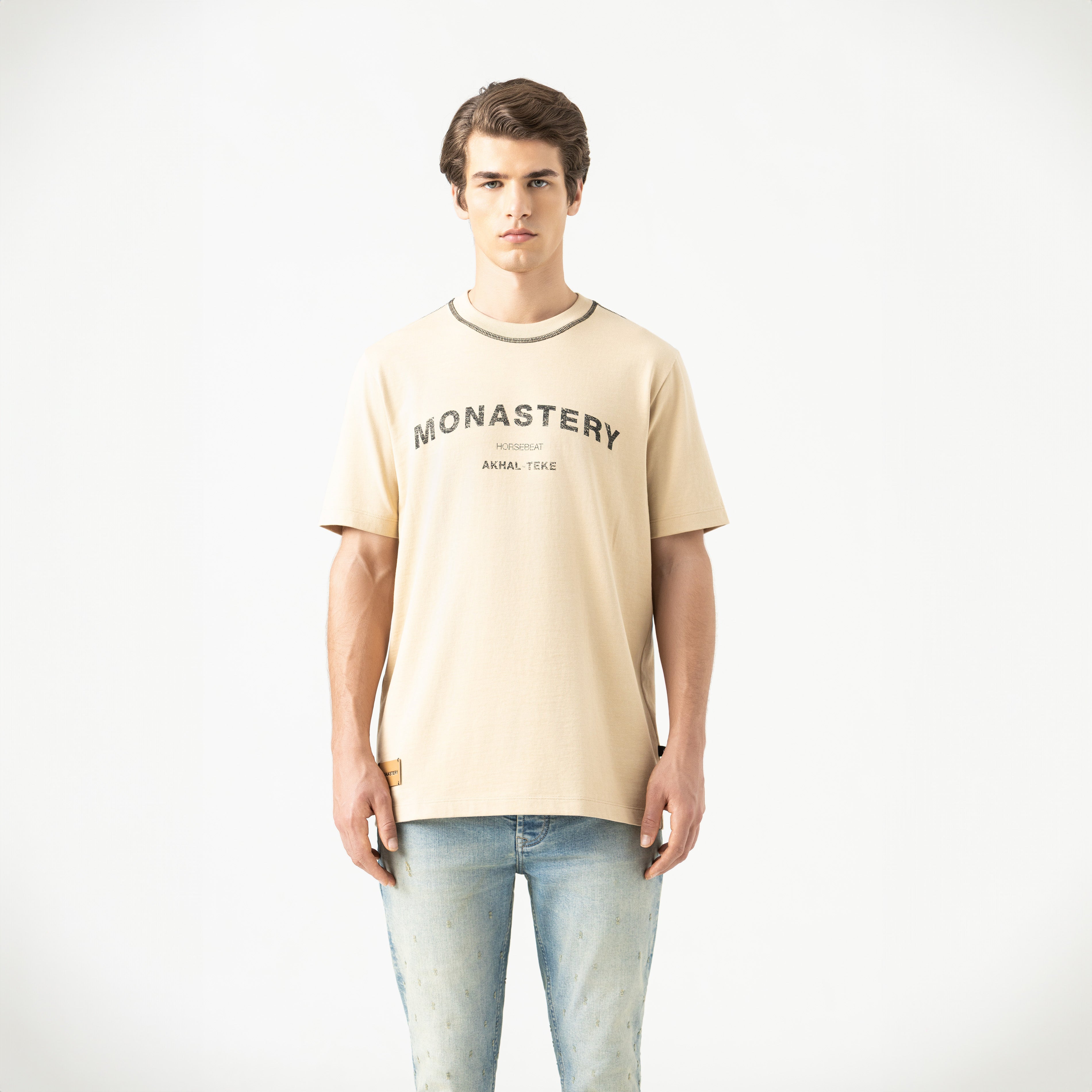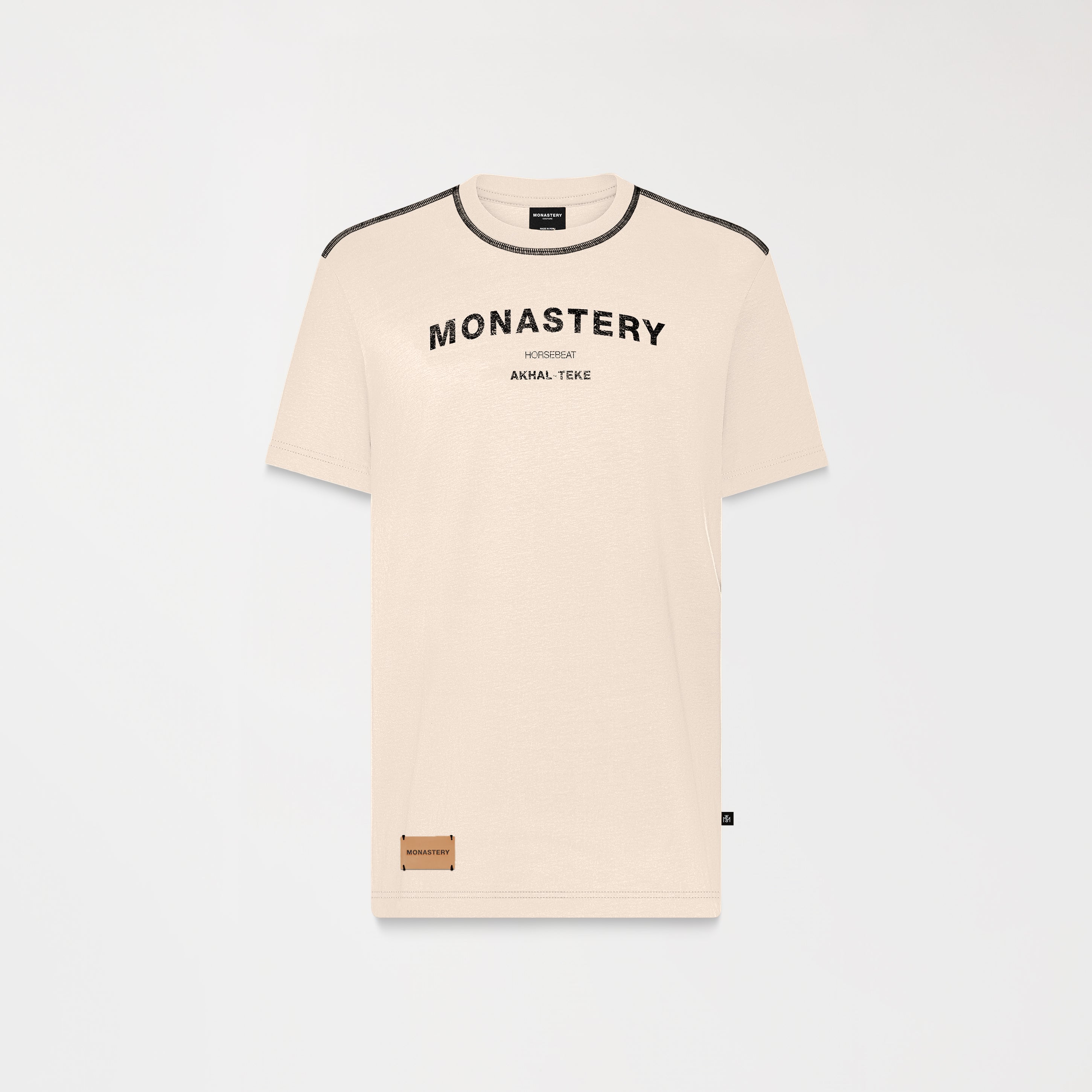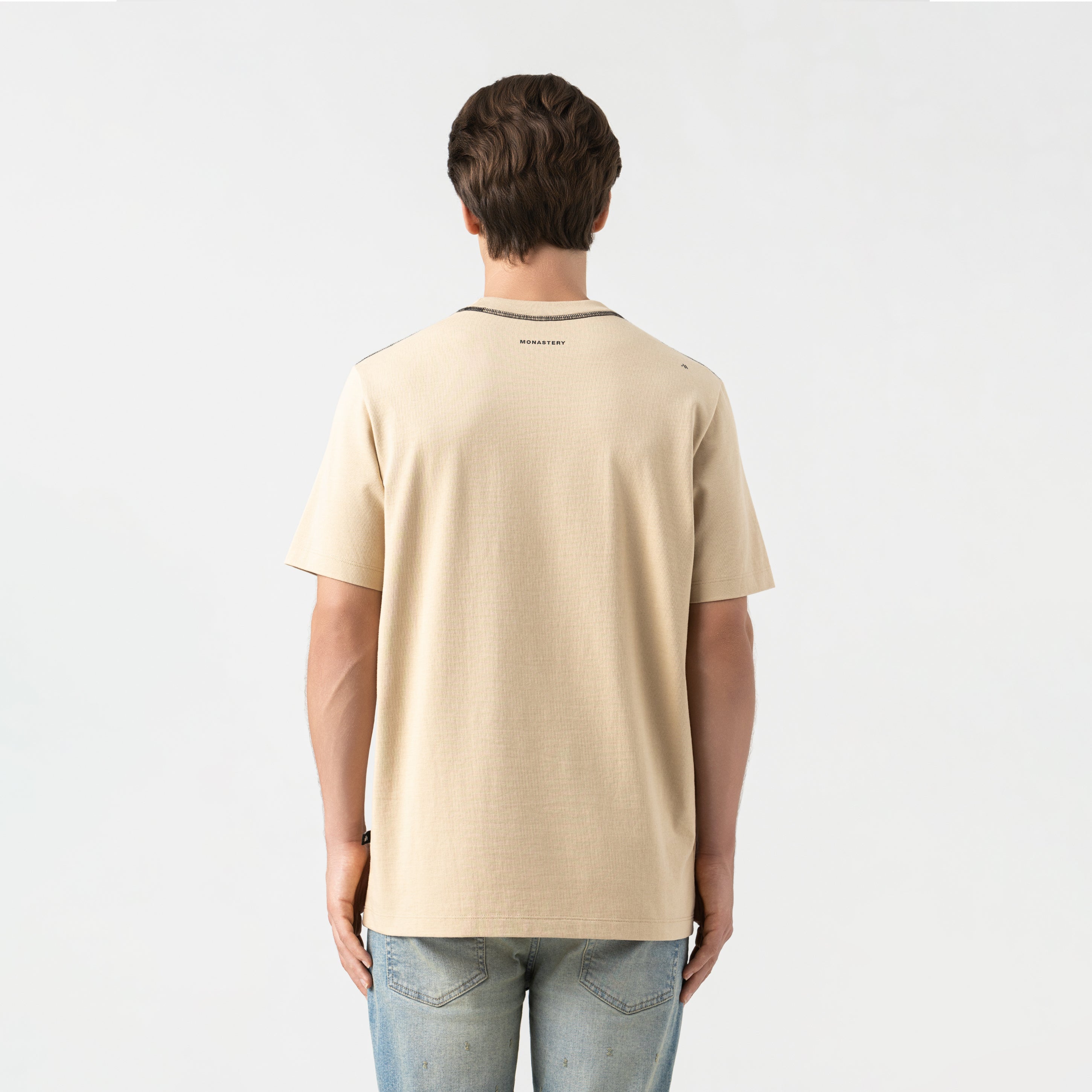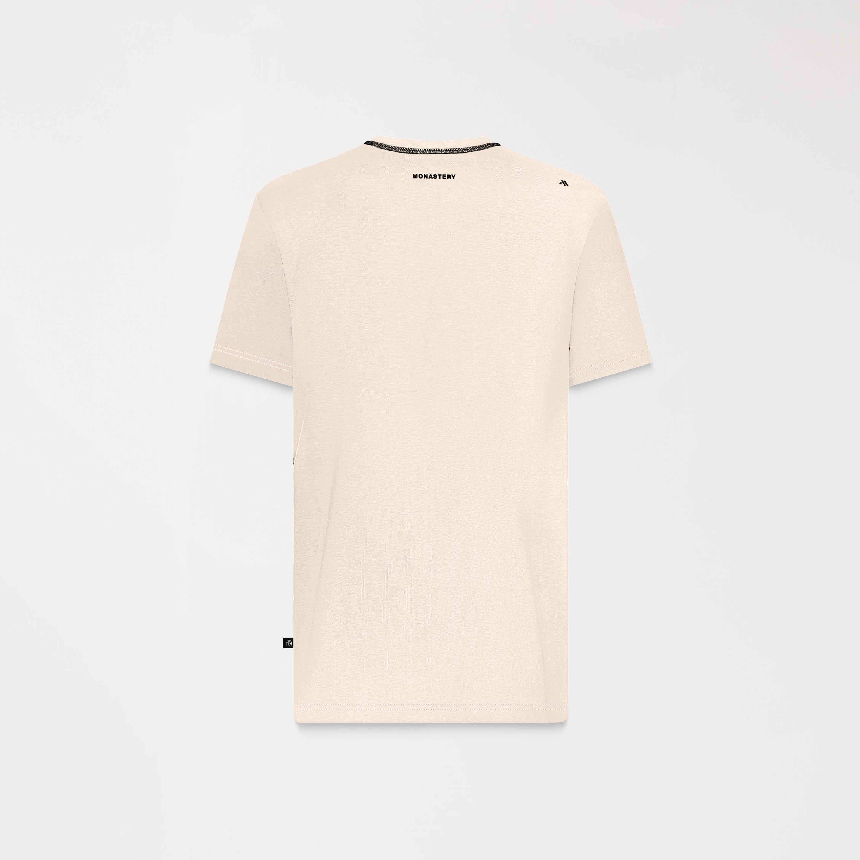 Rooney is a versatile men's t-shirt with a refined aesthetic. It is made from high-quality cotton and features a regular silhouette that balances comfort and structure. The 2.5 cm ribbed collar provides definition, while the high-density prints, both front and back, give the garment a graphic character. Appliqué detail with the Monastery logo. Ideal for a natural transition between casual and sophisticated.
