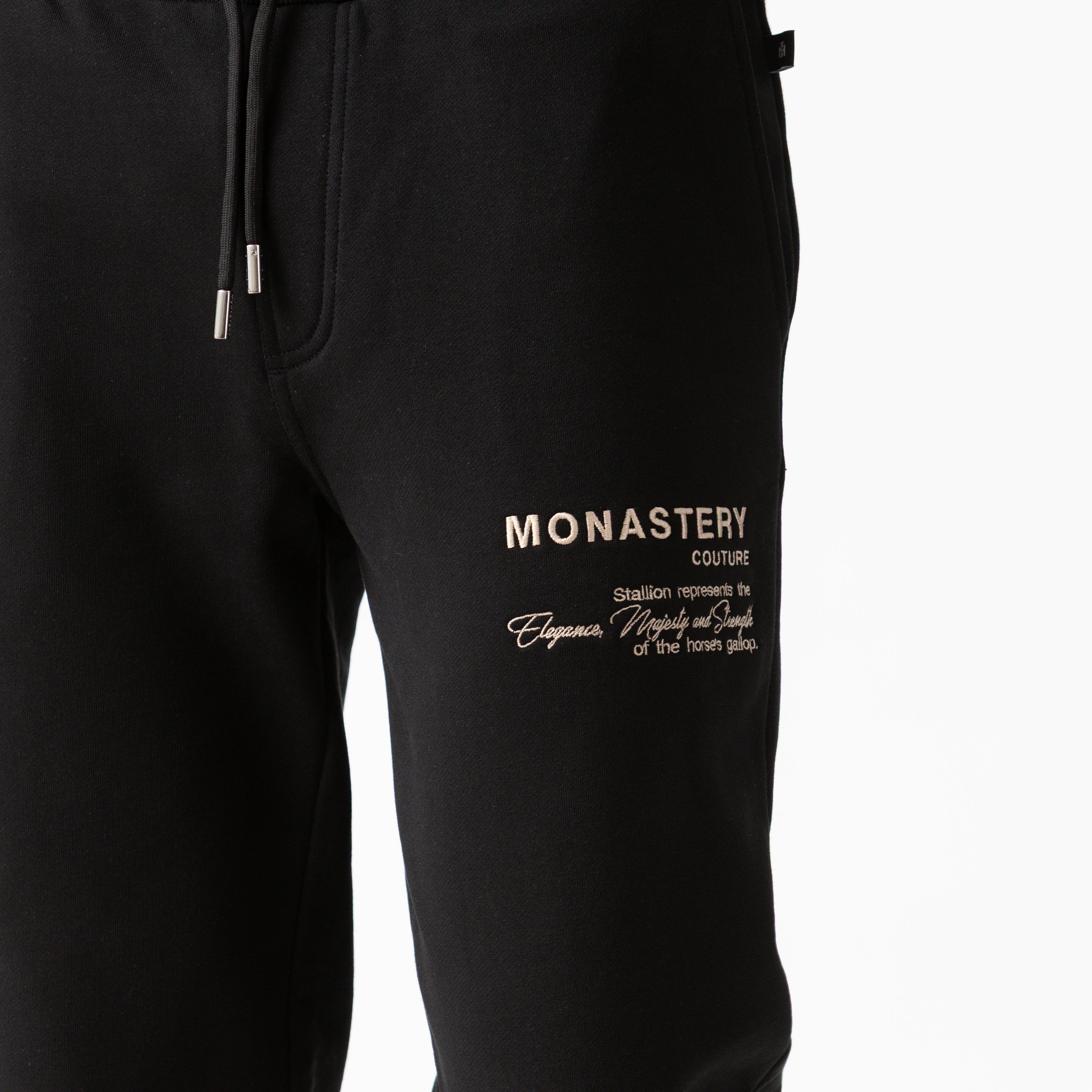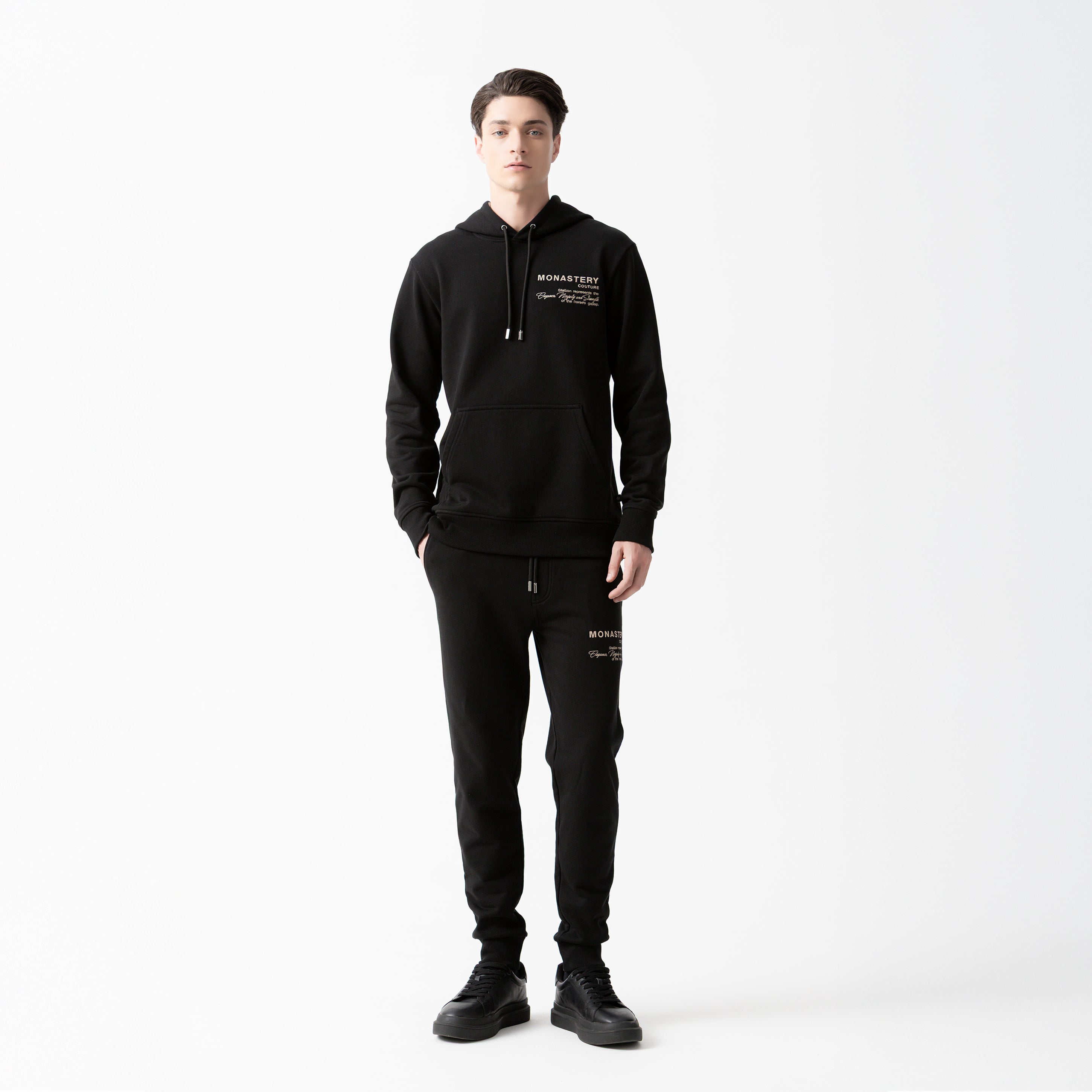 On the back, the signature Monastery logo is presented using a high-density technique, creating a subtle yet defined relief that reinforces the garment's identity and sophistication.
