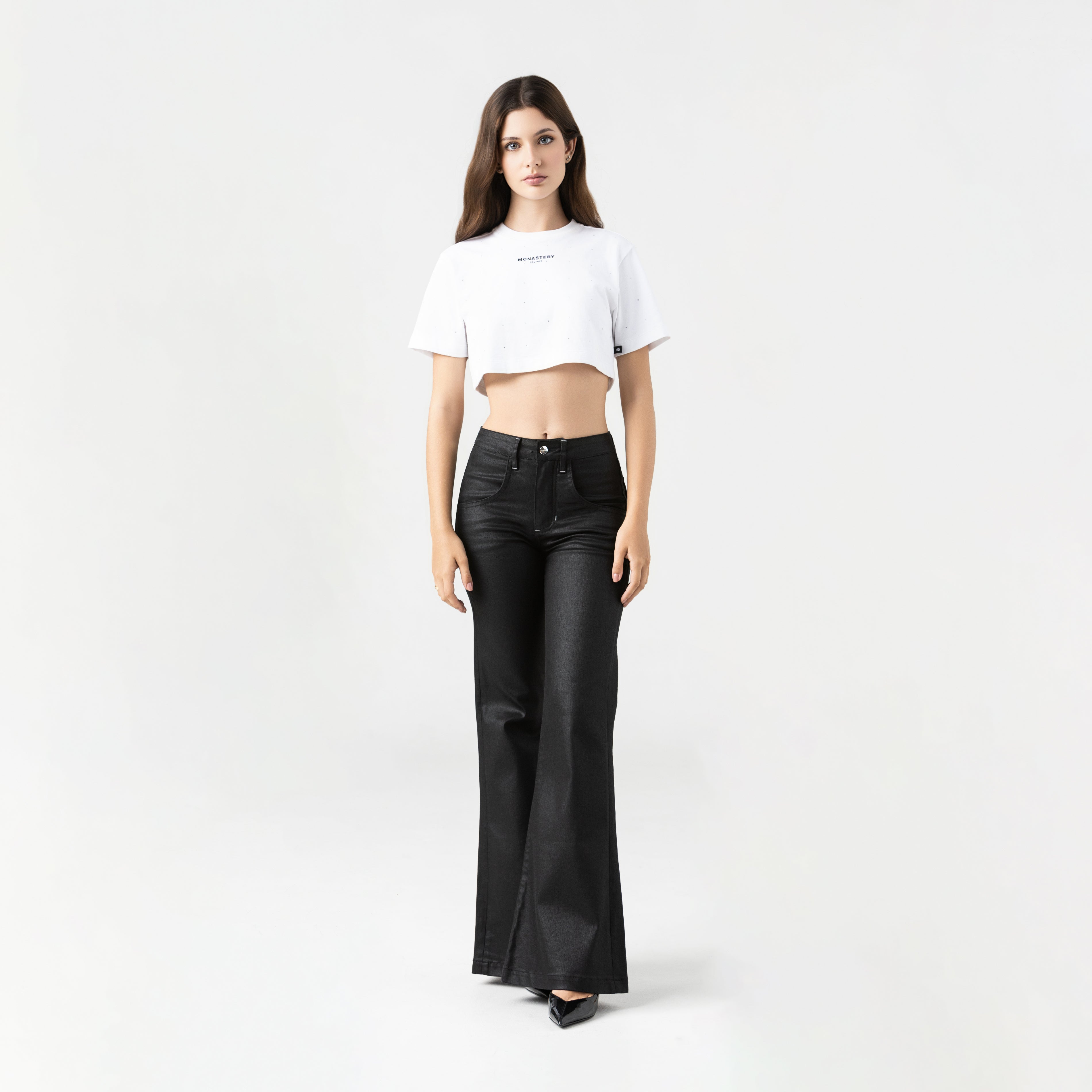 Feminine crop top in 100% cotton, exclusive to Monastery, with a small silhouette.