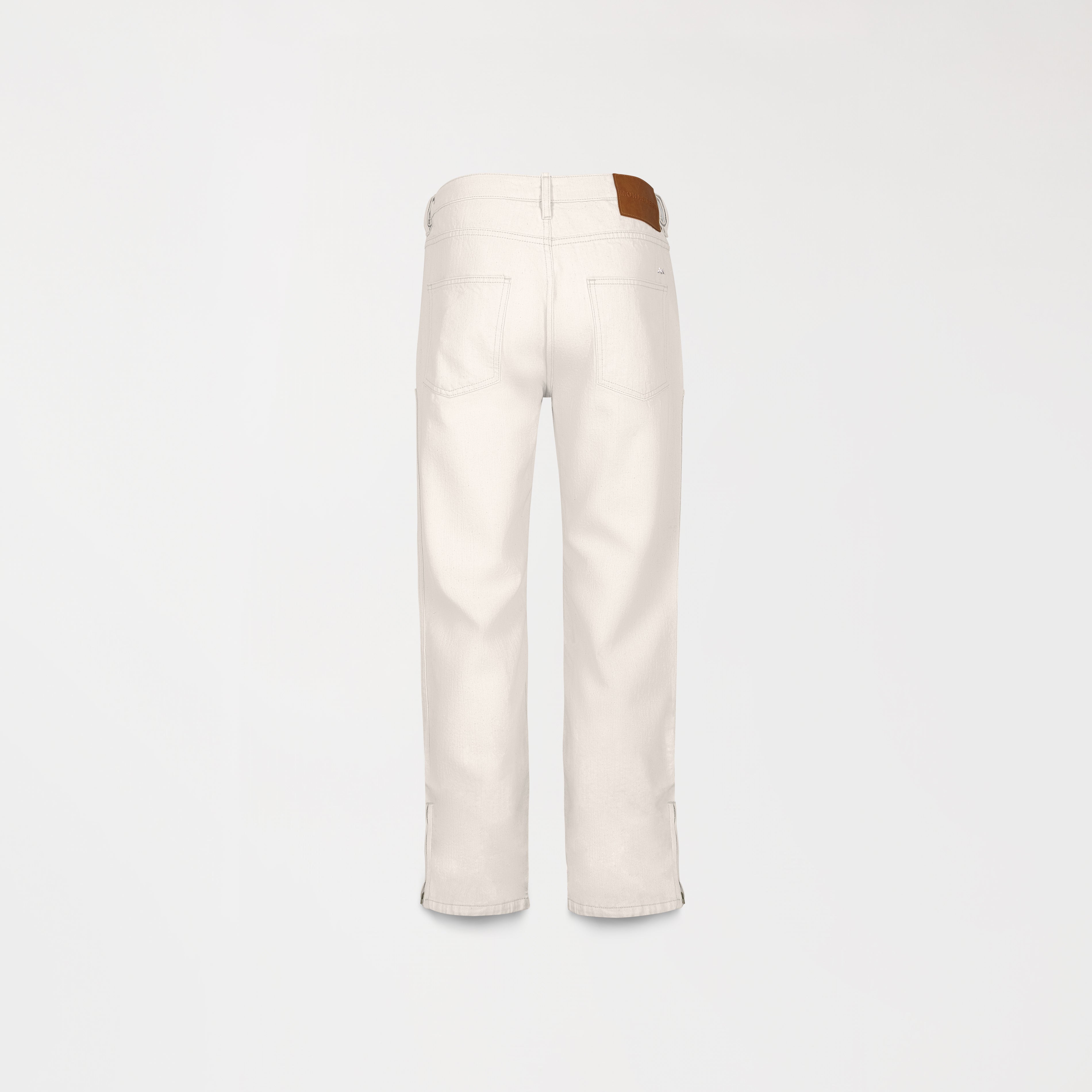 This denim set, featuring a pair of jeans and a jacket in ecru, stands out for its freshness and originality. The jeans have a modern cut, with a fitted yet comfortable silhouette, and their ecru tone provides a fresh and versatile look. Shiny silver metallic finishes stand out in key details, such as buttons, rivets, and visible seams, providing a touch of sophistication and modernity. The jacket, designed to perfectly complement the jeans, has a lightweight yet high-impact structure, with an urban feel, and features innovative details that provide an interesting contrast. The use of shiny silver elements not only highlights the look, but also provides a subtle shine that complements the ecru tone of the denim, giving the garment a contemporary twist. This set is ideal for those seeking a modern and avant-garde style, with a minimalist touch defined by the metallic details, offering a distinct and elegant offering for the brand.