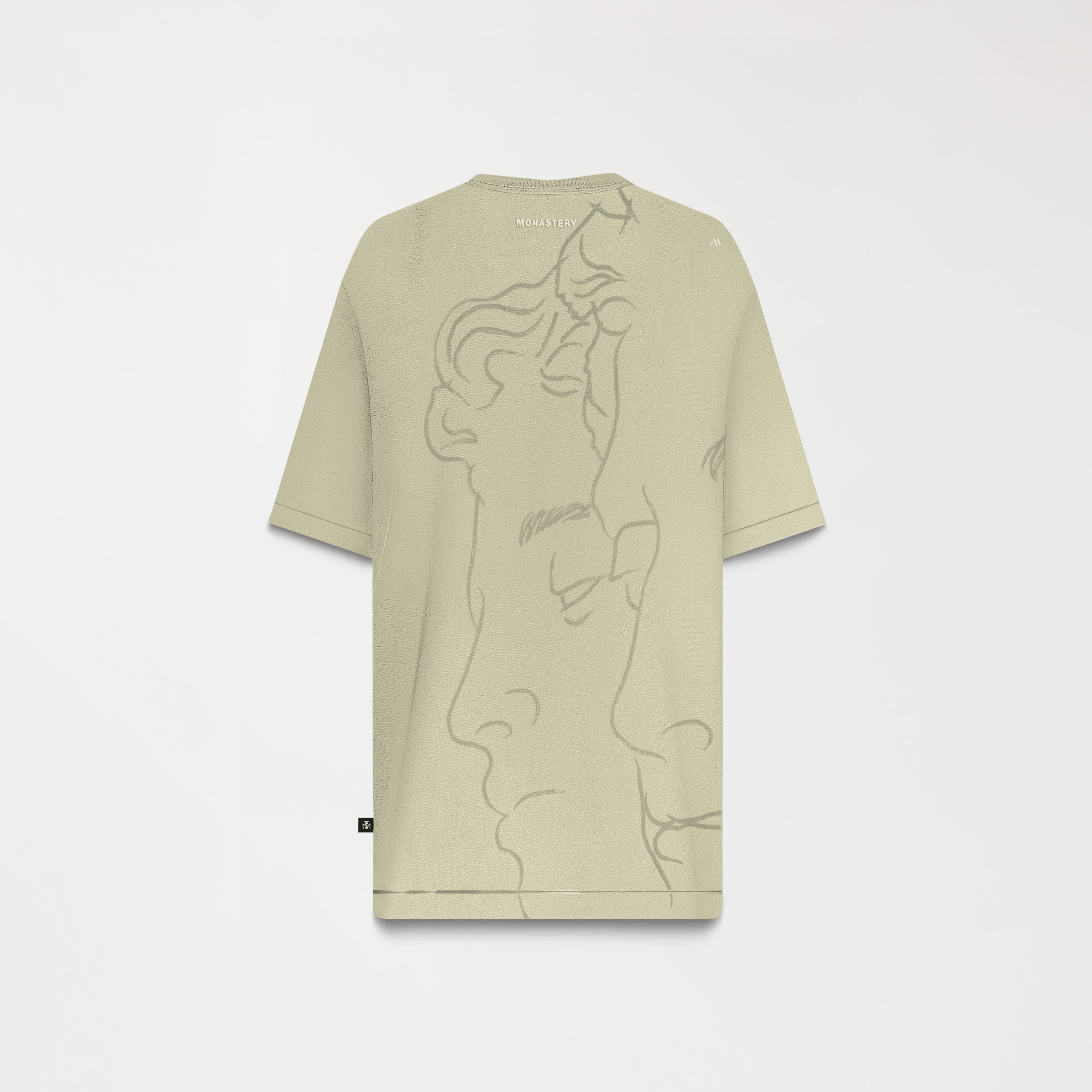 Oversized men's T-shirt with a 2.5 cm ribbed collar, made from high-density, ultra-siliconized Peruvian cotton, offering superior softness, high resistance, and a structured drape. Its relaxed fit projects presence and character while maintaining comfort and shape.