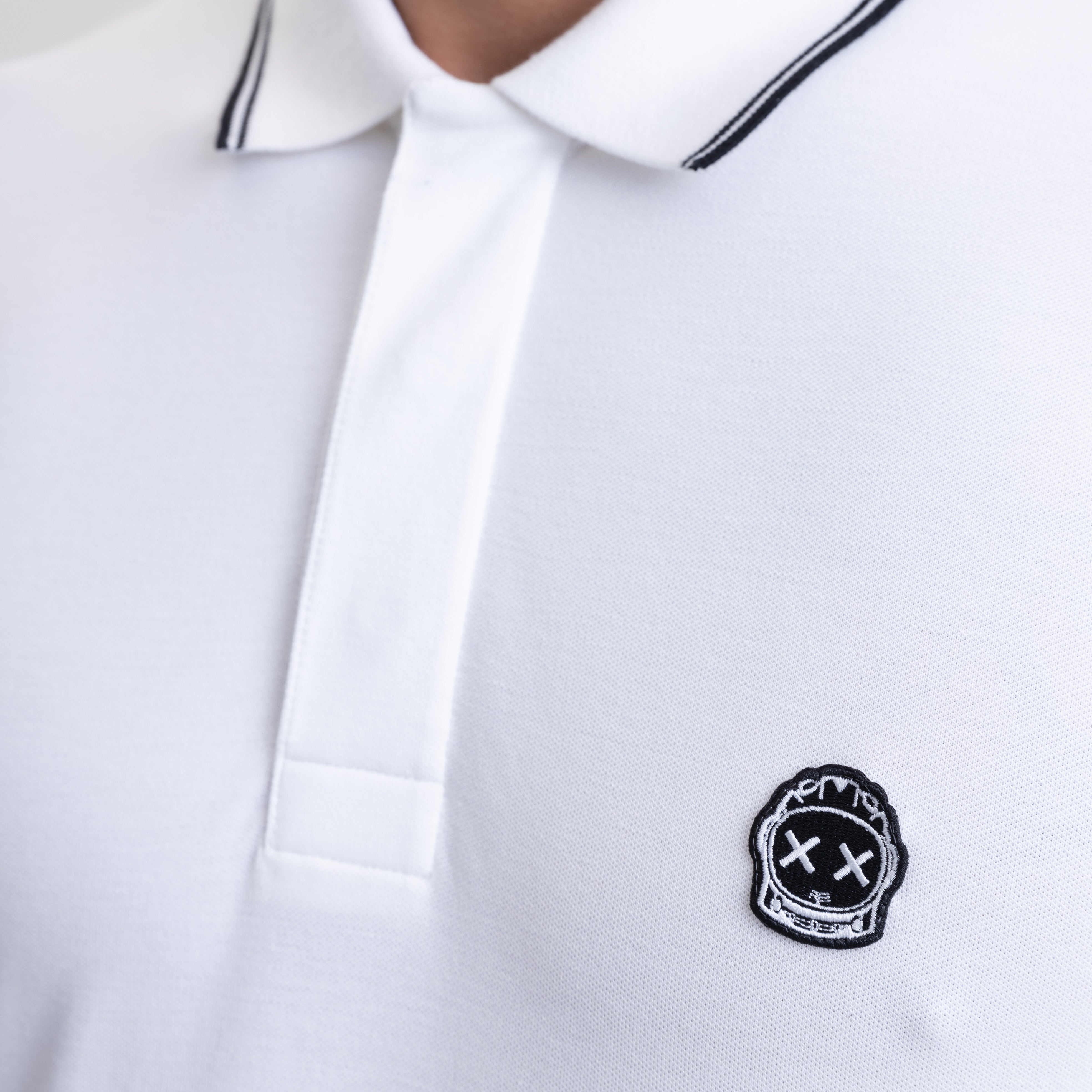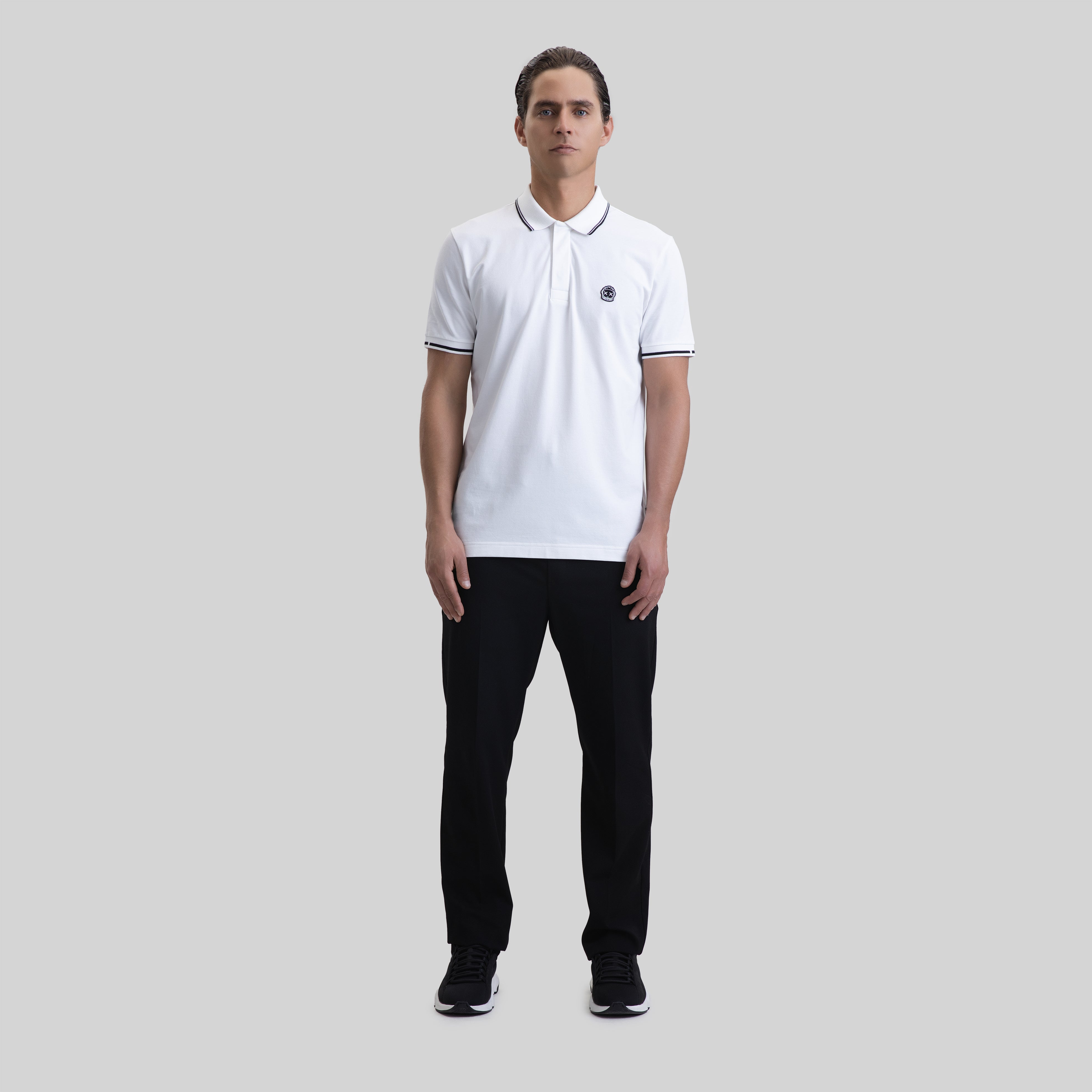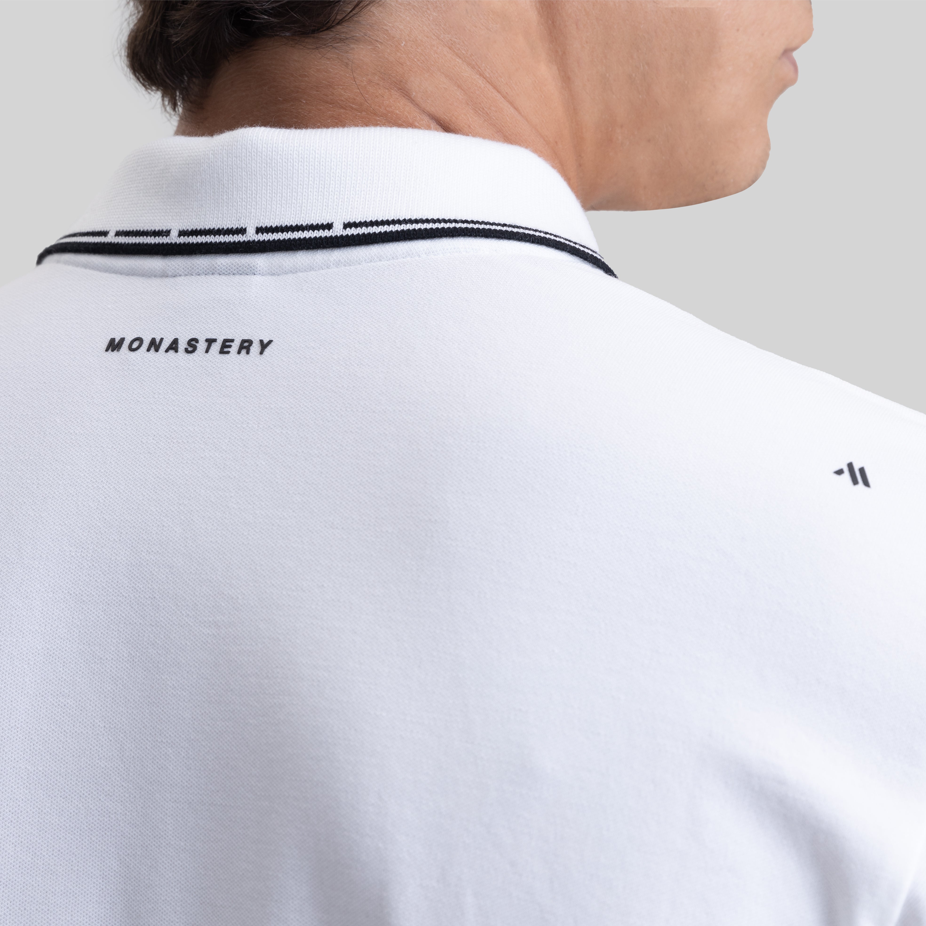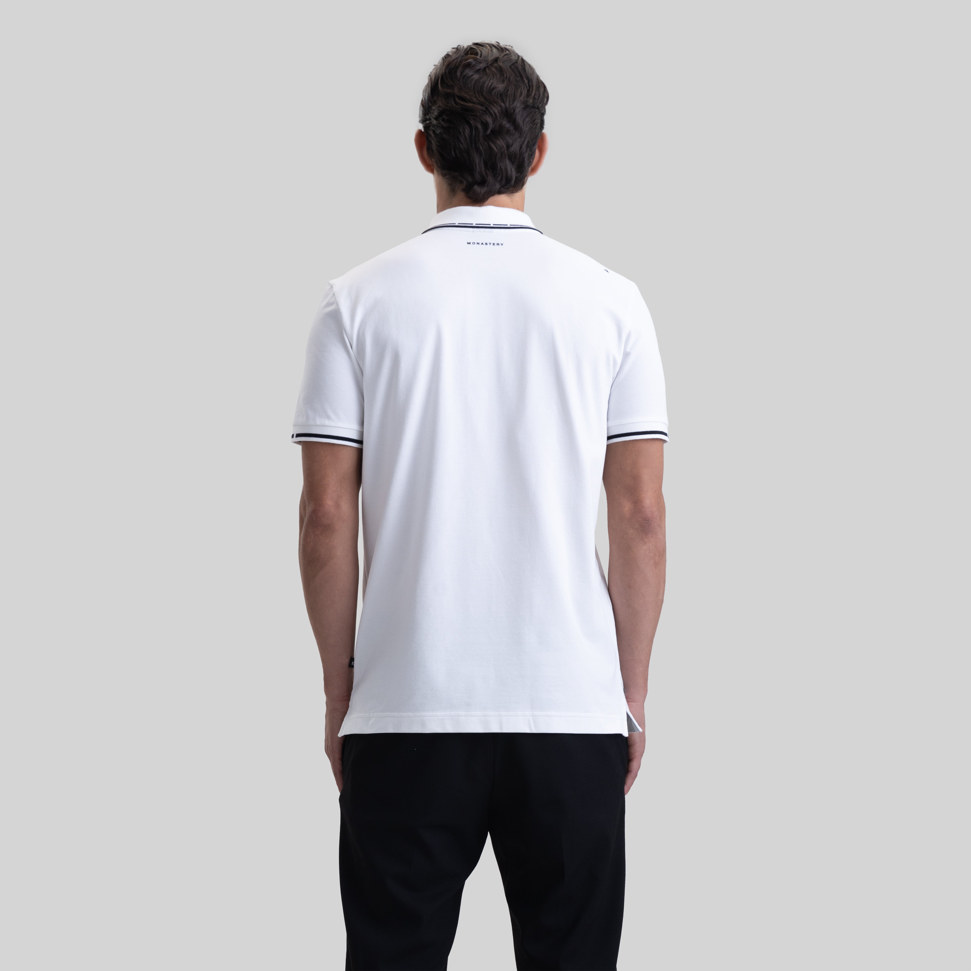 This men's polo shirt is made with 100% Peruvian Pima cotton, exclusive to the brand. Veyrona presents a renewed regular silhouette, with straight knit collars and cuffs that include contrasting stripes within the same fabric, made especially for each model. It has a concealed button placket and features the Monastery logo print on the back, as well as a woven appliqué of our iconic Phillip Astronaut on the heart stitch. It is an elegant and dynamic garment, perfect for any occasion.