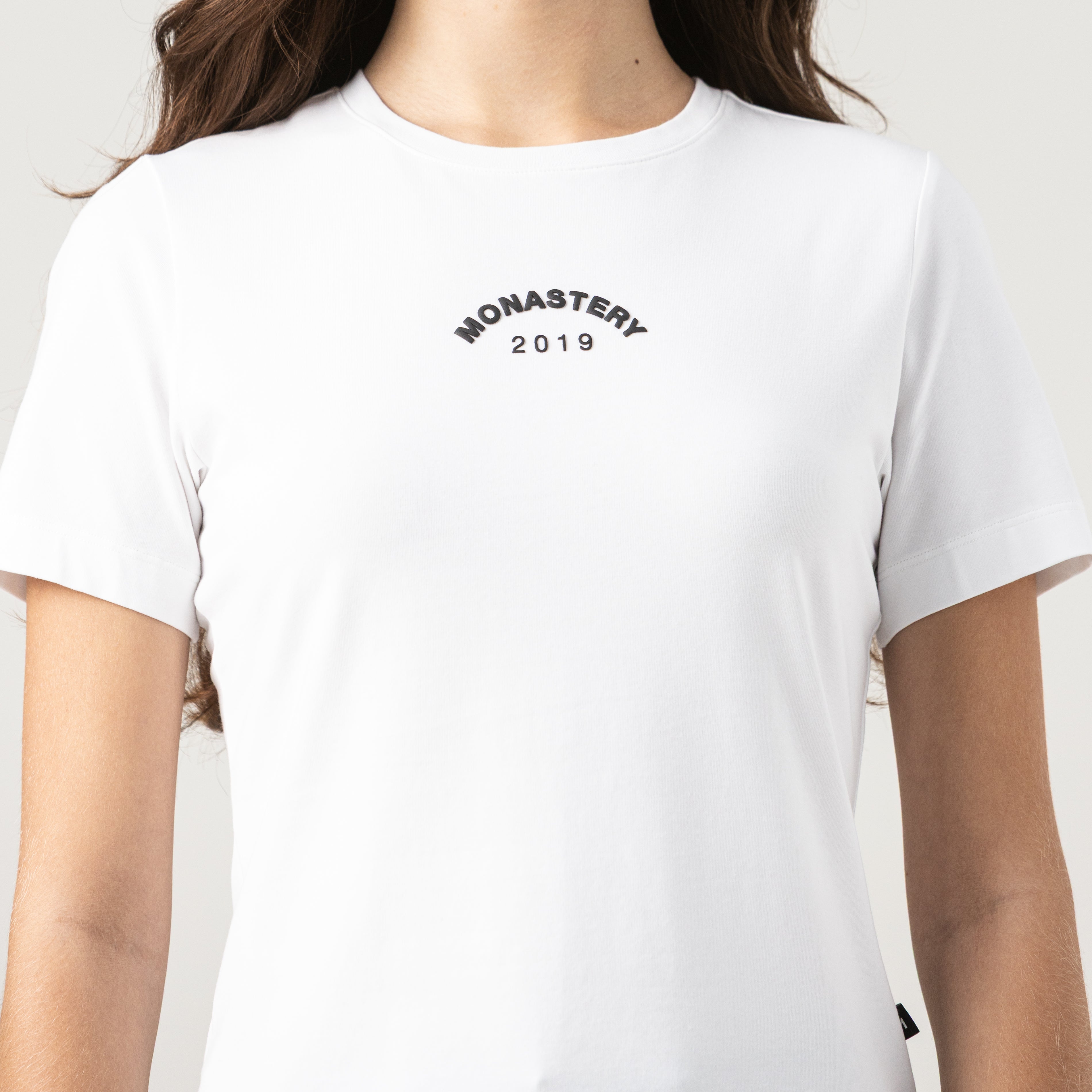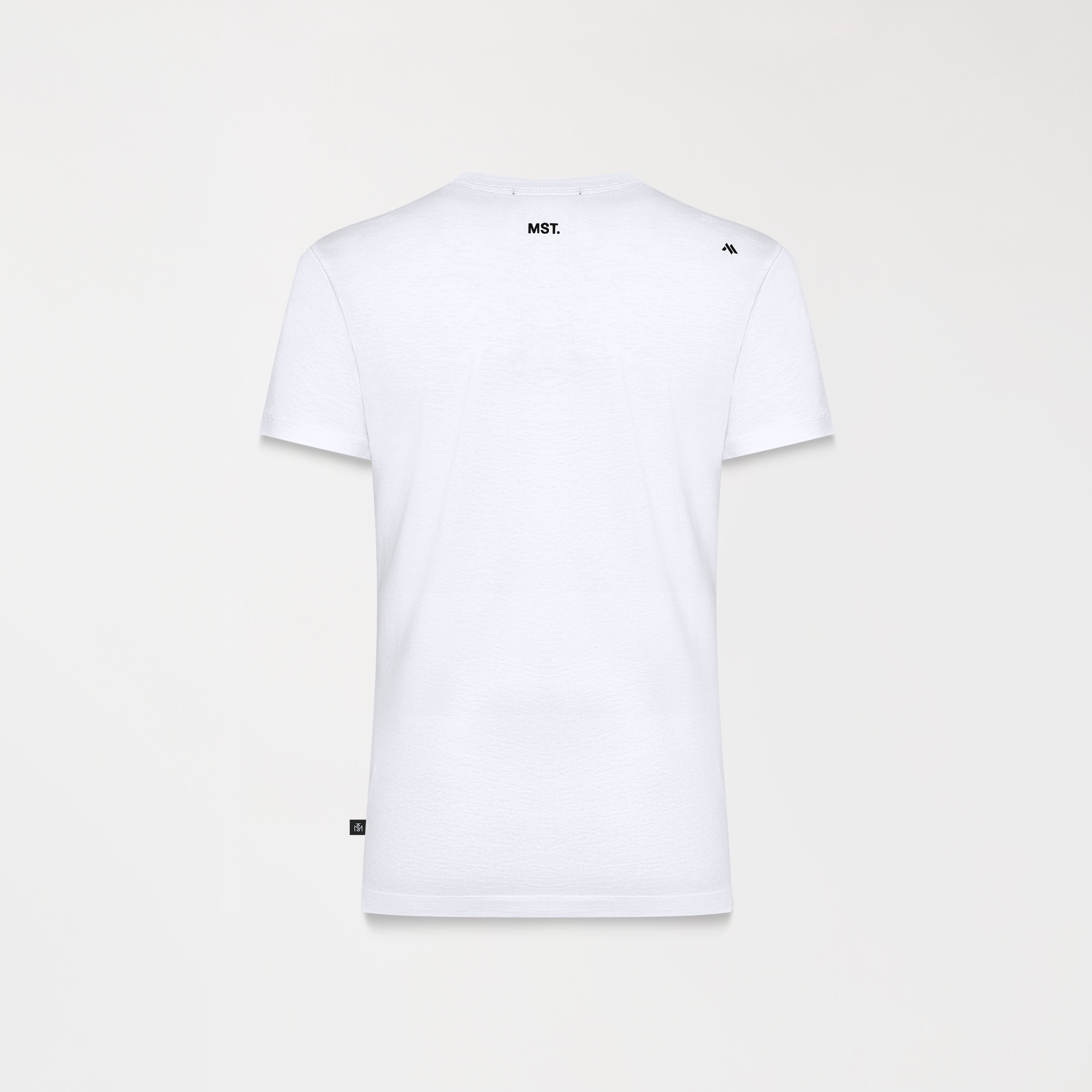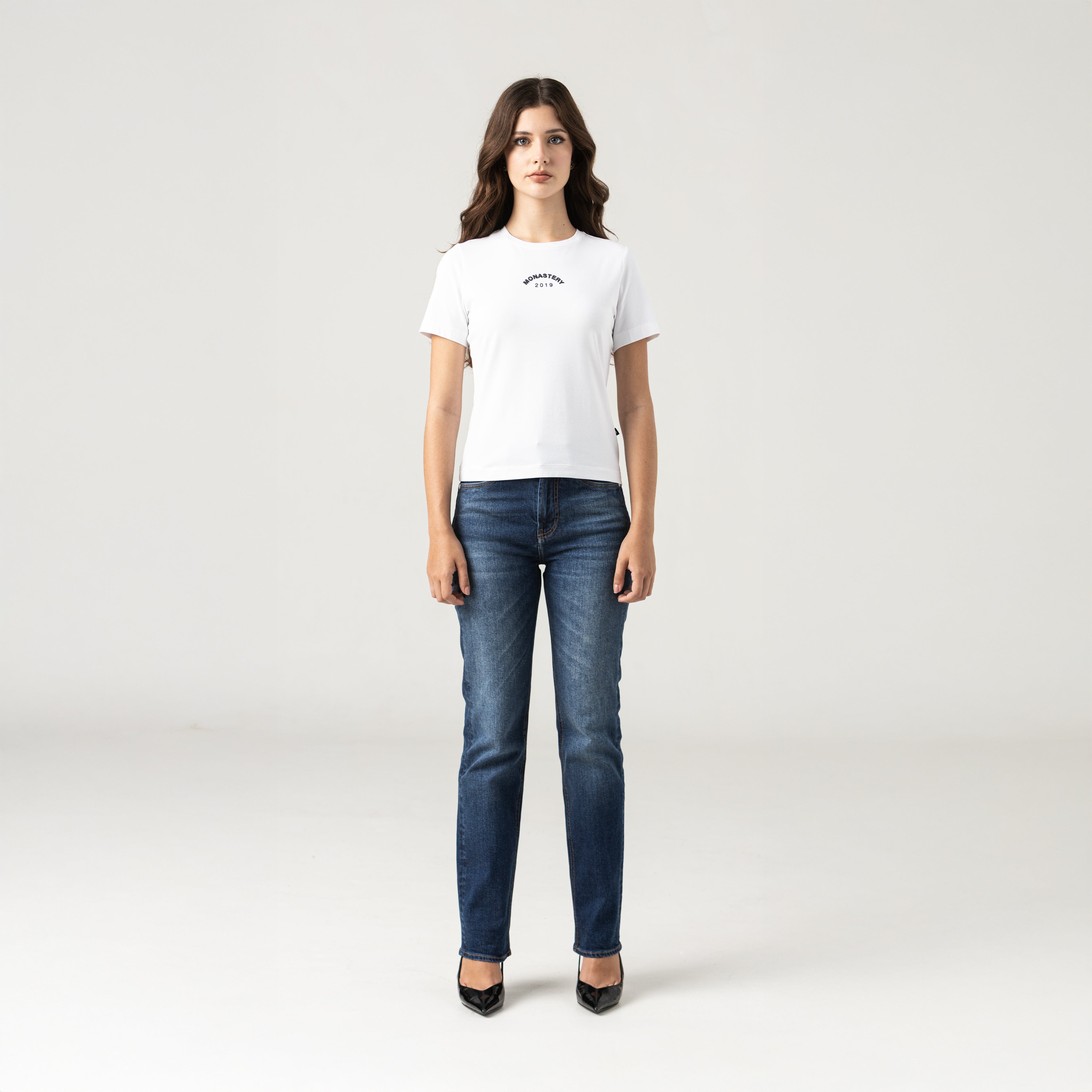 Women's T-shirt with a small silhouette, designed for a modern and distinctive look, made from high-quality Peruvian cotton. The front features an artistic design applied in a puff print, creating volume and texture for a striking visual effect. The back features traditional logos in a high-density print, offering contrast and depth. A garment with a strong identity, Wave is ideal for those who value design, detail, and authentic style.